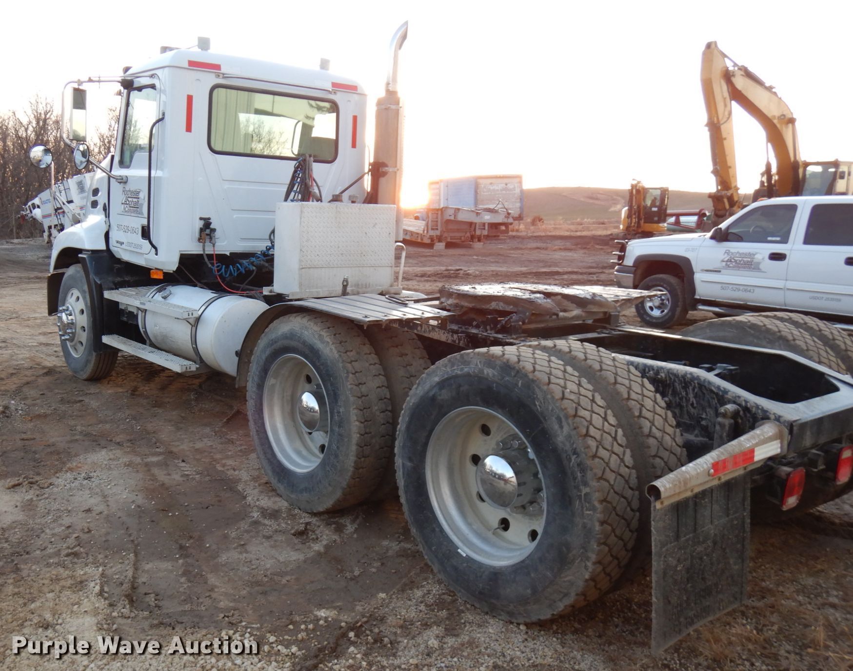 2007 Mack CXN613 semi truck. 791,587 miles on odometer. Engine Mack AC, Displacement: 12.0L, Cylinders: 6, Fuel type: Diesel, Engine brake. Transmission Eaton Fuller , Manual, Speed: 9. Chassis Axles: Tandem, Differential lock: Inter-axle, Suspension: Air, Brakes: Air, PTO, Wet kit, GVWR: 22,679 lbs, Wheelbase: 171". Interior AC, Heat, Cruise control, Dump valves, Air ride cab. Operational Fifth wheel type: Air operated, Sliding, Fuel tank: Dual. Tires Size: 11R24.5. Minnesota title. Title has a lien that will be released following the close of the auction. Title distribution may be delayed up to 30 days from verification of funds. 1M2AK06Y67N022878. Rochester Asphalt Inc. - Open inspection Dec. 28. 2904 County Rd 15 SW. Byron, MN 55920