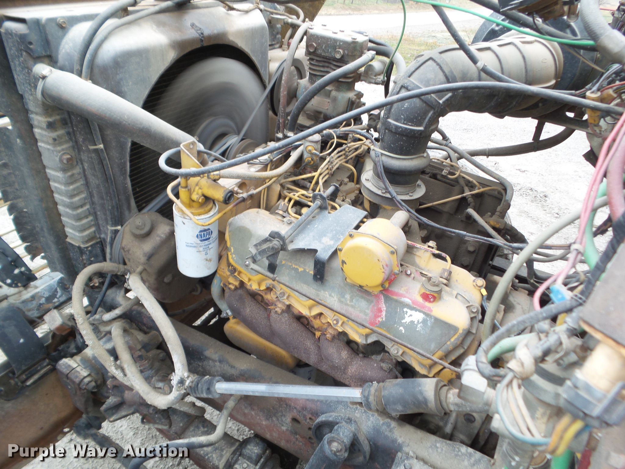 1986 Ford LT8000 truck cab and chassis. 273,050 miles on odometer. Engine Caterpillar 3208, Serial: 51Z77181, Displacement: 10.4L, Cylinders: 8, Fuel type: Diesel. Transmission Eaton Fuller , Manual, Speed: 13. Chassis Axles: Tandem, Differential lock: Inter-axle, Suspension: Spring, Brakes: Air, Truck chassis: 14' 8", GVWR: 52,400 lbs, Wheelbase: 202". Interior Heat. Operational Fuel tank: Dual. Tires Front: 11.00R20, Rear: 11R22.5. Notes Non-operational odometer. Iowa title. 1FDYU80U5GVA02862. Blue Marble Environmental. 110 Hillcrest St. Adair, IA 50002