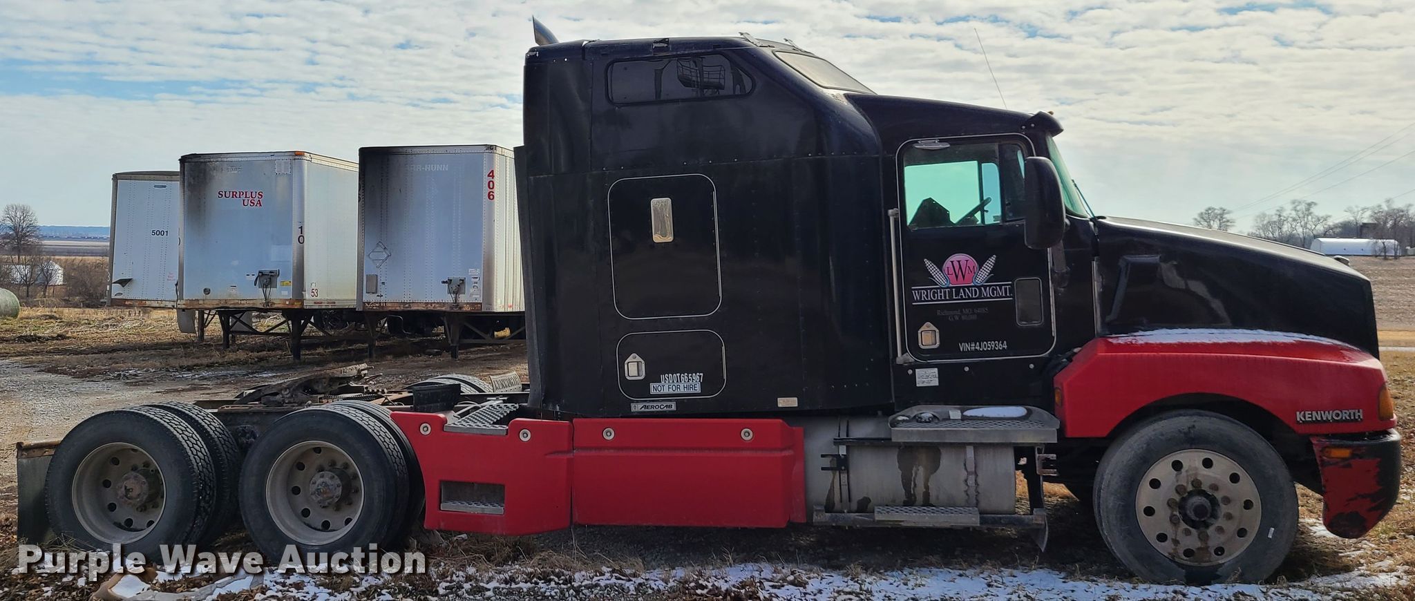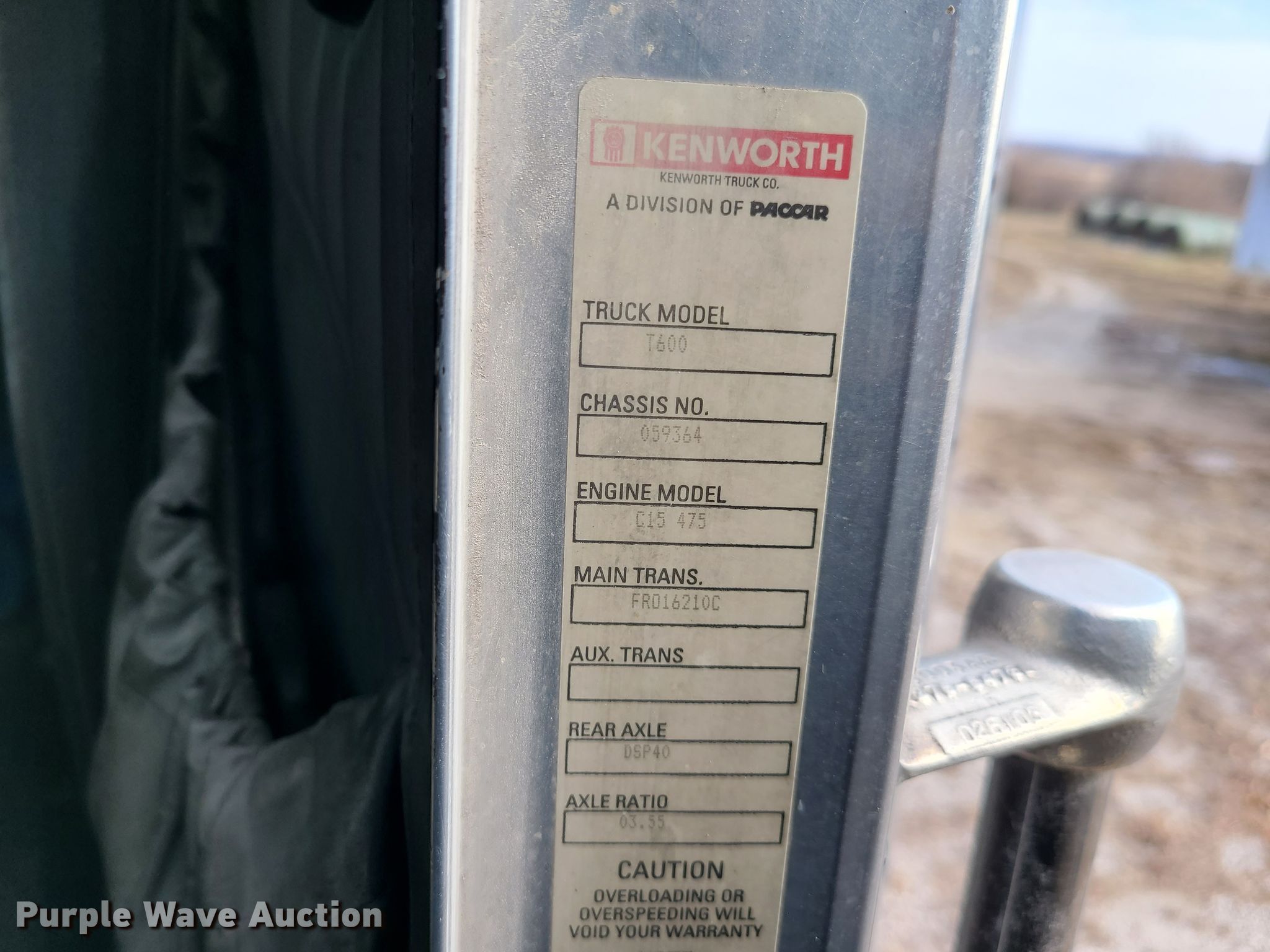 2004 Kenworth T600 semi truck. 594,999 miles on odometer. Engine Caterpillar, Cylinders: 6, Fuel type: Diesel. Transmission Eaton Fuller, Manual, Speed: 10. Chassis Axles: Tandem. Interior AC, Heat, Sleeper Sleeper length: 60". Operational Fifth wheel type: Fixed, Fuel tank: Dual. Tires Size: 285/75R24.5. Notes Engine issues, Non-operational unit. Missouri title. Title distribution may be delayed up to 30 days from verification of funds. 059364. Wright Farms. 9012 Long Lake Rd. Richmond, MO 64085