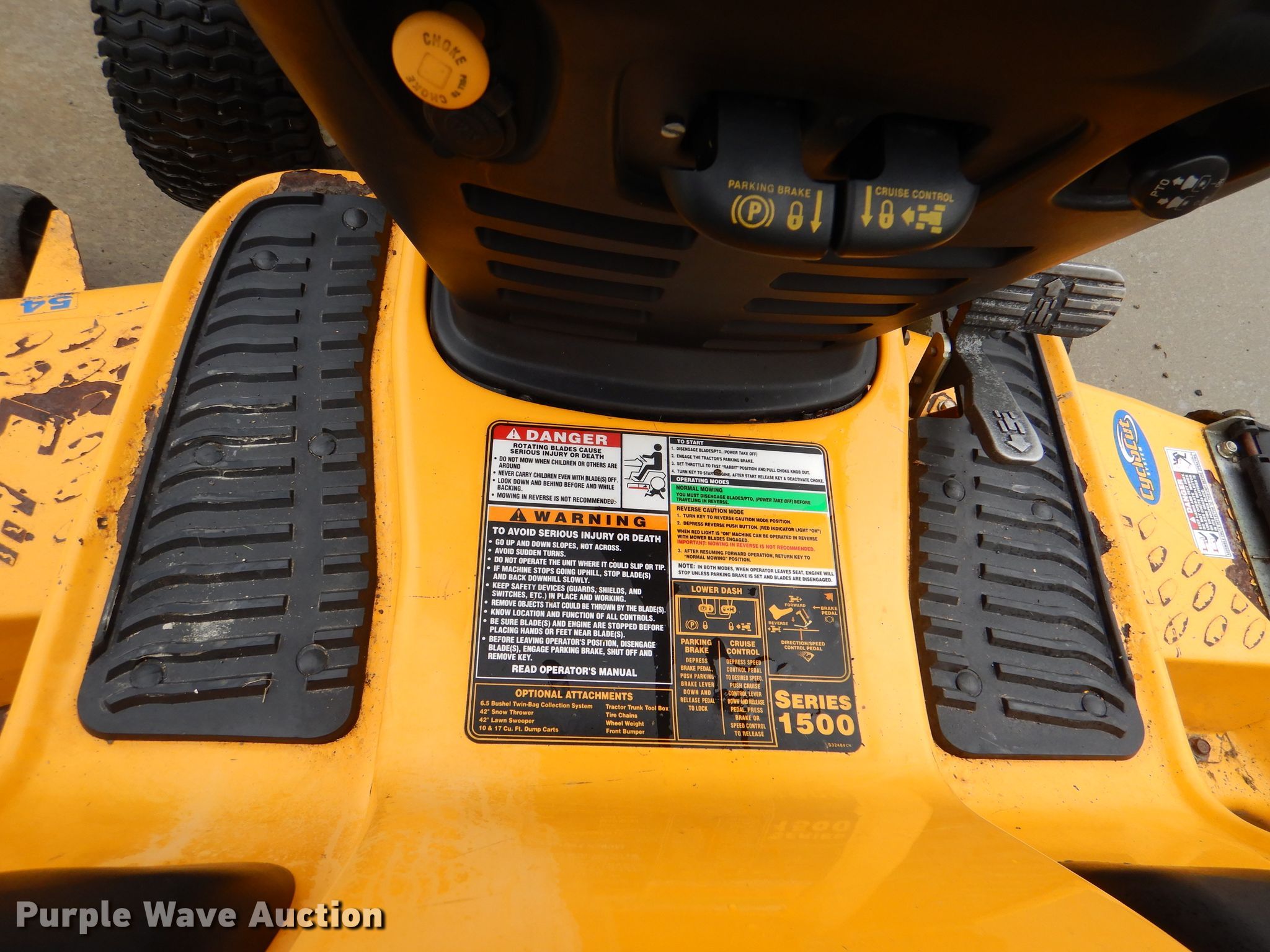 Purple Wave is selling a used Lawn Mower in Kansas. This item is a Cub Cadet GT1554 lawn mower with the following: 646 hours on meter, Cutting width: 54", Serial: 1C015H30175000001