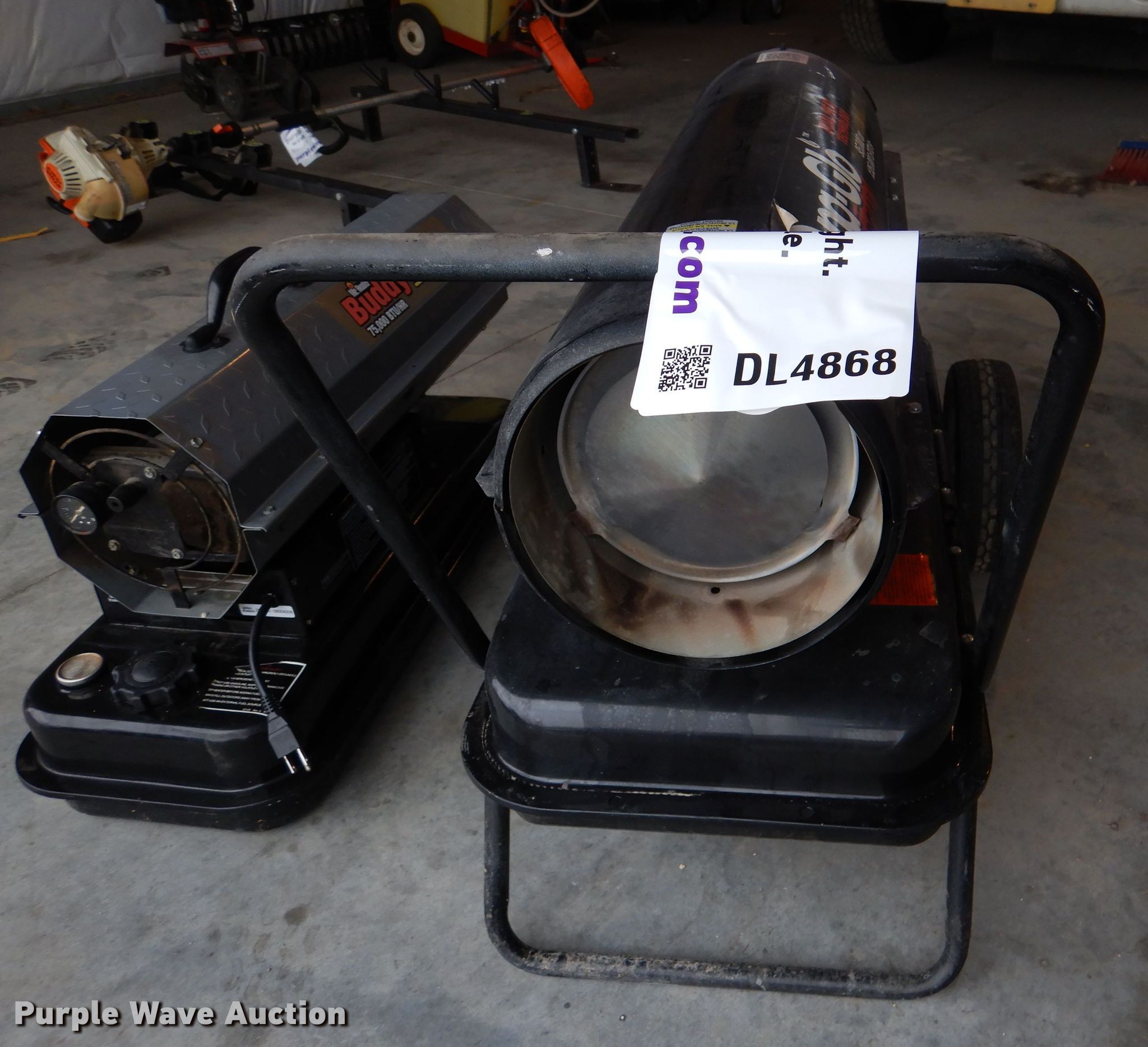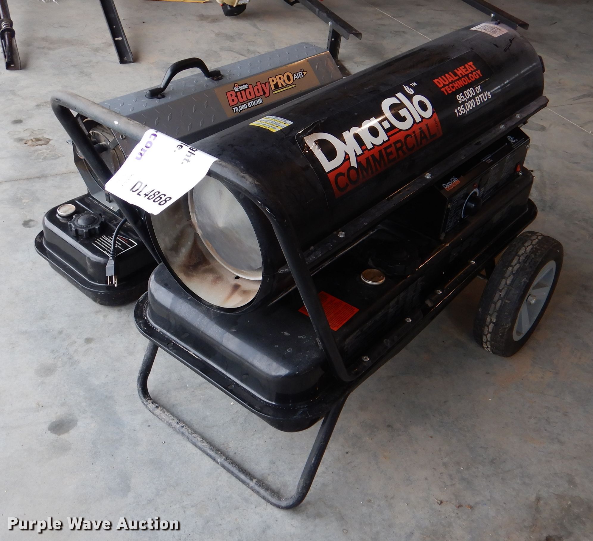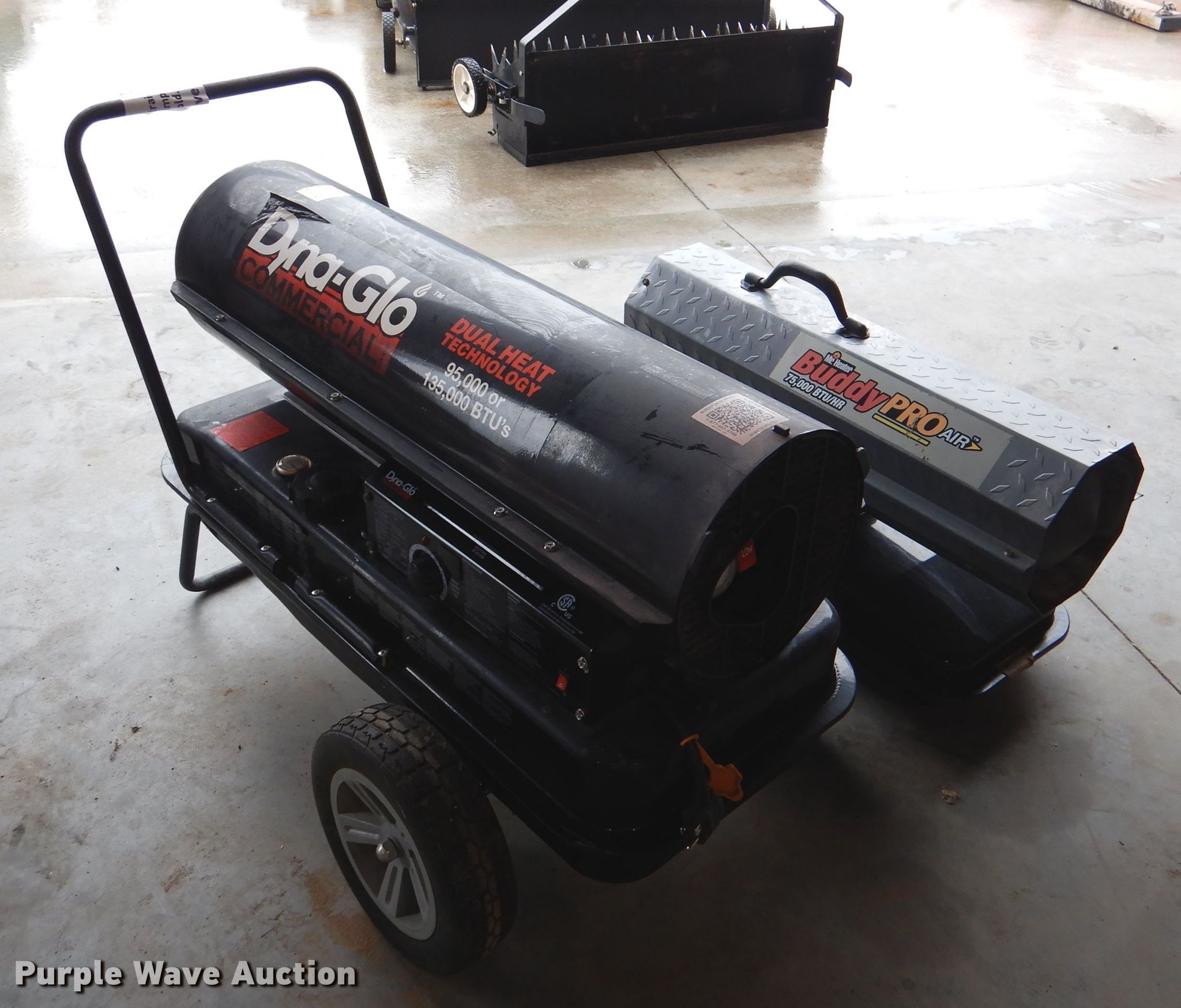 Purple Wave is selling a used Portable Heater or Fan in Kansas. This item is a Heaters with the following: Dyna-Glo Commercial, 135,000 BTU, Fuel type: Diesel, Kerosene, Mr. Heater Buddy Pro Air, 75,000 BTU, Fuel type: Diesel, Kerosene