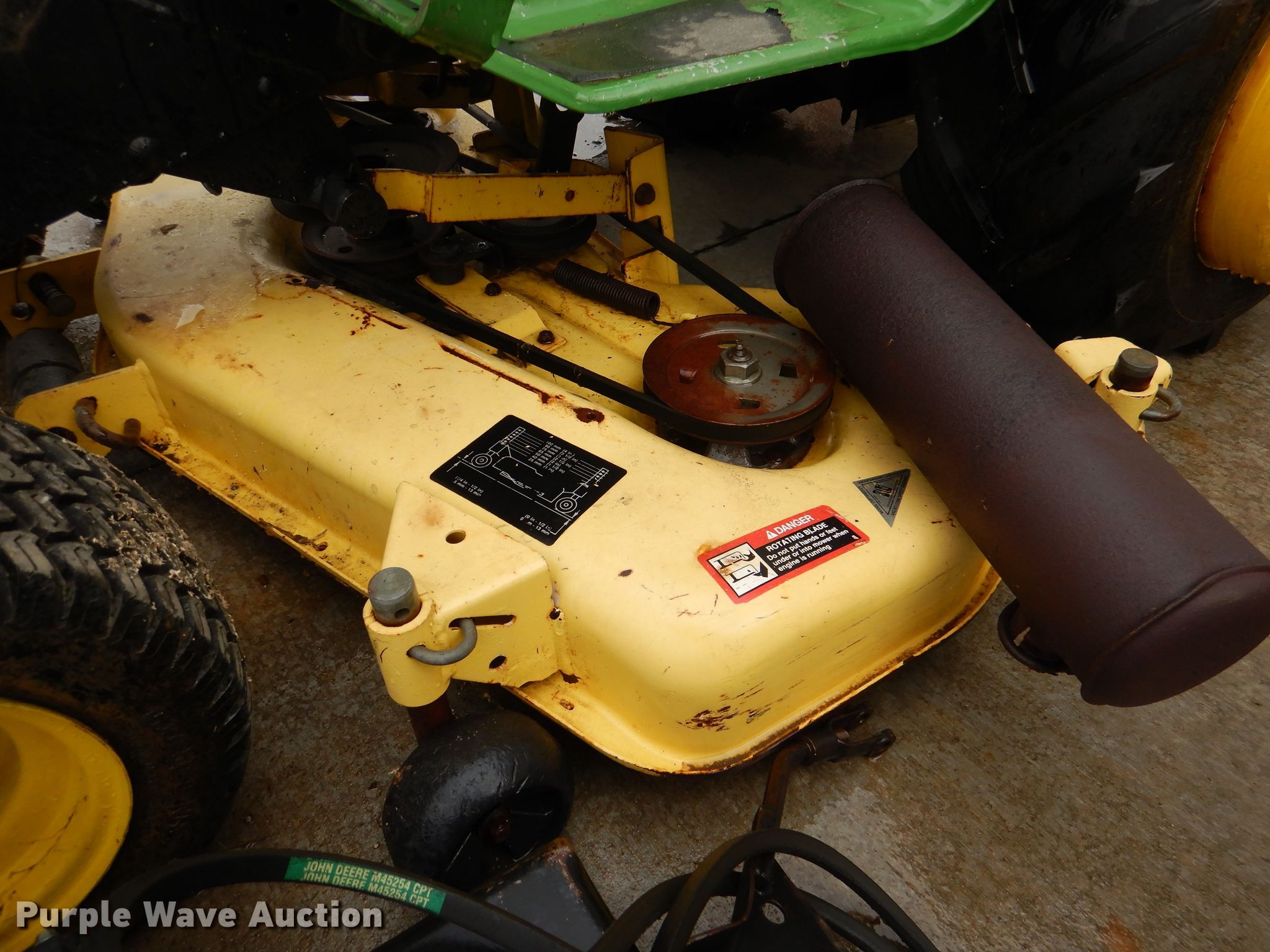 Purple Wave is selling a used Lawn Mower in Kansas. This item is a John Deere 316 lawn mower with the following: 823 hours on meter, Cutting width: 48", Serial: C316G080098M