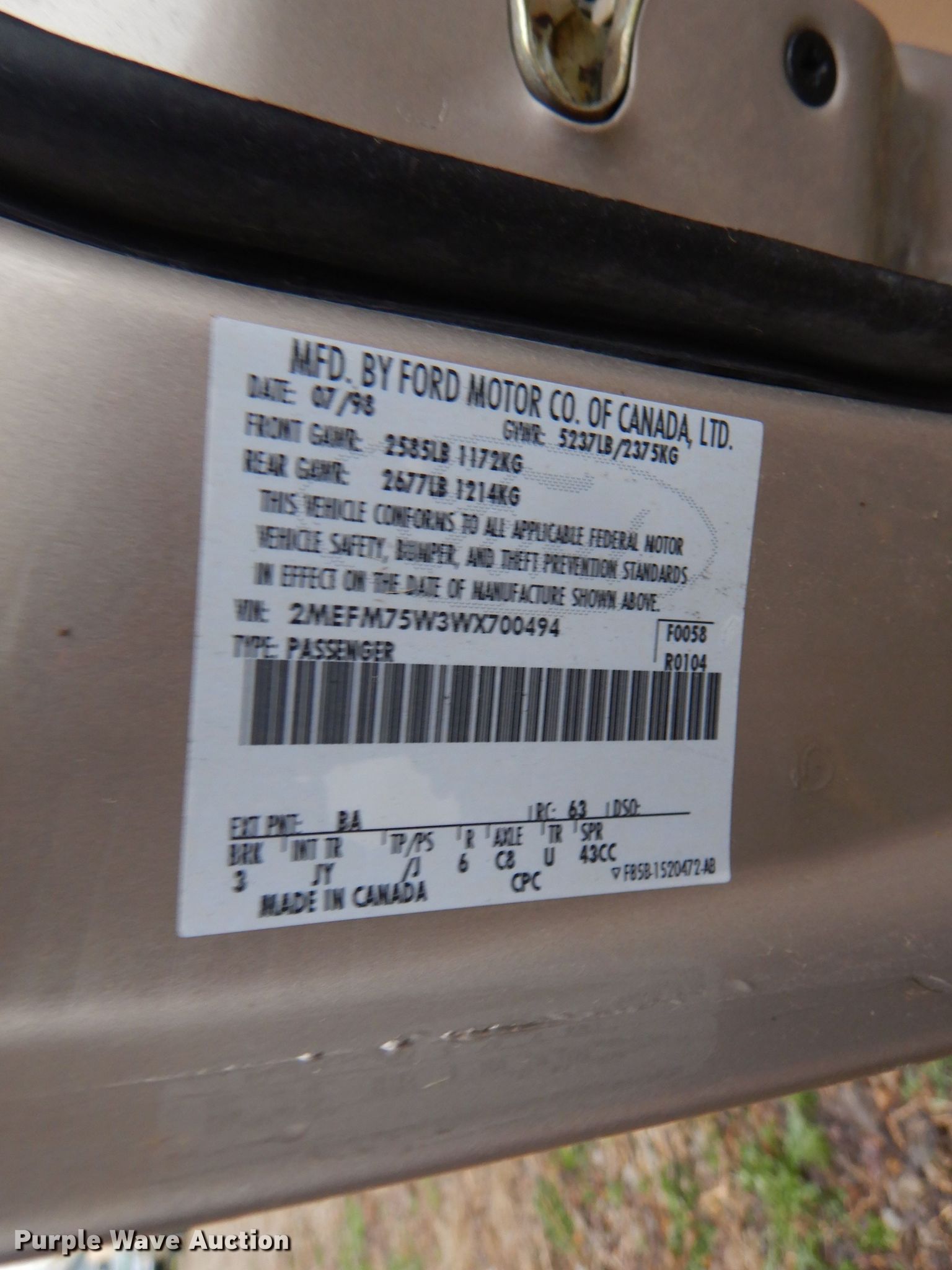1998 Mercury Grand Marquis LS passenger vehicle. 115,080 miles on odometer. Engine Displacement: 4.6L V8 SOHC 16V, Cylinders: 8, Fuel type: Gas. Transmission Automatic. Interior AC, Heat, Seat: Power driver, Power passenger, Power windows, Power locks, Cruise control. Tires Size: 225/60R16. Notes Battery light on , Hood shocks inoperable. Kansas title. 2MEFM75W3WX700494. 1822 E 1450th Rd. Lawrence, KS 66049