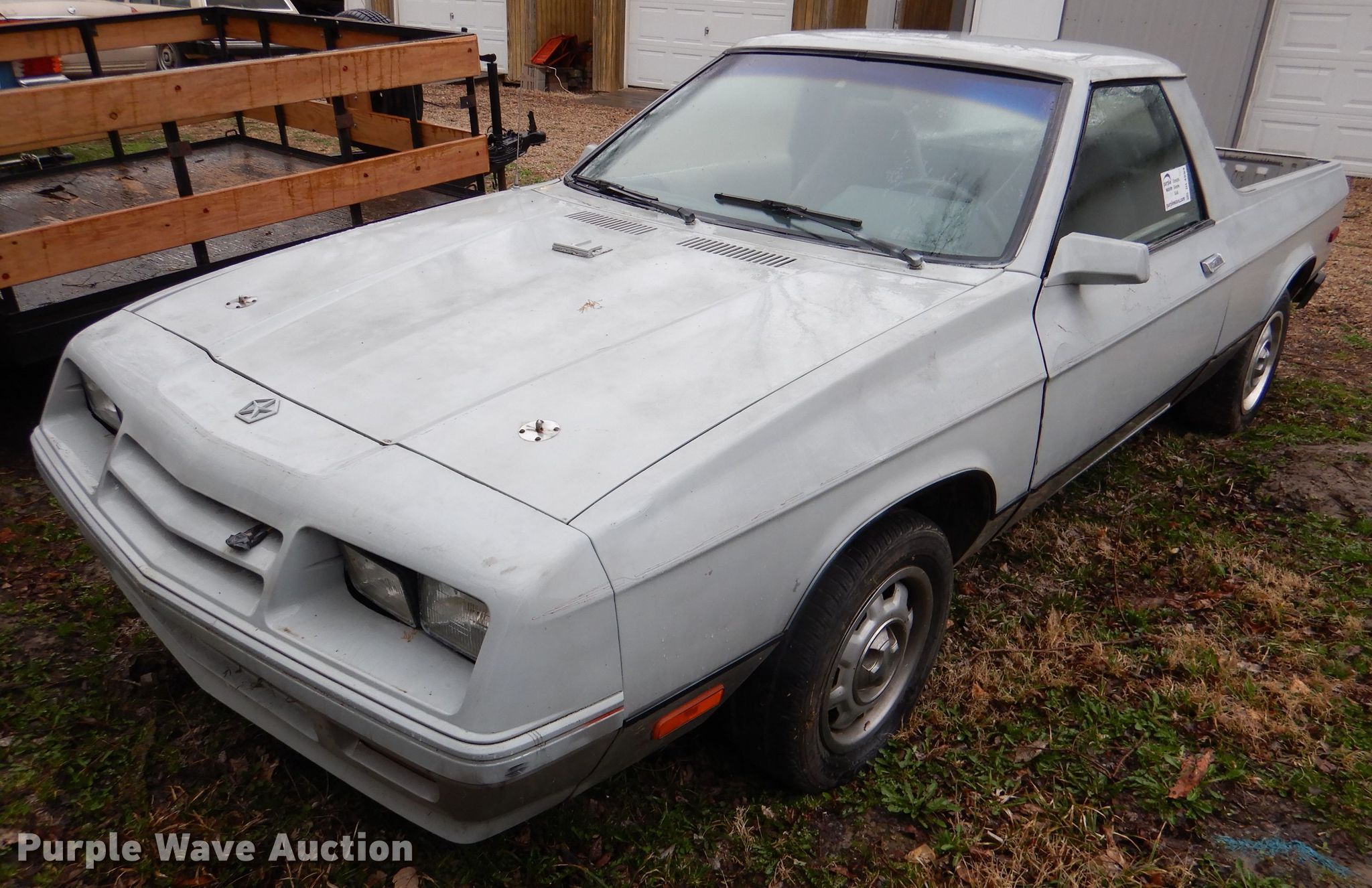 1984 Dodge Rampage. 36,324 miles on odometer. Engine Displacement: 2.2L L4 OHV, Cylinders: 4, Fuel type: Gas. Transmission Automatic. Interior Heat. Tires Size: 195/60R14. Notes Possible starter issue, Dead battery , Unknown operating condition. Kansas antique title. Title distribution may be delayed up to 14 days from verification of funds. 1B7EZ64C0ED314198. 1822 E 1450th Rd. Lawrence, KS 66049