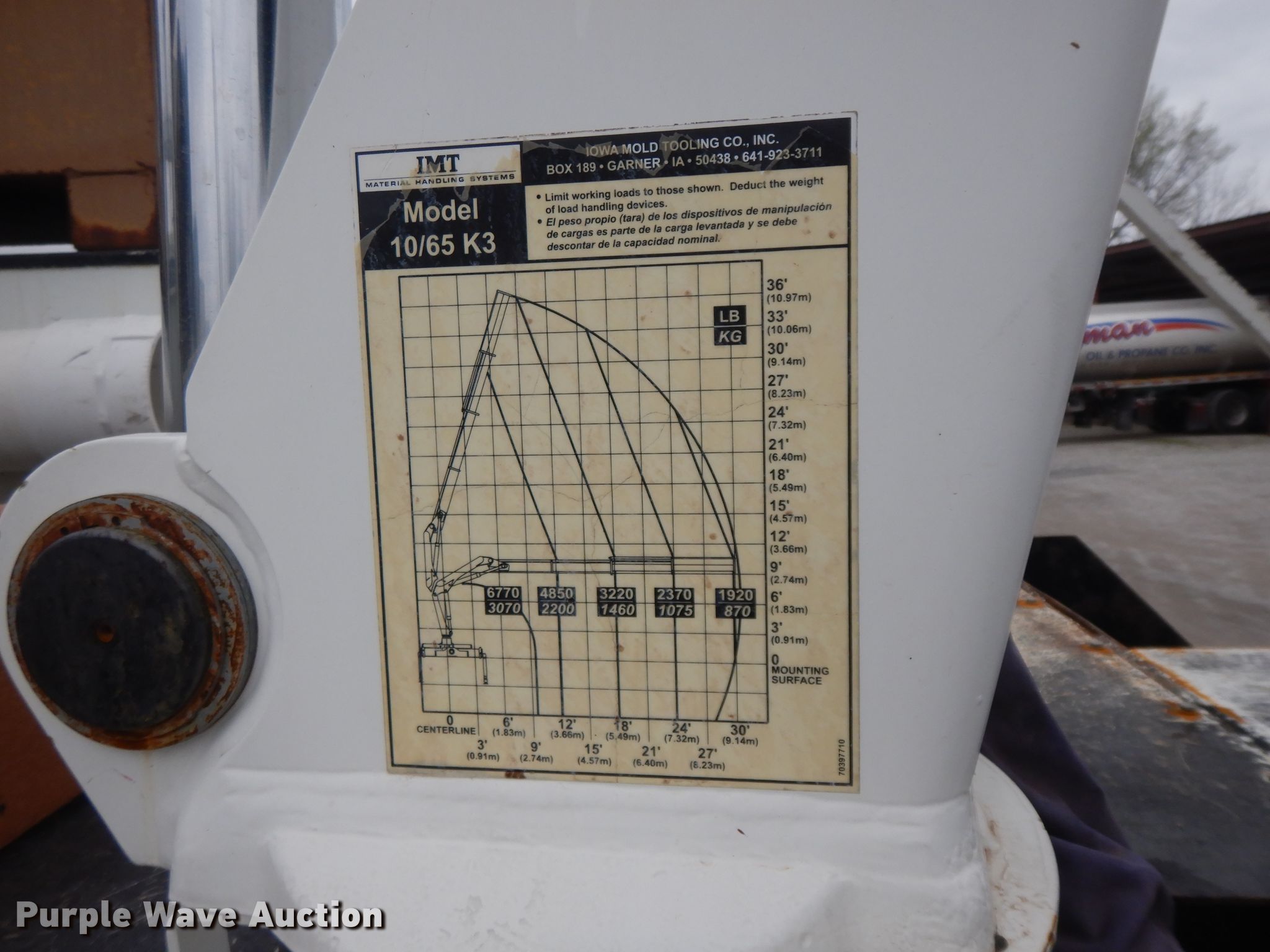 2010 International 7400 Crew Cab utility / service truck. 64,045 miles on odometer. Engine International DT466, Displacement: 7.6L, Cylinders: 6, Fuel type: Diesel. Transmission Eaton Fuller, Manual, Speed: 10. Chassis Axles: Tandem, Suspension: Spring, Brakes: Air, PTO, GVWR: 54,000 lbs, Differential lock. Interior AC, Heat. Operational Bed Iowa Mold Tooling Co 10/65, Oil/lube system Hose reels, Crane IMT 10/65 K3, Boom length: 36', Maximum lift capacity: 6,770 lbs, Hi-Rail wheel system. Tires Front: 315/80R22.5 , Rear: 11R22.5. Notes Unknown operating condition of Hi-Rail wheel system, parts missing. Oklahoma title. 1HTWGAAR4AJ235749. Smalygo Auto. 420 E Patti Page Blvd. Claremore, OK 74017
