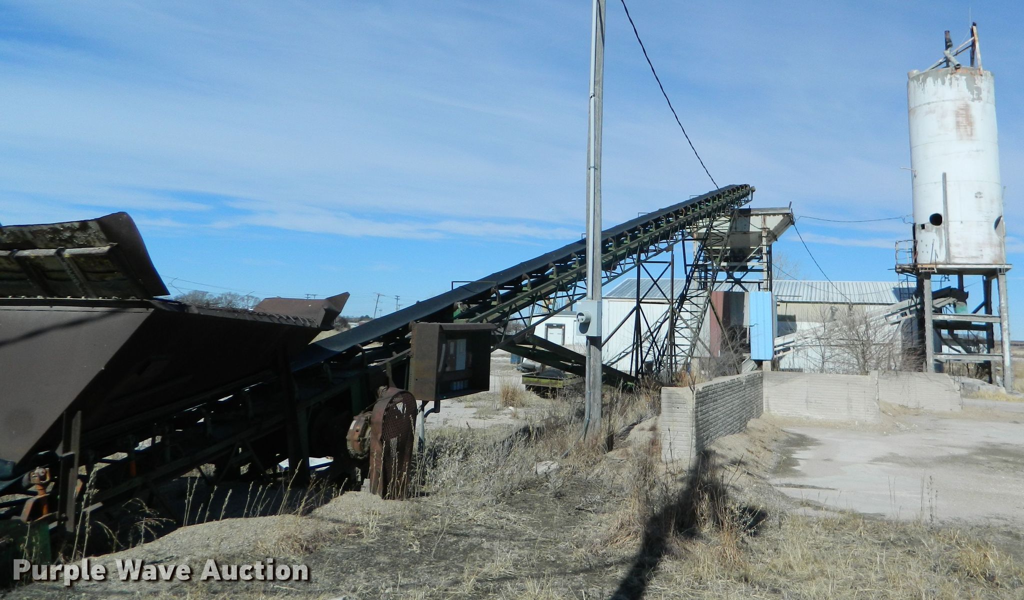 Concrete batch plant. 100'L x 24"W belt conveyor, 30'L x 24"W belt conveyor, 30'L x 12'W steel bulk tank, 11' x 11' hopper, 9' x 6 ' hopper , 7' x 9' hopper, (2) hot water tanks, Scale controls, Electric panel and switches, Unknown operating condition. Disassembly, removal, and disconnection from utilities are the sole responsibility of the purchaser. Purchaser must provide proof of a one million dollar liability insurance policy prior to removal. Item must be completely disassembled and removed by June 22, 2021. Star Seed, Inc. 101 Industrial Ave. Osborne, KS 67473