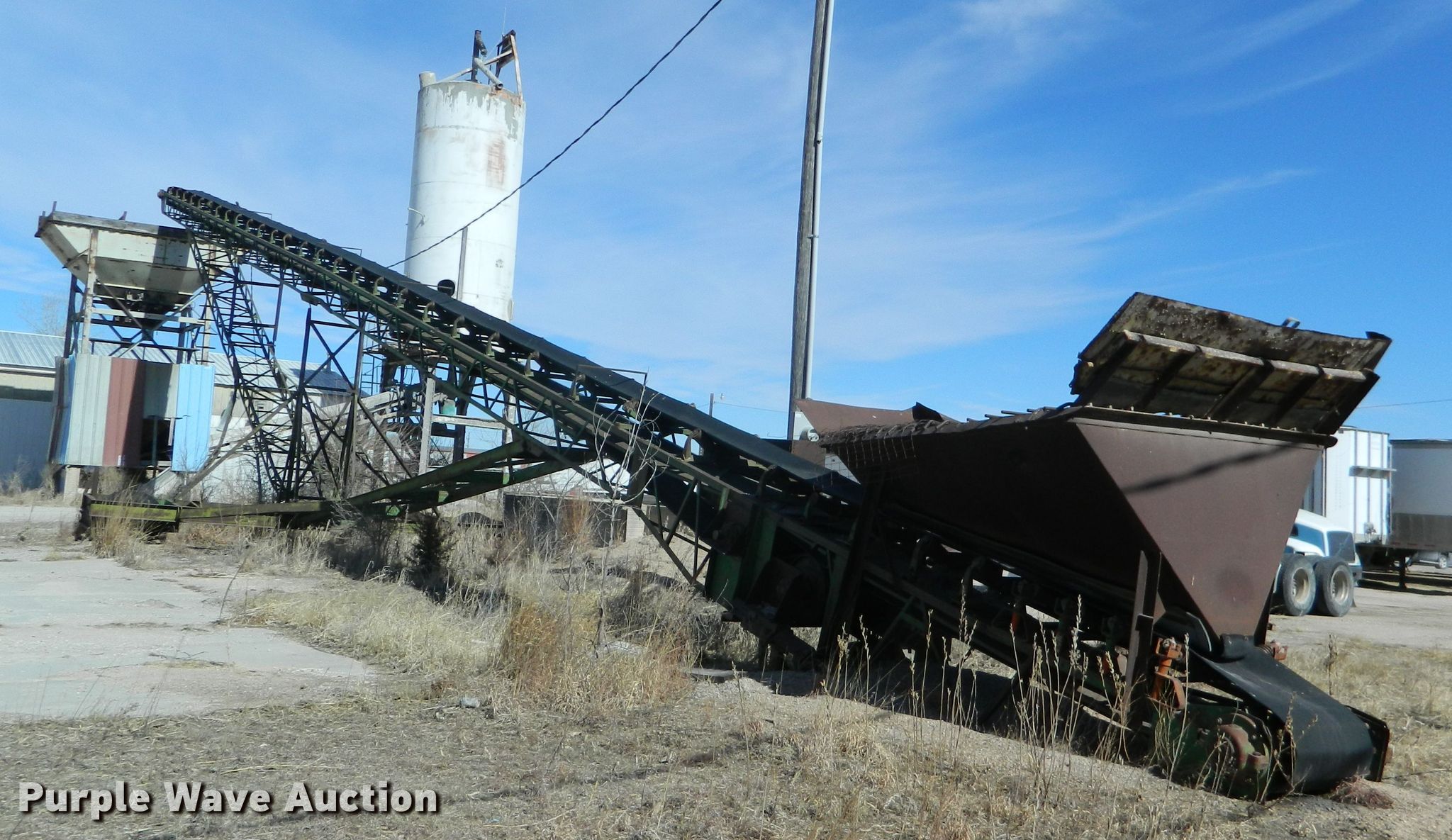 Purple Wave is selling a used Batch Plant or Surge Bin in Kansas. This item is a Concrete batch plant with the following: 100'L x 24"W belt conveyor, 30'L x 24"W belt conveyor, 30'L x 12'W steel bulk tank, 11' x 11' hopper, 9' x 6 ' hopper, 7' x 9' hopper, (2) hot water tanks, Scale controls, Electric panel and switches, Unknown operating condition