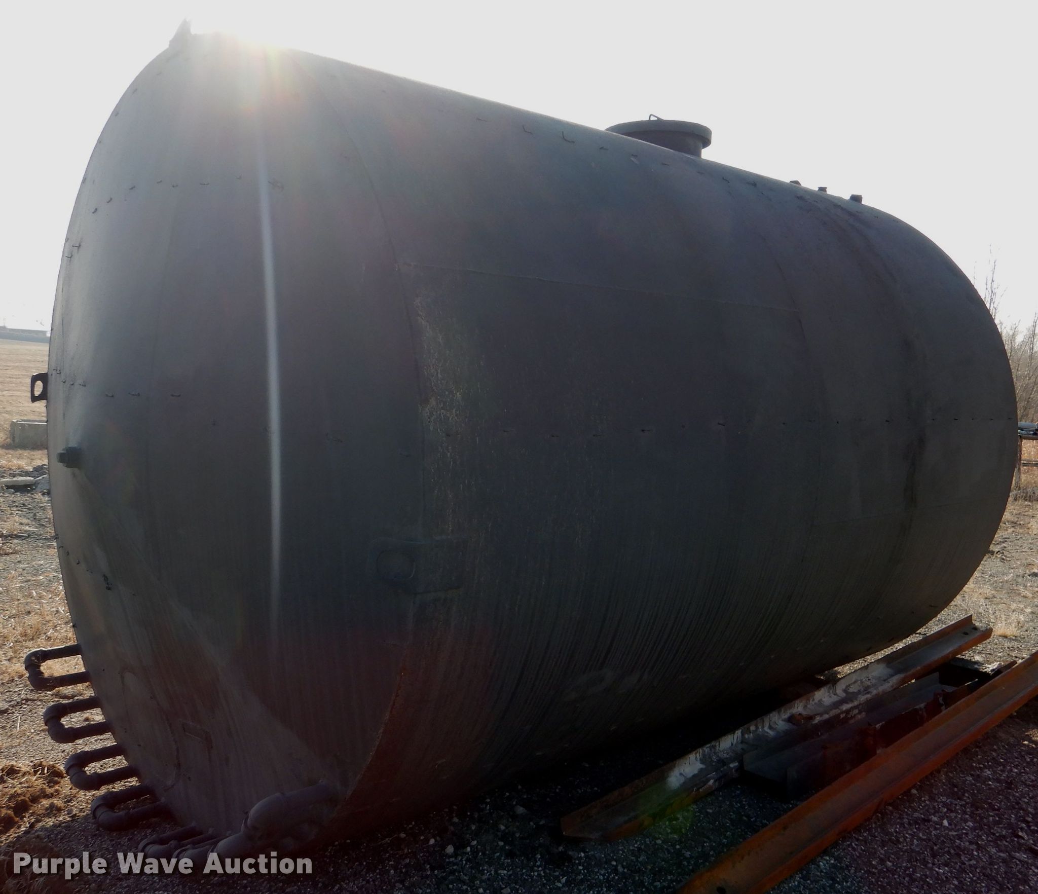Purple Wave is selling a used Fuel and Lube in Missouri. This item is a Asphalt oil tank with the following: 12'L x 9' diameter, Approximately 5,000 gallon capacity, Coiled for heat, Front outlet, Under side steel braces included, Concrete blocks not included