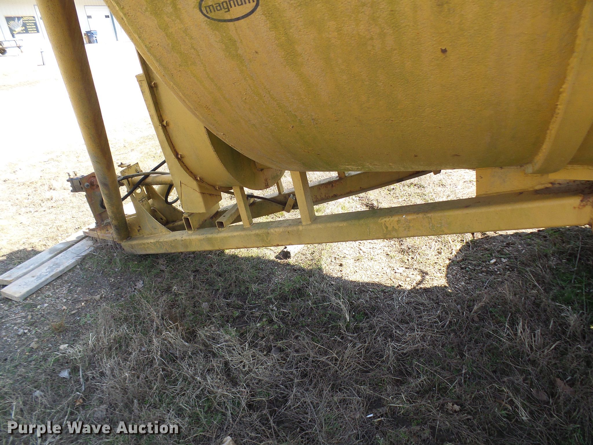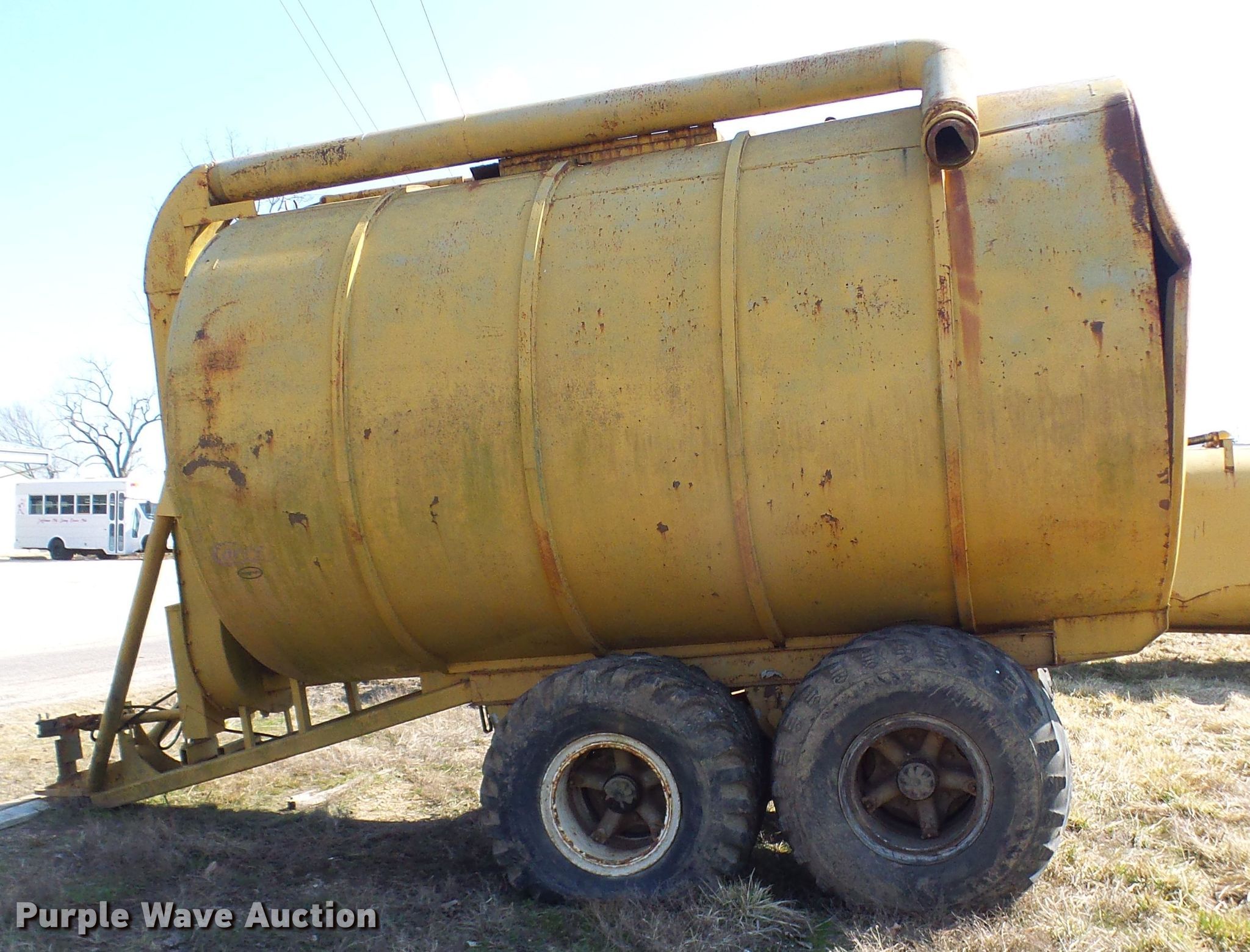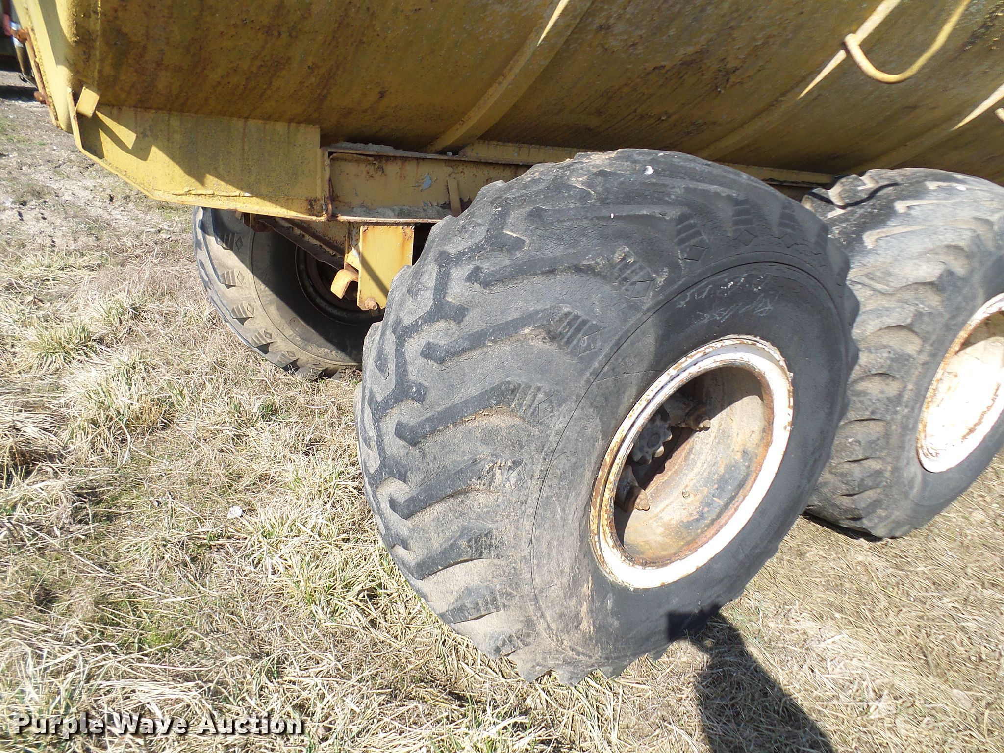 Corry Magnun tank trailer. 13'9"L x 95"W overall, Steel construction, Single leg landing gear, Spring suspension, Tandem axle, Steel wheels, 48x25x20 tires. Lake Area Concrete Construction, LLC. 631 E 5th St. Eldon, MO 65026