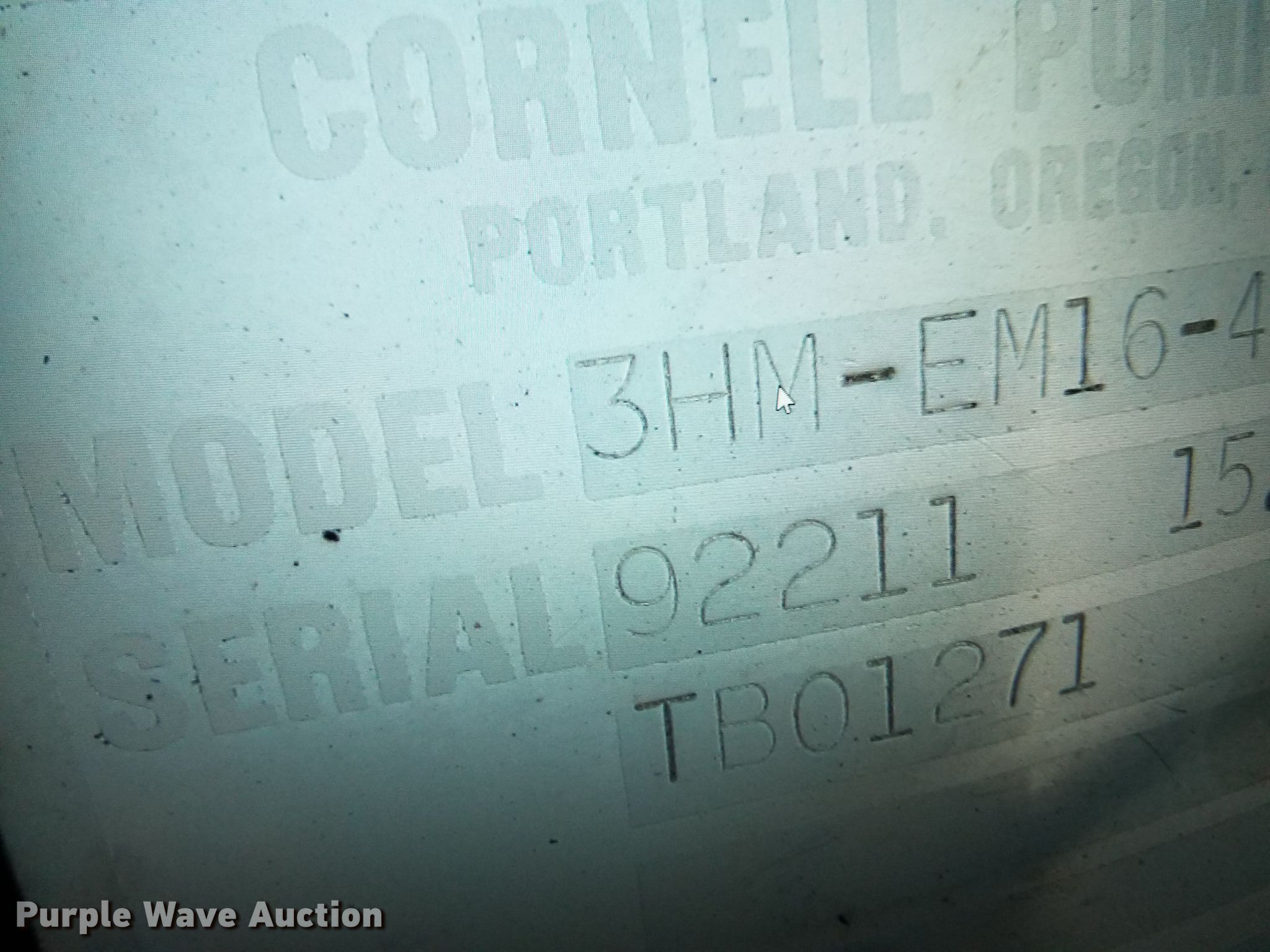 Purple Wave is selling a used Pump in Missouri. This item is a Cornell 3HMEM164 water pump with the following: Six cylinder diesel engine, 6" inlet/discharge, No battery, Serial 92211