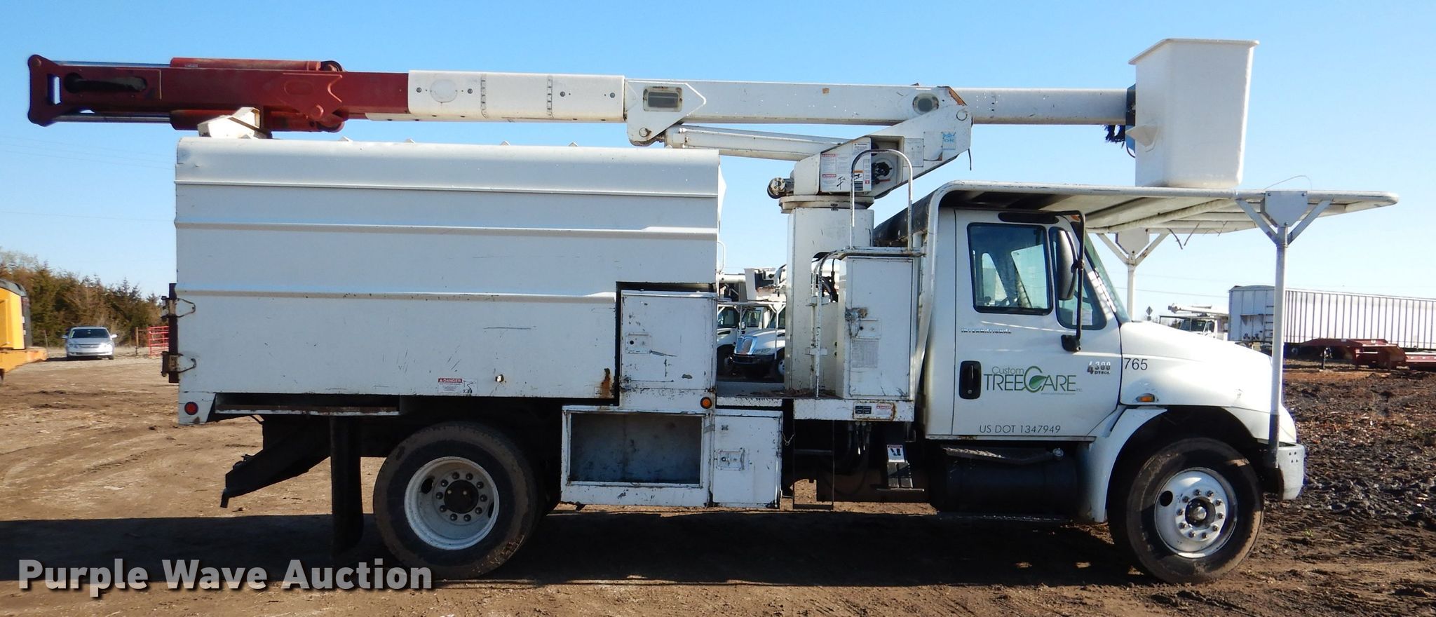 Purple Wave is selling a used Bucket Truck in Kansas. This item is a 2004 International 4300 forestry bucket truck with the following: 161,629 miles on odometer, Engine hours: 19,753, Unit #: 765