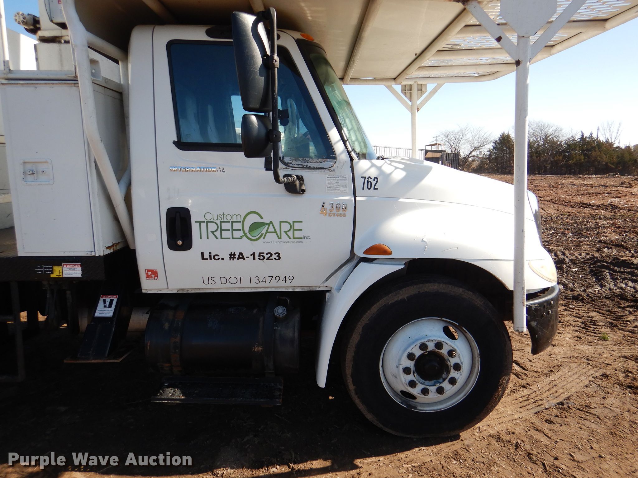 2004 International 4300 forestry bucket truck. 146,640 miles on odometer, Unit #: 762. Engine International DT466, Displacement: 7.6L, Cylinders: 6, Fuel type: Diesel. Transmission Manual, Speed: 6. Chassis Axles: Single, Suspension: Spring, Brakes: Hydraulic, PTO, GVWR: 25,999 lbs, Wheelbase: 189". Interior Heat, Cruise control. Operational Chip bed Arbortech, Length: 15' 2", Dump bed Length: 11', Width: 92", Side height: 60", Hoist: Single cylinder, Boom Terex Hi-Ranger XT5, Serial: 2030221459, Maximum lift capacity: 350 lbs, Maximum lift height: 55', Boom type: Articulating, Insulated, Man basket, Boom controls Platform/ basket.. Tires Size: 295/75R22.5. Notes Dash warning indicator: ABS, Non-operational heat. Kansas title. Vehicle has an E-Title in the State of Kansas. A paper title will be distributed to the buyer within 30 days from verification of funds. 1HTMMAAM14H604762. Custom Tree Care. 3431 SE 21st St. Topeka, KS 66607