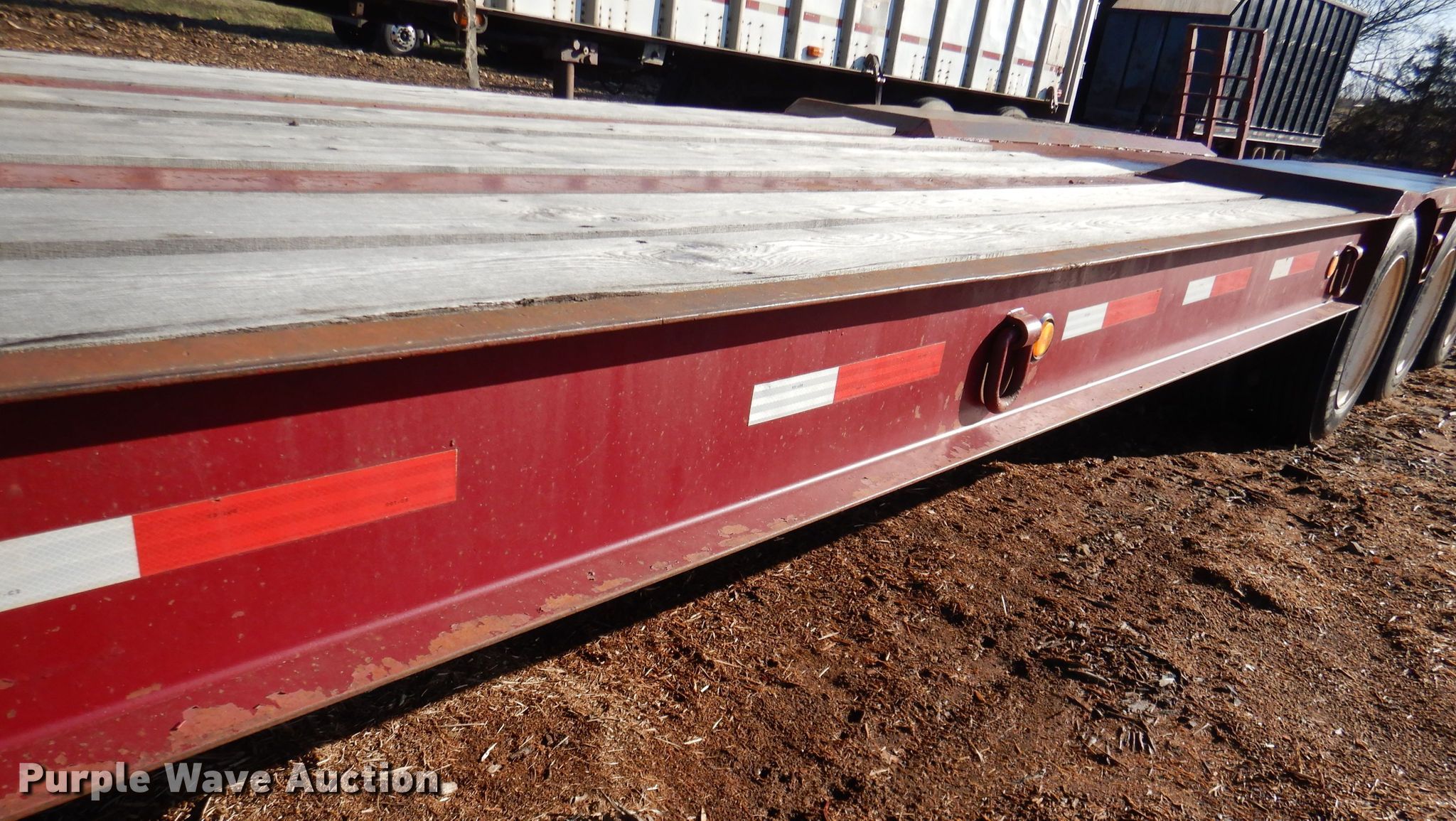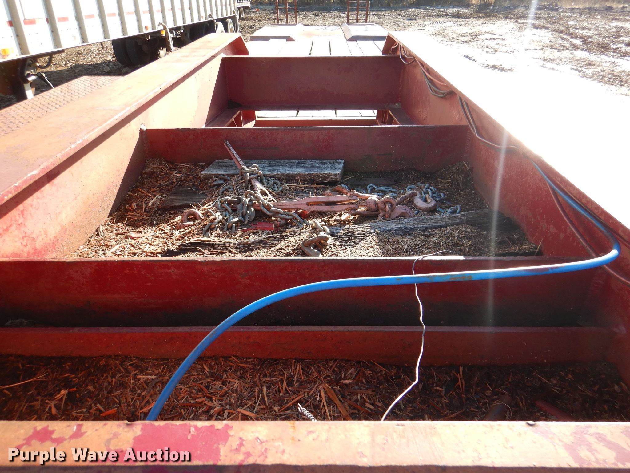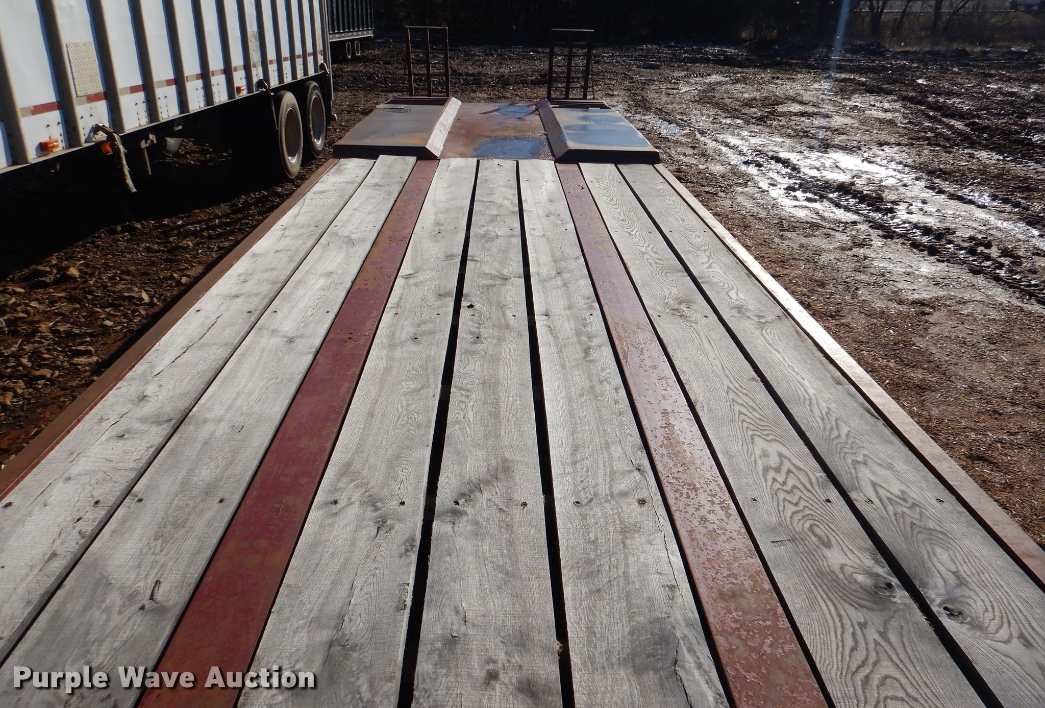 Purple Wave is selling a used Flat or Drop Deck Trailer in Kansas. This item is a Nuttall drop deck equipment trailer with the following: 45'L x 102"W overall, 30'L x 102"W deck, 5'L tail, 4'L ramps, Wood deck, Dual leg landing gear, Spring suspension, Air brakes, Triple axle, Steel wheels, 255/70R22.5 tires, GVWR 100,000 lbs, GAWR 22,500 lbs