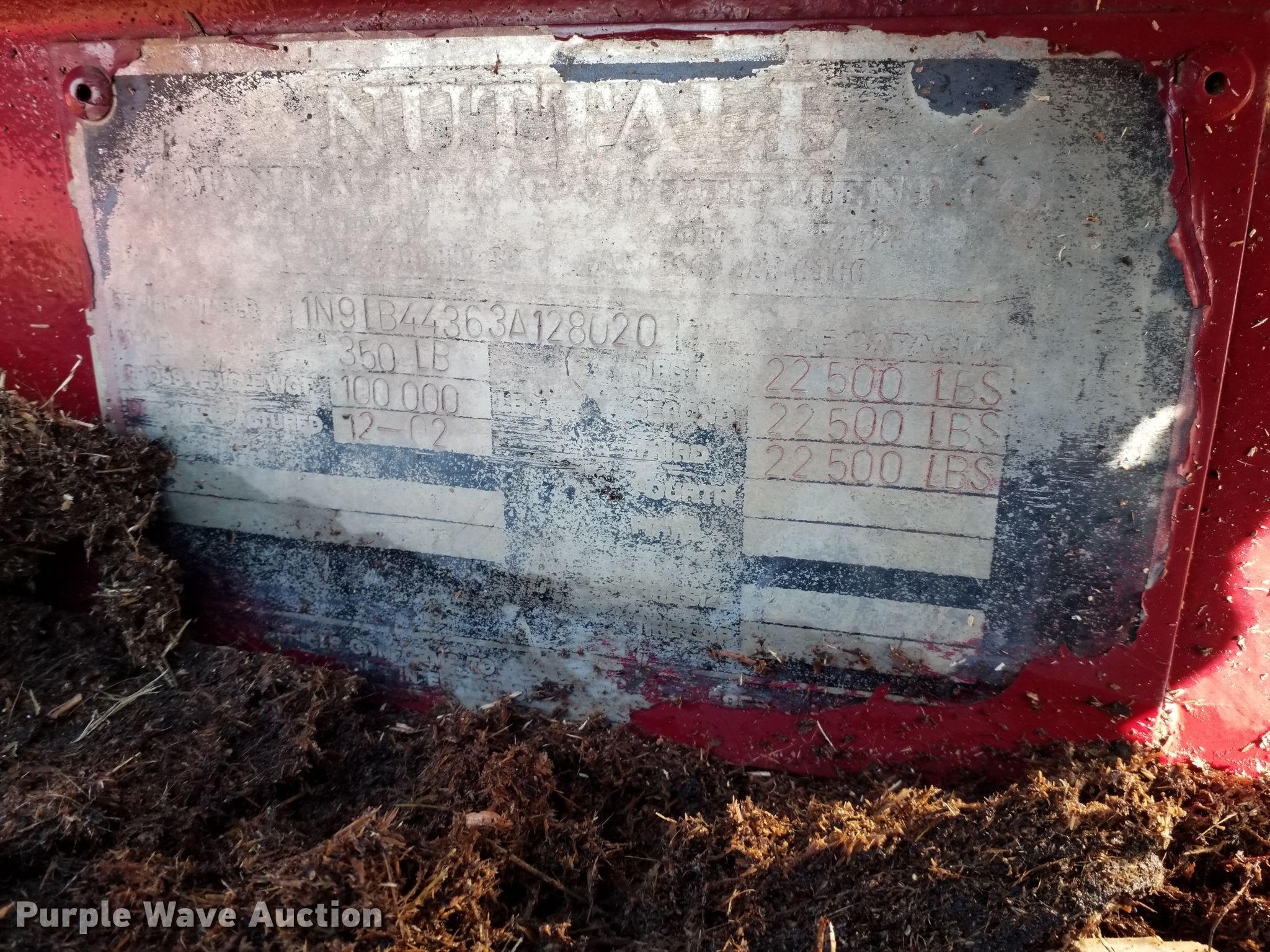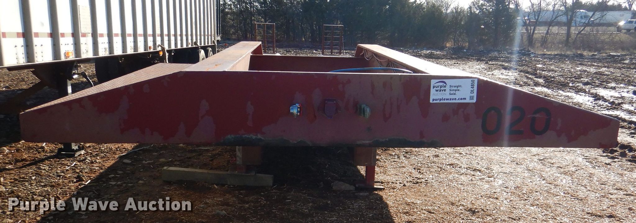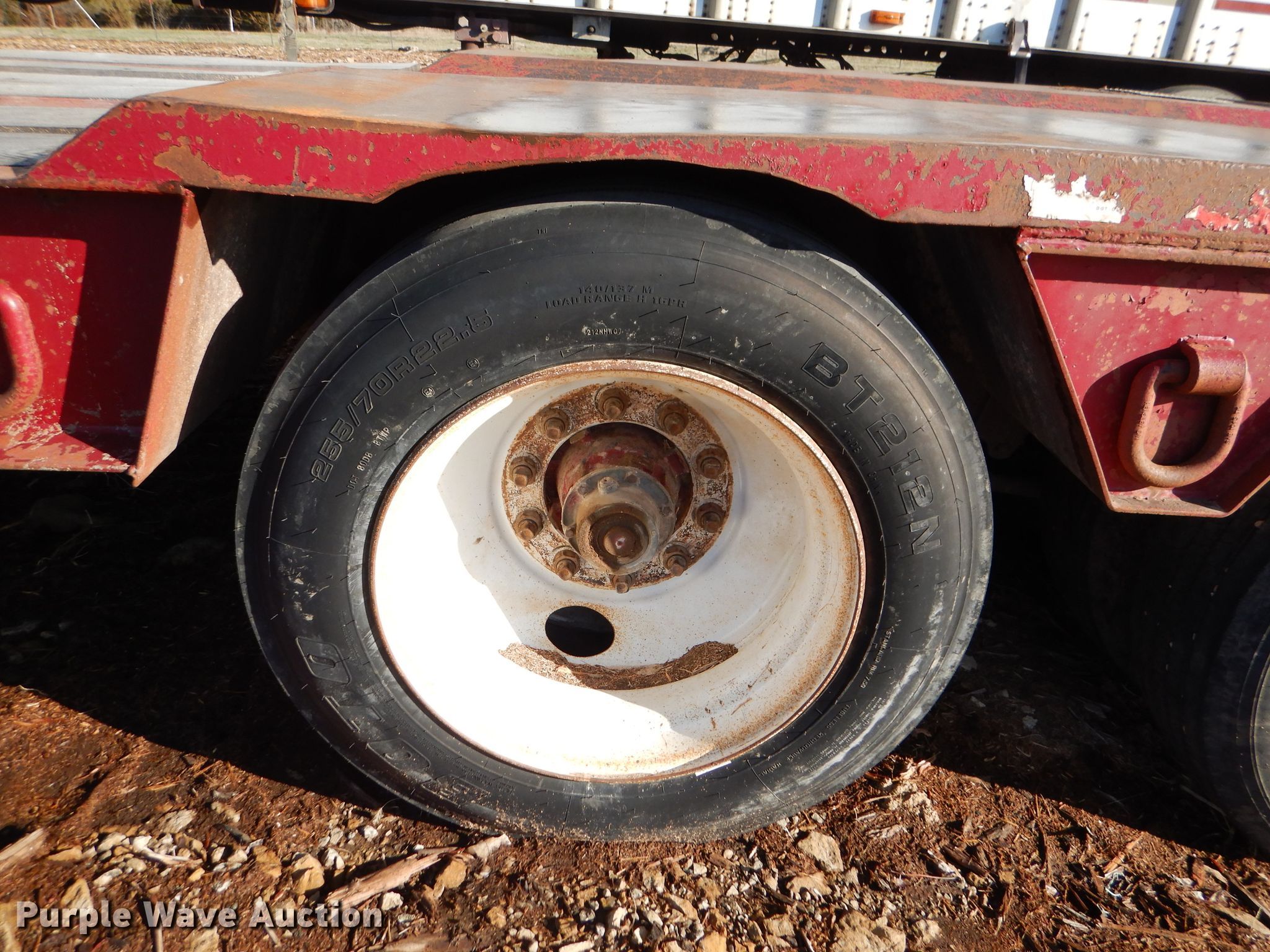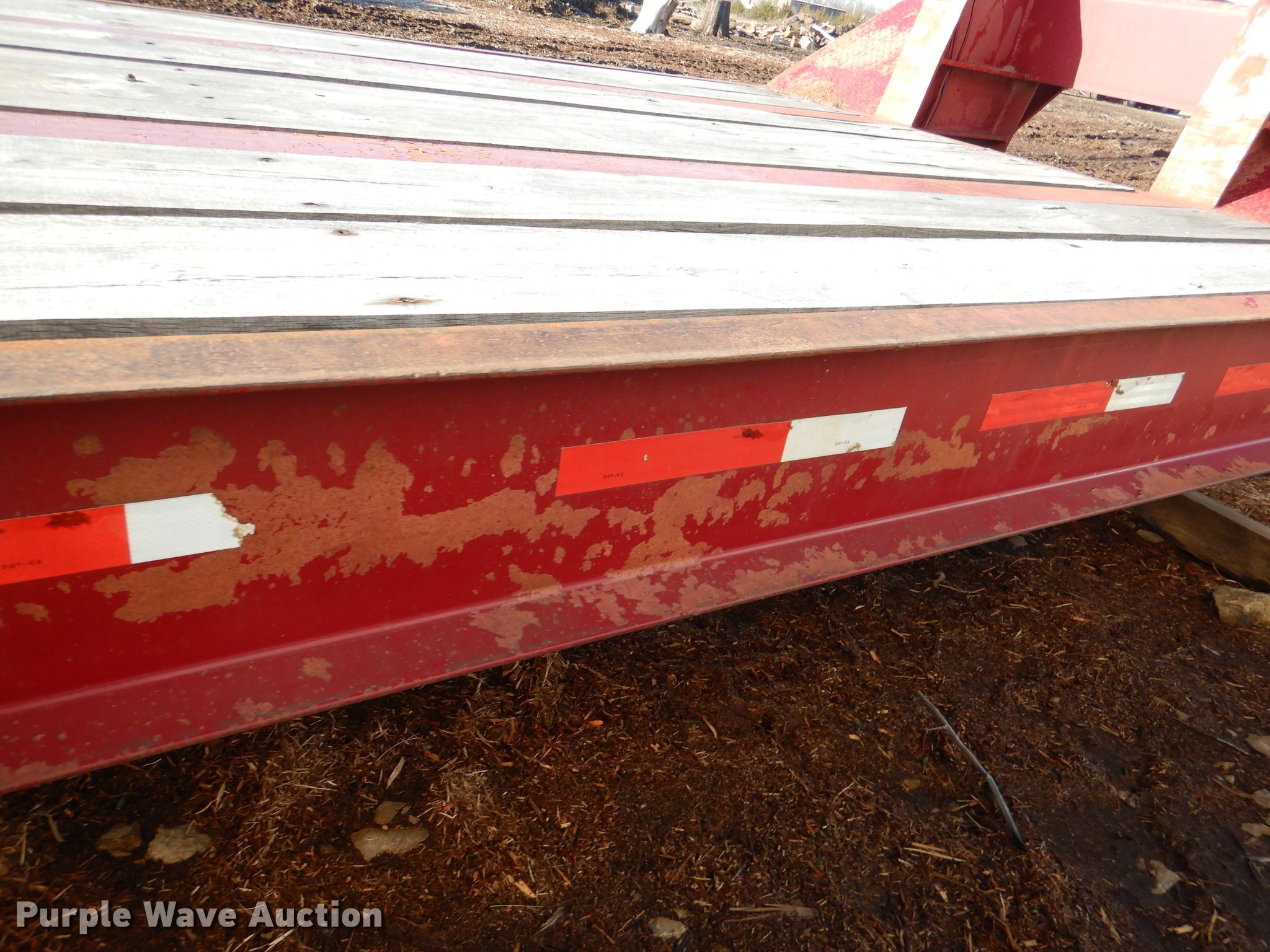 Purple Wave is selling a used Flat or Drop Deck Trailer in Kansas. This item is a Nuttall drop deck equipment trailer with the following: 45'L x 102"W overall, 30'L x 102"W deck, 5'L tail, 4'L ramps, Wood deck, Dual leg landing gear, Spring suspension, Air brakes, Triple axle, Steel wheels, 255/70R22.5 tires, GVWR 100,000 lbs, GAWR 22,500 lbs