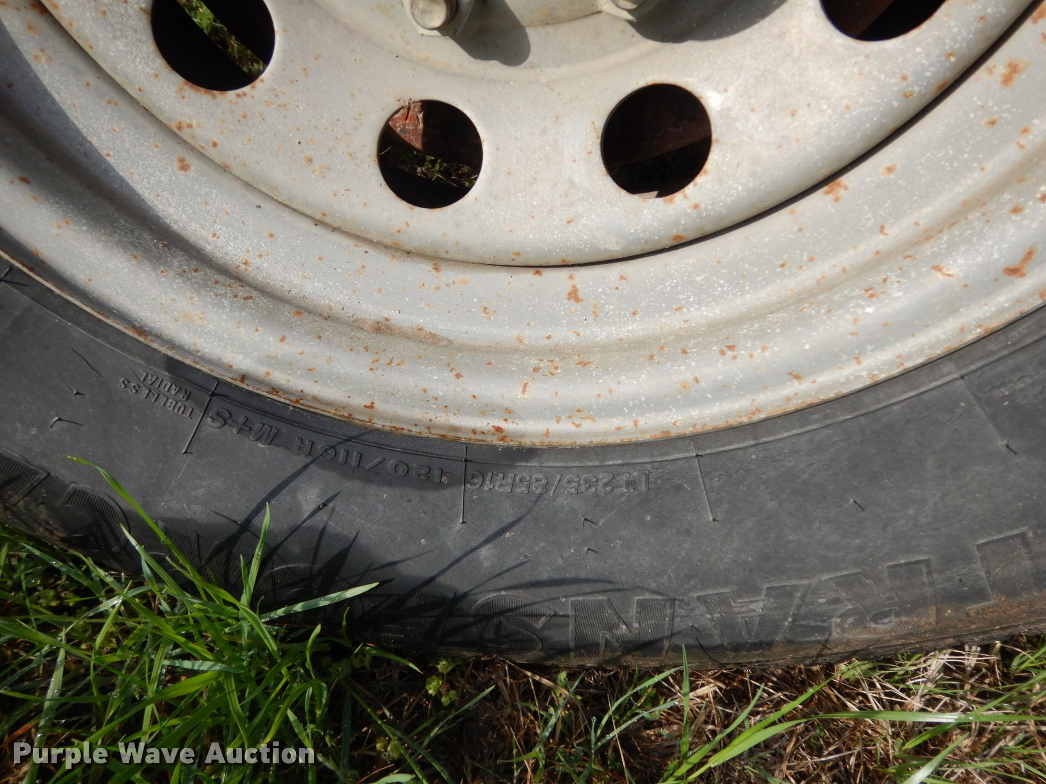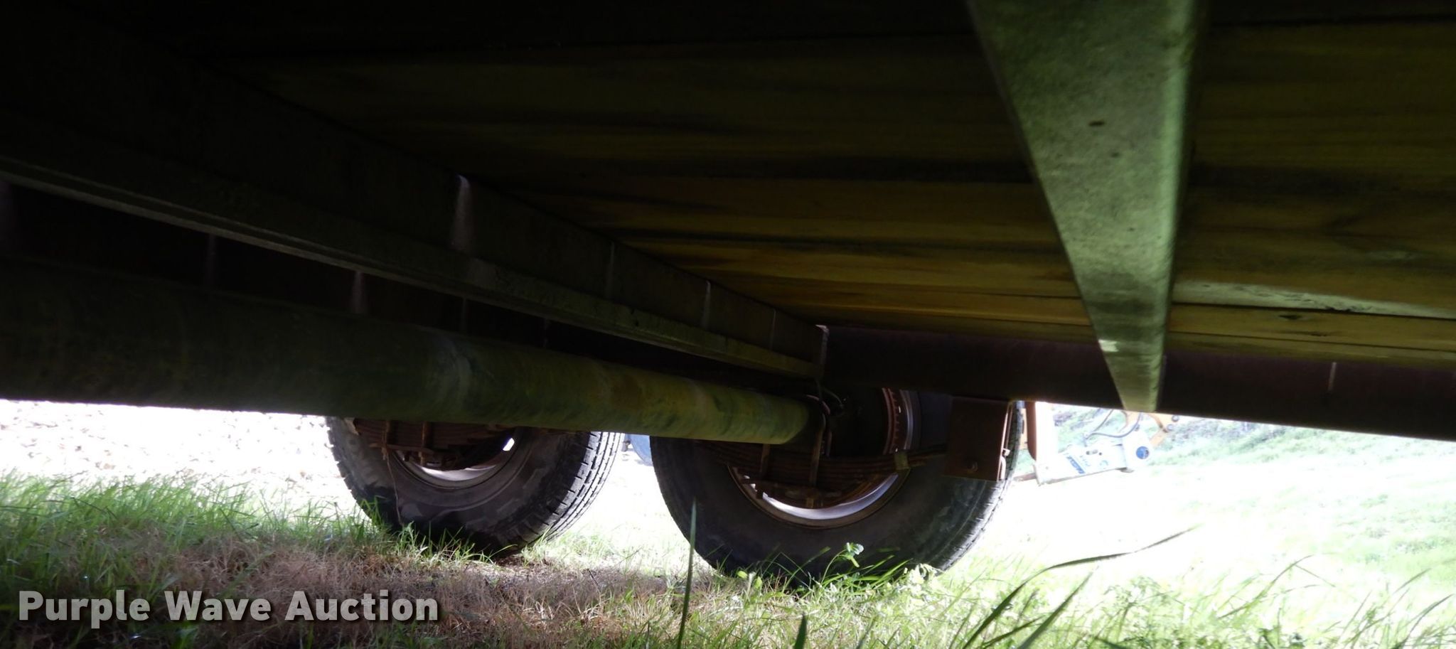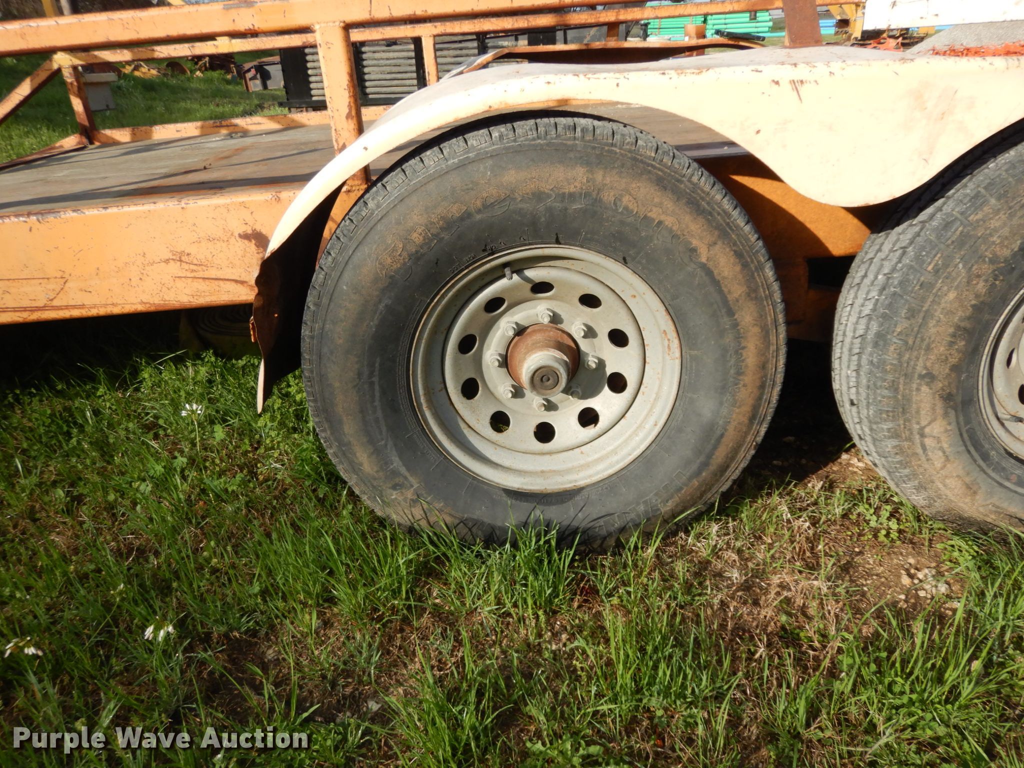Purple Wave is selling a used Equip. Trailer in Texas. This item is a 2004 Shop built utility trailer with the following: 28'L x 102"W overall, 20'L x 82"W deck, 3'L tail, 4'L ramps, 2 5/16" ball hitch, Wood deck, Poly tank, Capacity: 300 gallons, Wacker 2" pump, Single leg landing gear, Spring suspension, Electric brakes, Tandem axle, 235/85R16 tires