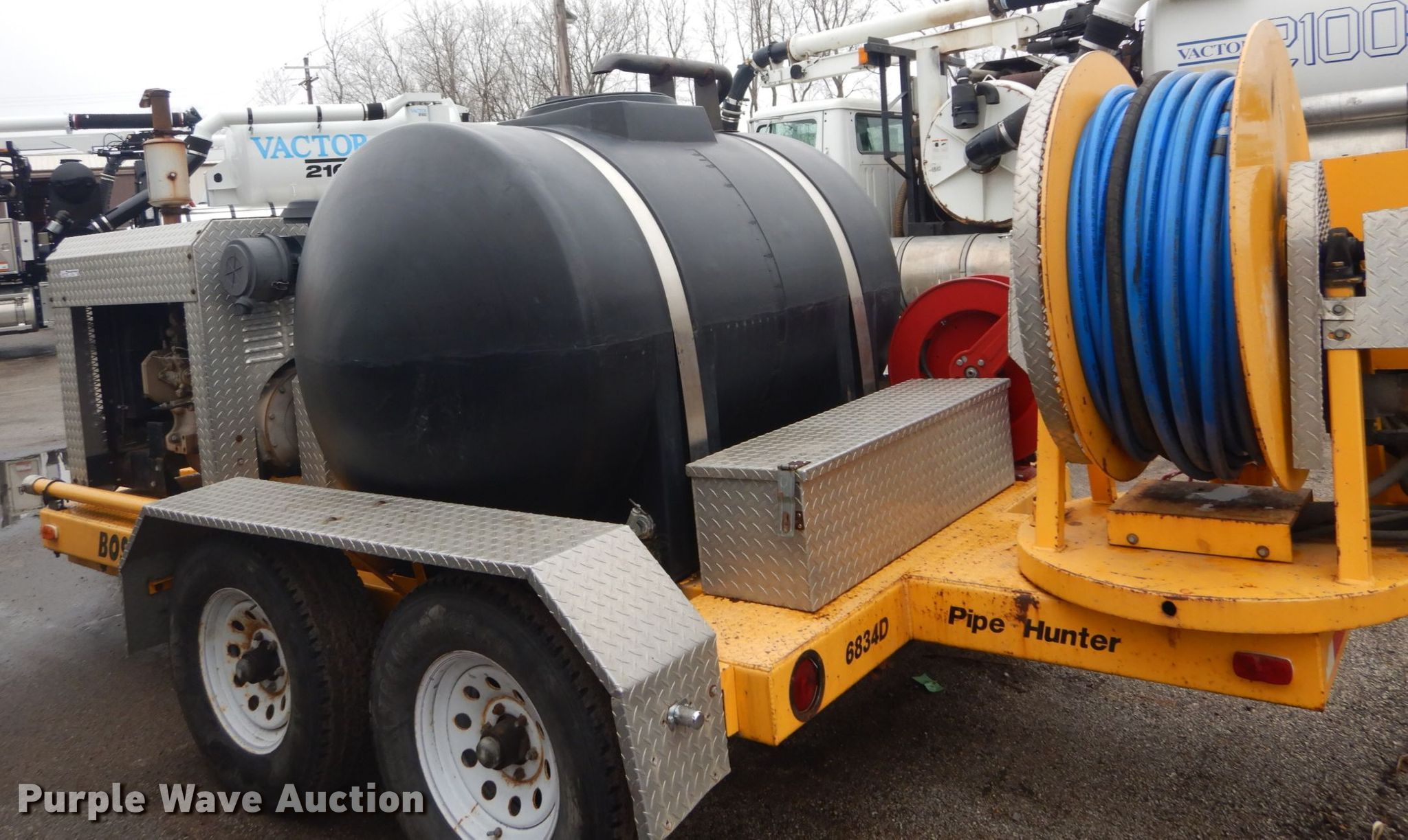 Purple Wave is selling a used Trailer Other in Missouri. This item is a 1999 Underground sewer jetter trailer with the following: Engine, John Deere, Hours: 598, Cylinders: 4, Fuel type: Diesel, Pump, Bean L11114DSC, GPM: 40, PSI: 3,000, Water tank, Boss 6834D, Capacity:600 gallons, 2" diameter fill inlet, Reel, 1" diameter hose, Air hose reel