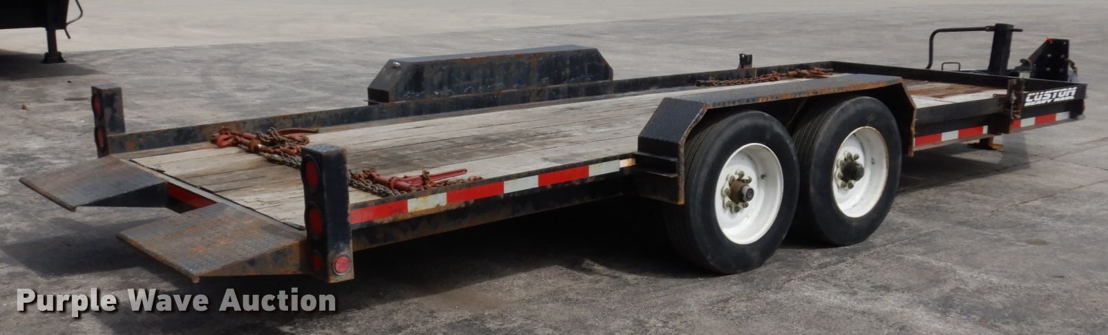 Purple Wave is selling a used Equip. Trailer in Illinois. This item is a 2016 Lucon tilt deck equipment trailer with the following: 26'L x 101"W overall, 19'2"L x 80"W deck, 18"L ramps, Wood deck, Single leg landing gear, Electric brakes, Tandem axle, Steel wheels, 215/75R17.5 tires, GVWR 16,800 lbs