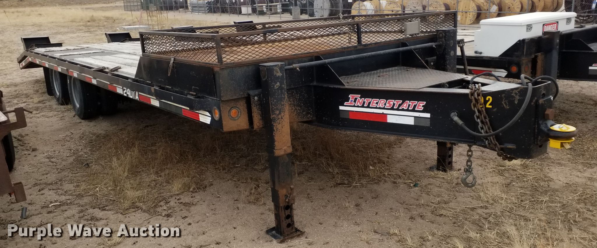 Purple Wave is selling a used Equip. Trailer in Colorado. This item is a 2007 Interstate equipment trailer with the following: 33.5'L x 101"W overall, 19.5'L wood deck, 5'L tail, 5'L ramps, Dual leg landing gear, Tandem axle, Spring suspesnion, Air brakes, Steel wheels, 235/85R16 tires, GVWR 30,250 lbs, GAWR 11,112 lbs