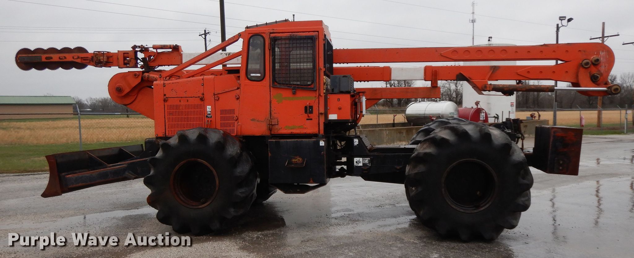 1992 Timberland C45 tree trimmer. 7,659 hours on meter. Engine Cummins, Displacement: 5.9L, Cylinders: 6, Fuel type: Diesel. Transmission Powershift, 4F - 4R, Differential lock. Operators station Enclosed cab, AC, Heat, Boom controls: Two stick. Operational Boom Insulated, Blades Quantity: 5, Blade diameter: 18", Backfill blade Width: 112", Counter weights Quantity: 12, Winch 30,000 lbs capacity. Tires Size: 67x34.00-24. Notes Additional parts included. New-Mac Electric Co-op, Inc.. 12105 State Hwy 86. Neosho, MO 64850