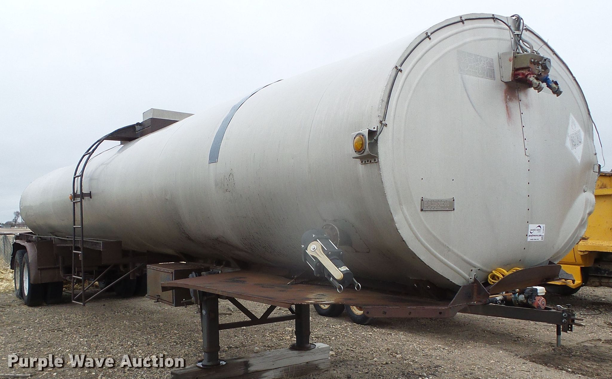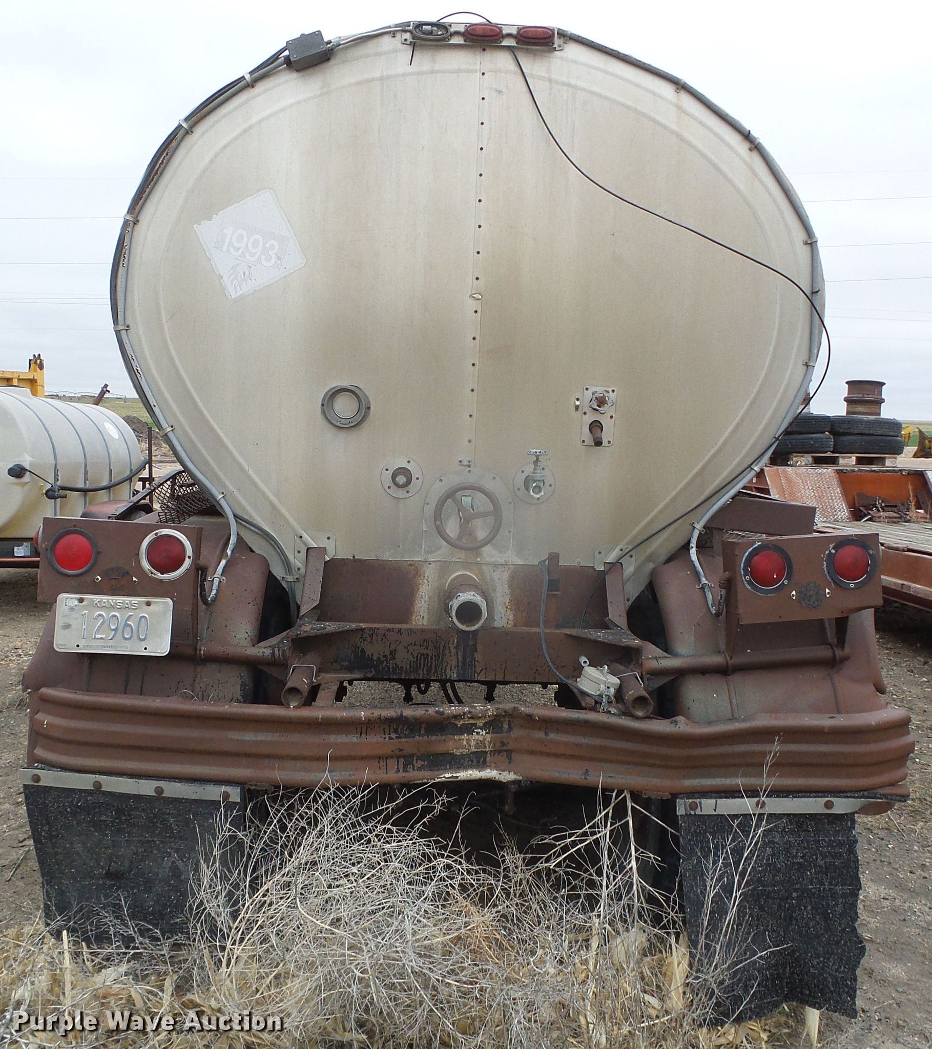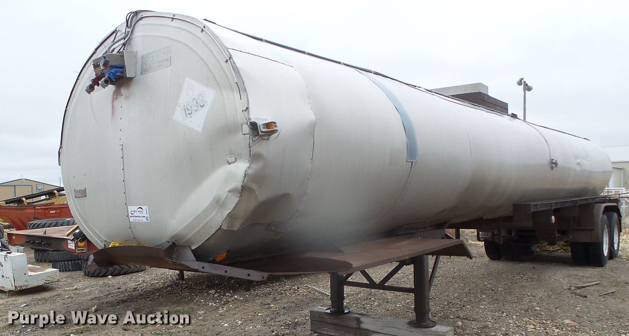 Purple Wave is selling a used Fertilizer or Feed Delivery Trailer in Kansas. This item is a 1959 Moser tank trailer with the following: 38'L x 96"W overall, Aluminum trailer, Dual leg landing gear, Spring suspension, Air brakes, Tandem axles, Steel wheels, 11R24.5 tires
