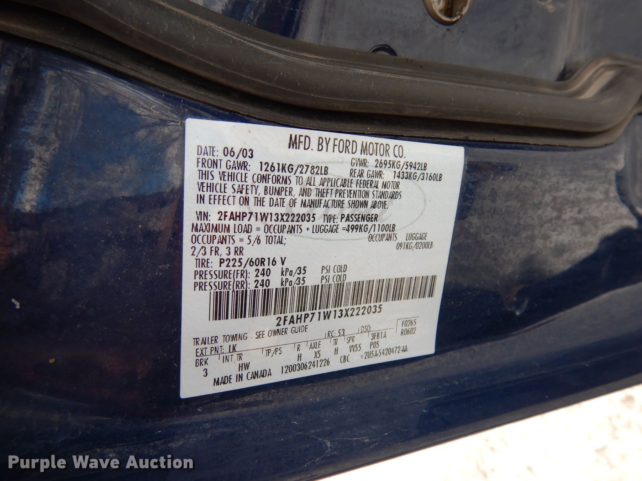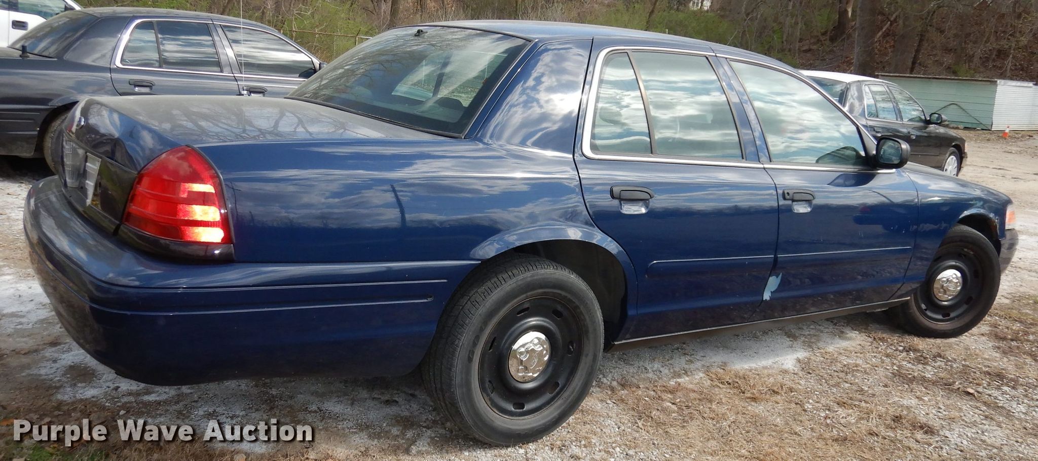 2003 Ford Crown Victoria Police Interceptor. 119,257 miles on odometer. Engine Displacement: 4.6L V8 SOHC 16V, Cylinders: 8, Fuel type: Gas. Transmission Automatic. Interior AC, Heat, Heated mirrors, Power windows, Power locks, Cruise control. Tires Size: 225/60R16. Notes Dead battery. Missouri title. 2FAHP71W13X222035. Independence, MO 65055