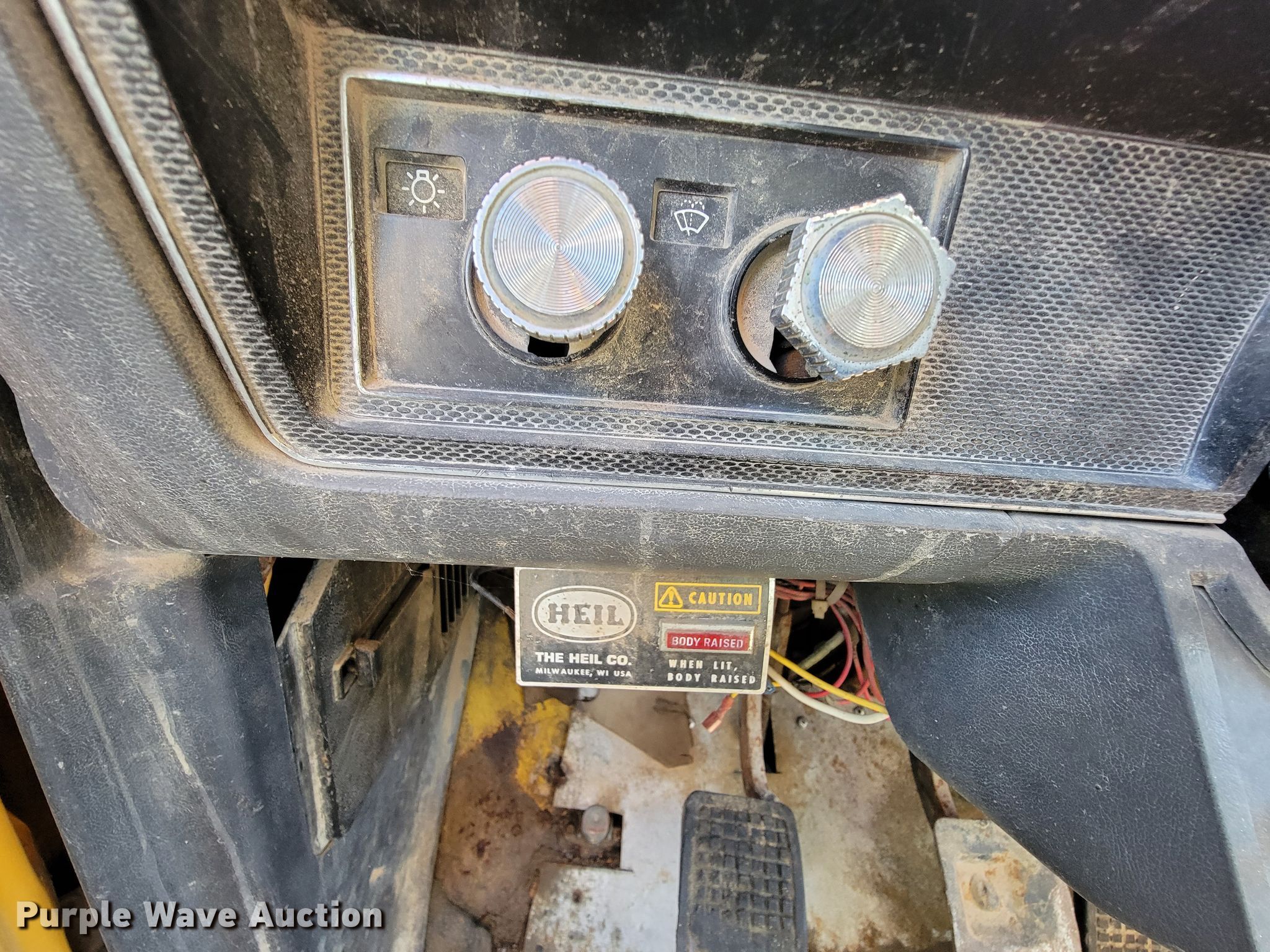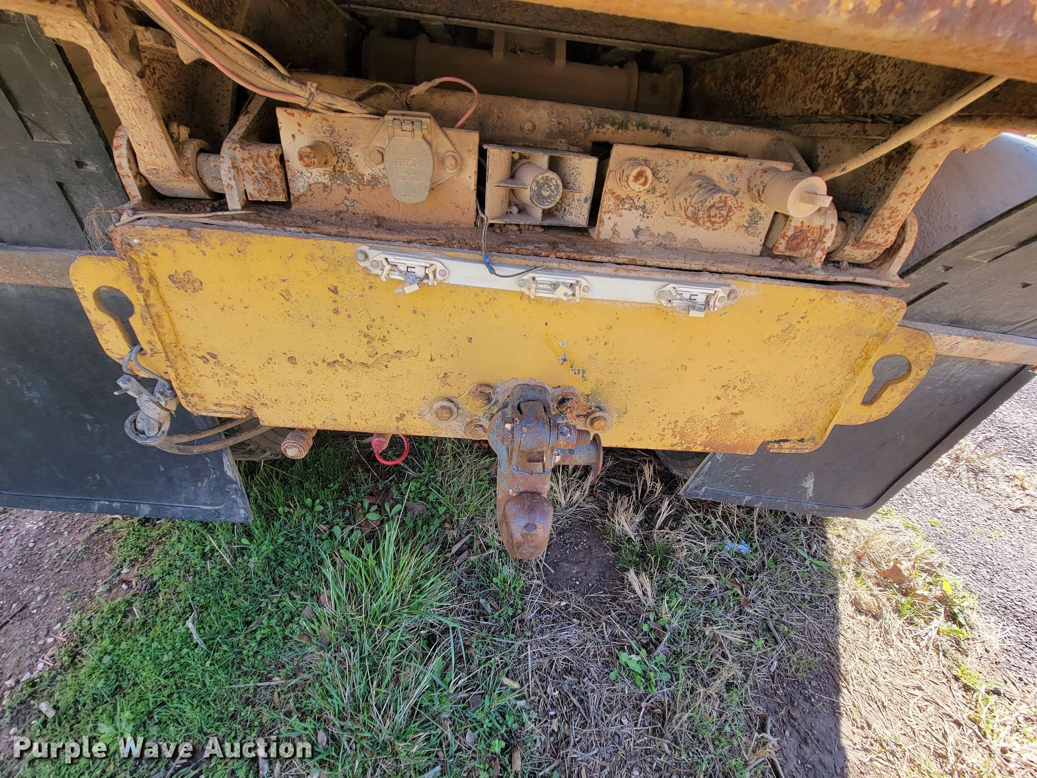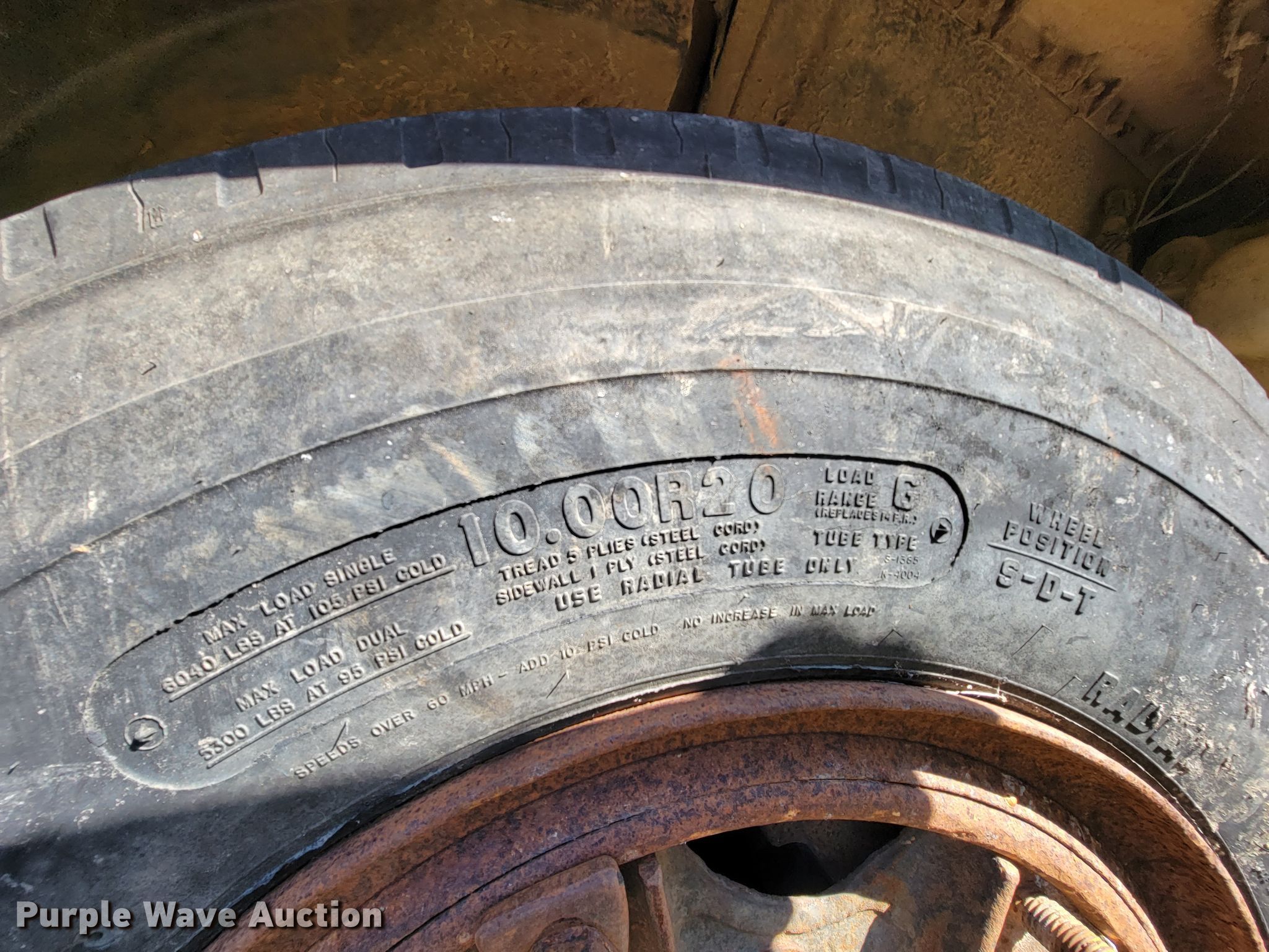1990 Ford F800 dump truck. 51,020 miles on odometer. Engine Displacement: 7.8L, Cylinders: 6, Fuel type: Diesel. Transmission Manual, Speed: 10. Chassis Axles: Single, Suspension: Spring, Brakes: Air, PTO, GVWR: 27,000 lbs, Wheelbase: 141". Operational Dump bed 9' L x 96" W, Side height: 28", Bed type: Steel, Ram: Single , End gate: Manual. Tires Front: 10.00R20, Rear: 9.00R20. Notes Unknown operating condition. Missouri title. 1FDPK84A5LVA31063. Dade County. 478 S Dade 217. Everton, MO 65646