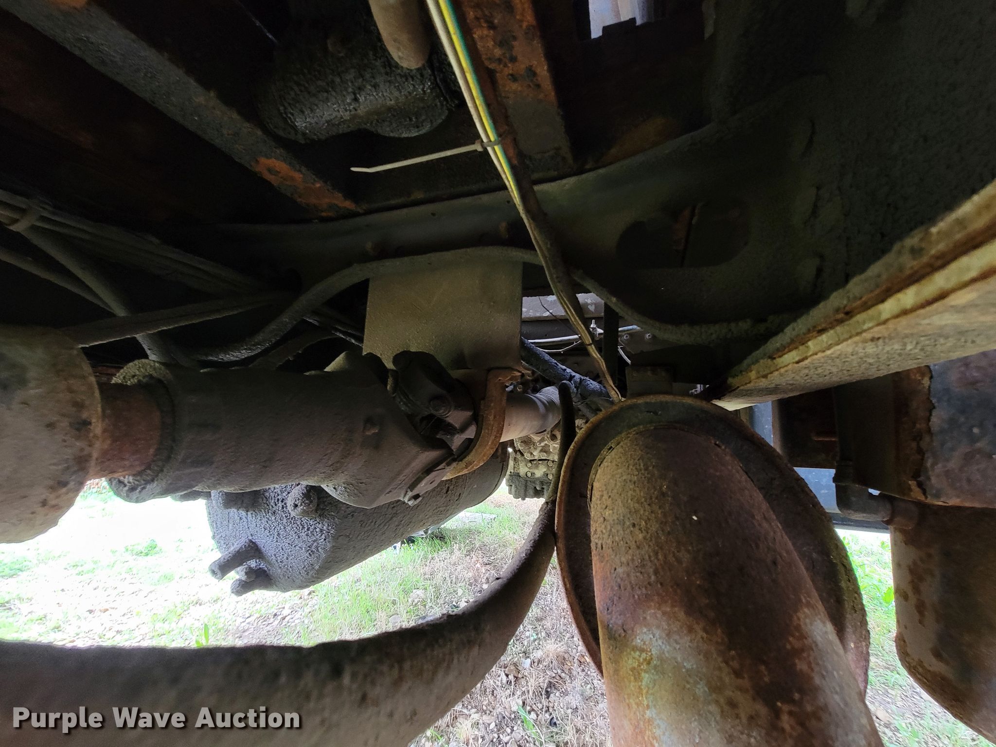 1999 International 4900 dump truck. 83,072 miles on odometer. Engine International 530, Displacement: 8.7L L6, Cylinders: 6, Fuel type: Diesel. Transmission Automatic. Chassis Axles: Tandem, Differential lock: Inter-axle, Suspension: Spring over walking beam, Brakes: Air, PTO, Wheelbase: 188". Interior Heat. Operational Dump bed 14' L x 96" W, Side height: 36", Bed type: Steel, Ram: Dual, End gate: Manual. Tires Size: 11R22.5. Notes Non-operational engine, Non-operational brakes, Non-operational unit. Oklahoma title. 1HTSHADR6XH638140. City of Tahlequah, OK. 1104 W Woodard Rd. Tahlequah, OK 74464