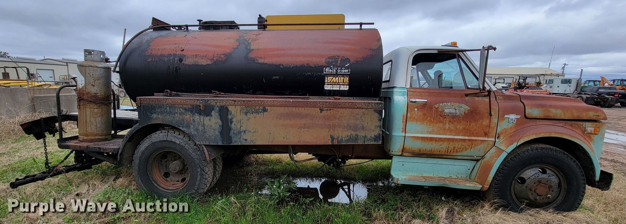 Purple Wave is selling a used Oil Distributor Truck in Oklahoma. This item is a 1968 Chevrolet 50 oil distributor truck with the following: 79,246 miles on odometer
