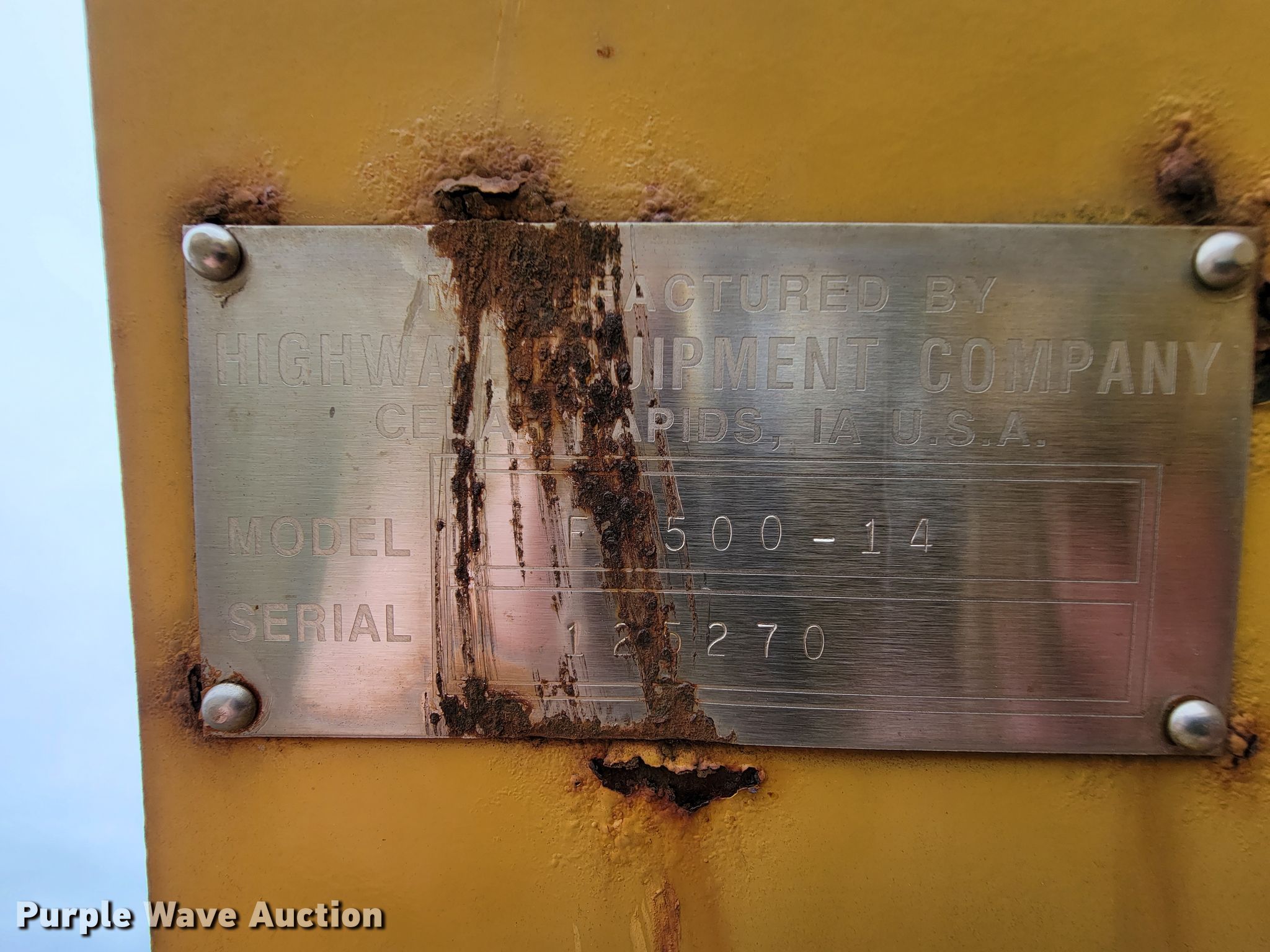 Purple Wave is selling a used Truck Part and Attach. in Oklahoma. This item is a Hi-way E2500-14 spreader with the following: 14'L x 84"W, Vanguard 356477 two cylinder gas engine, Fuel tank, Hydraulic tank, Serial 125270