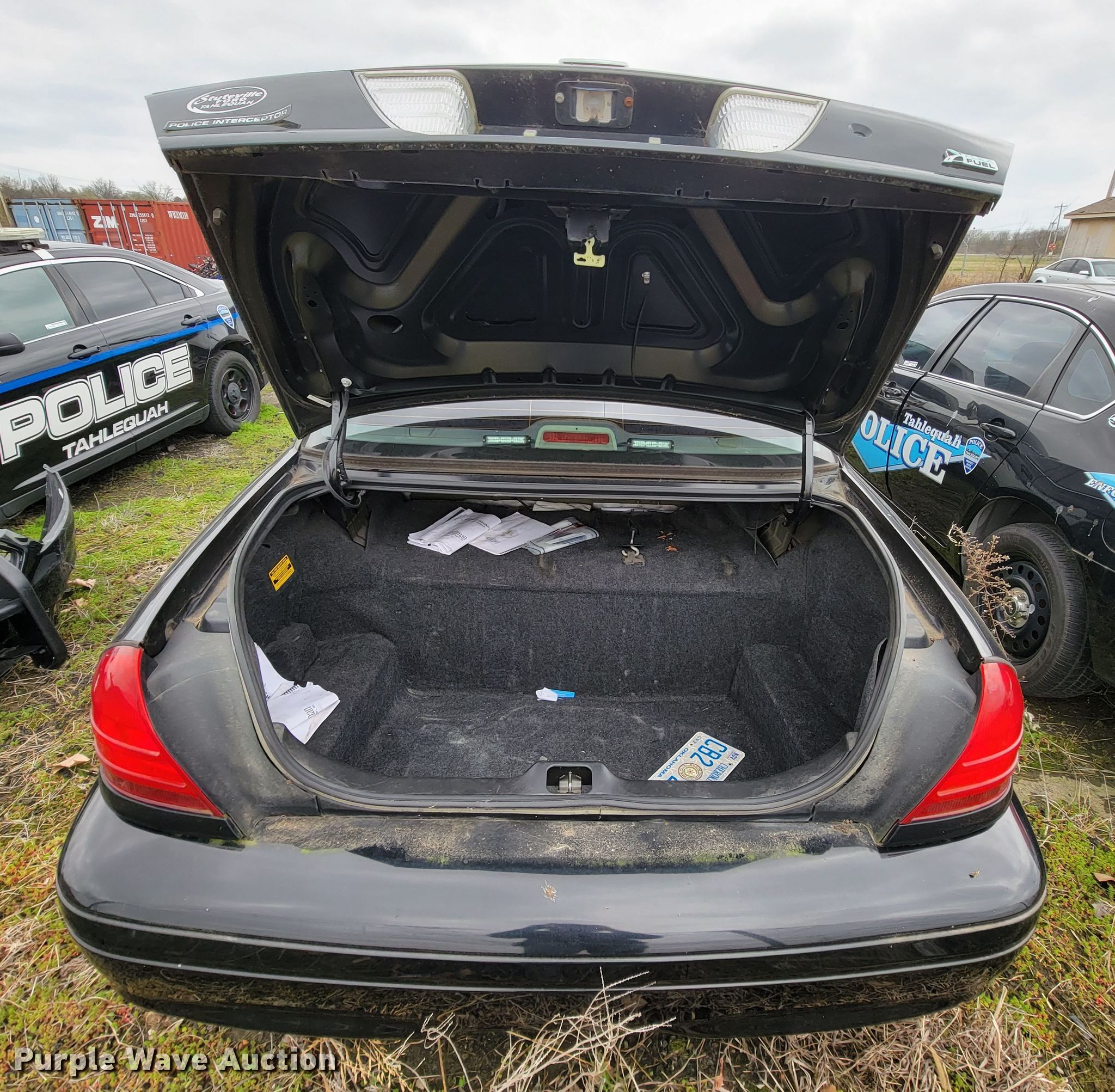 2011 Ford Crown Victoria Police Interceptor. 47,292 miles on odometer. Engine Displacement: 4.6L V8 SOHC 16V FFV, Cylinders: 8, Fuel type: Gas. Transmission Automatic. Interior Heat, Power windows, Power locks, Cruise control. Tires Size: 235/55R17. Notes Radar and police radio not included , Front drivers side tire missing, Weak battery, Non-operational unit. Oklahoma title. 2FABP7BV5BX119646. City of Tahlequah, OK. 1104 W Woodard Rd. Tahlequah, OK 74464