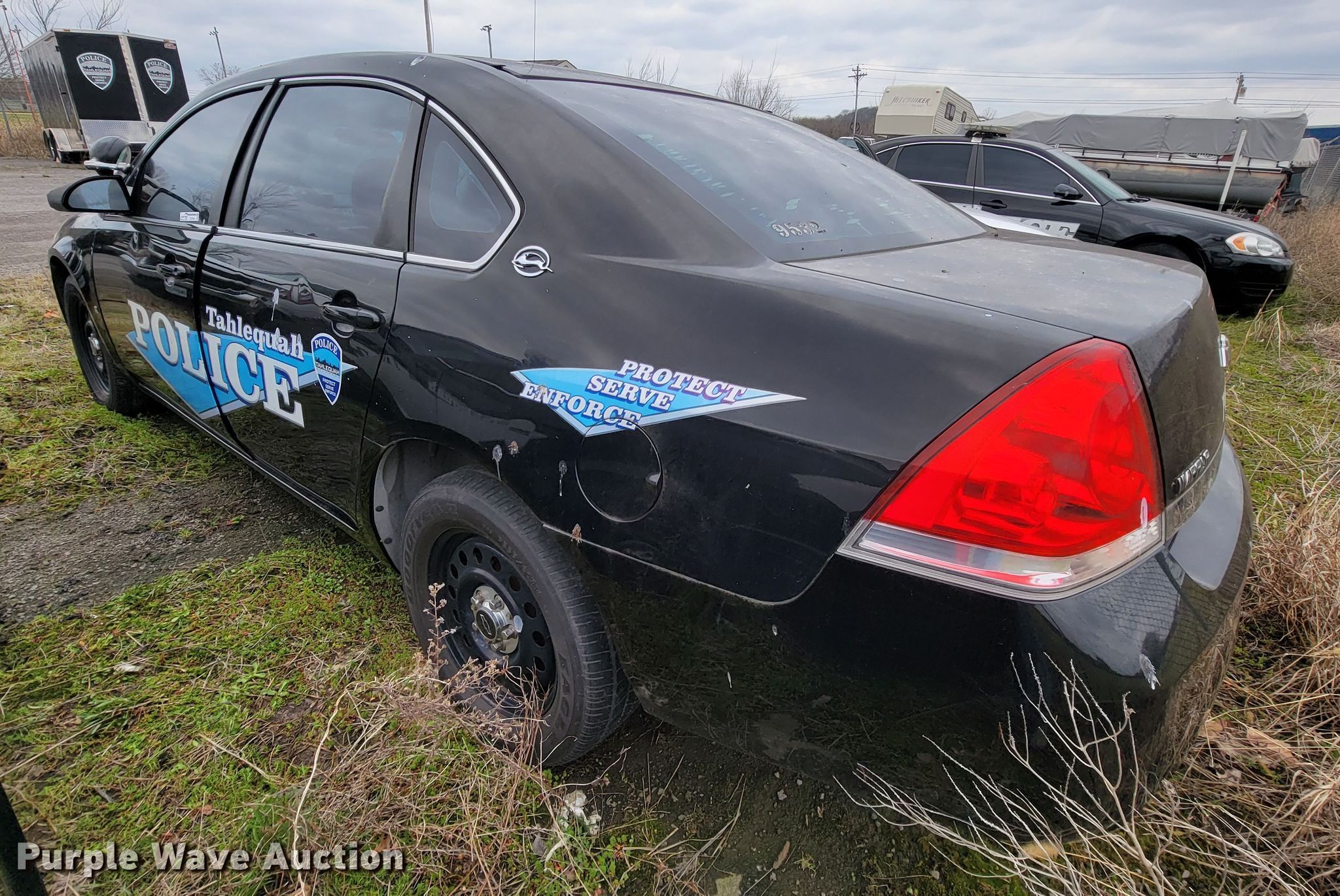 2007 Chevrolet Impala Police. 114,958 miles on odometer. Engine Displacement: 3.9L V6 OHV 12V, Cylinders: 6, Fuel type: Gas. Transmission Automatic. Interior Seat: Power passenger, Power windows, Power locks, Cruise control. Tires Size: 225/60R16. Notes Police radio and radar not included , Dash warning indicator: TPMS, Non-operational rear passenger window, will not roll up , Weak battery, Unknown operating condition. Oklahoma title. 2G1WS55R179229532. City of Tahlequah, OK. 1104 W Woodard Rd. Tahlequah, OK 74464