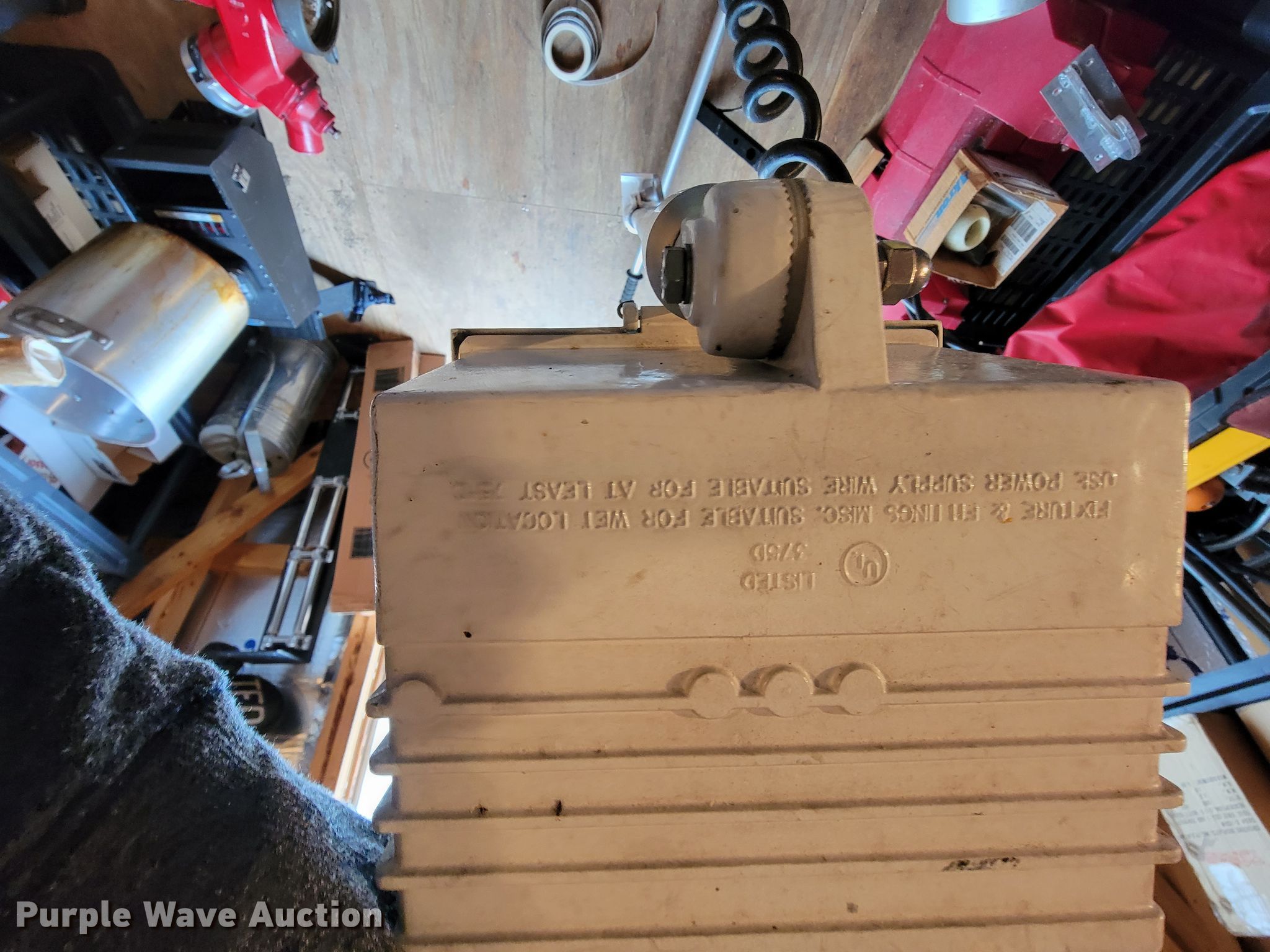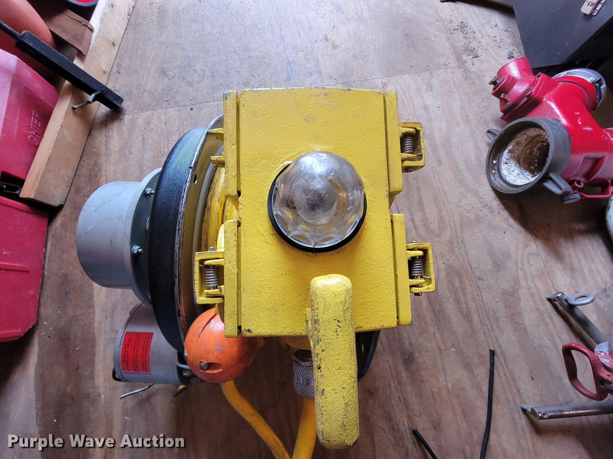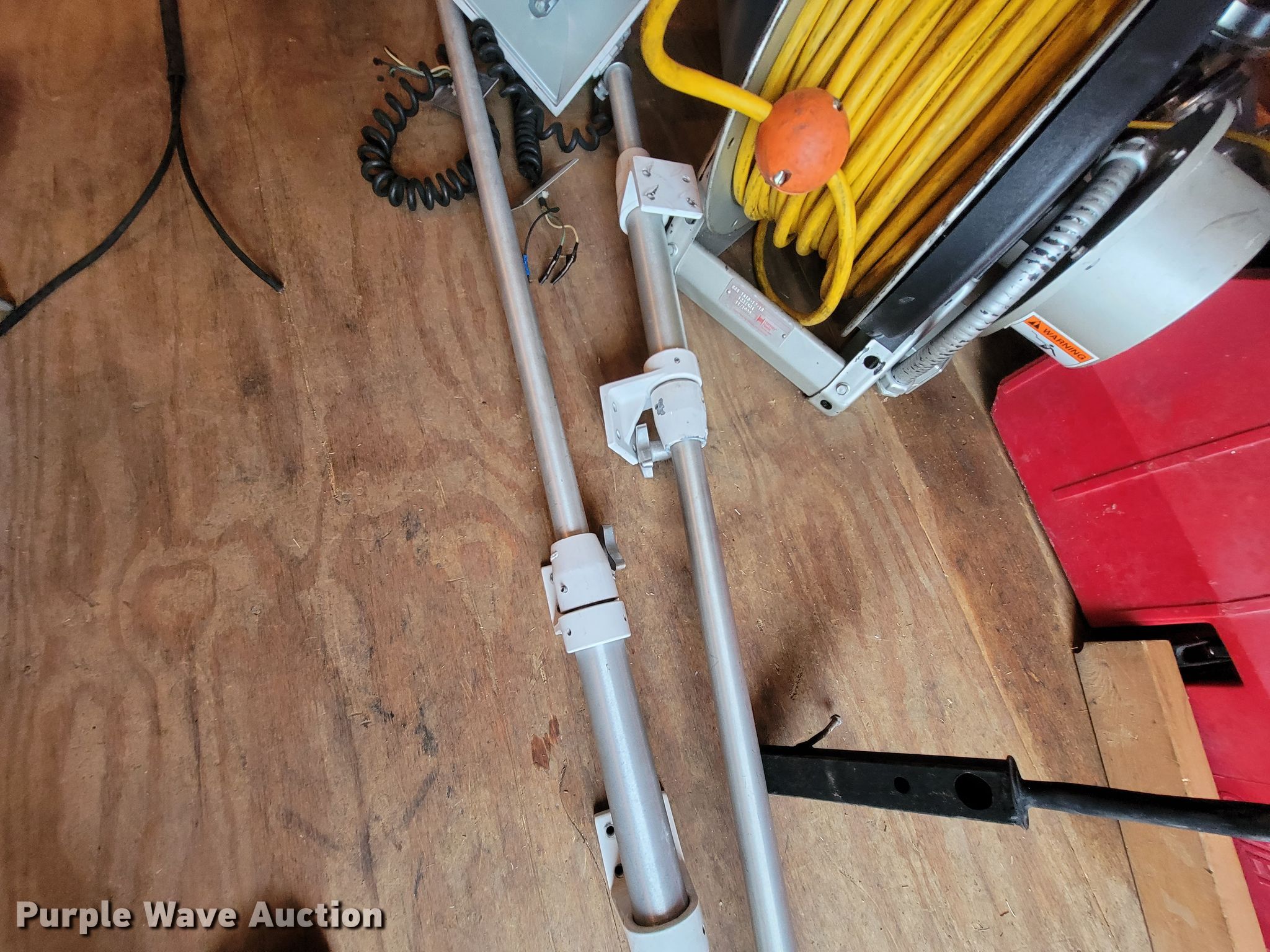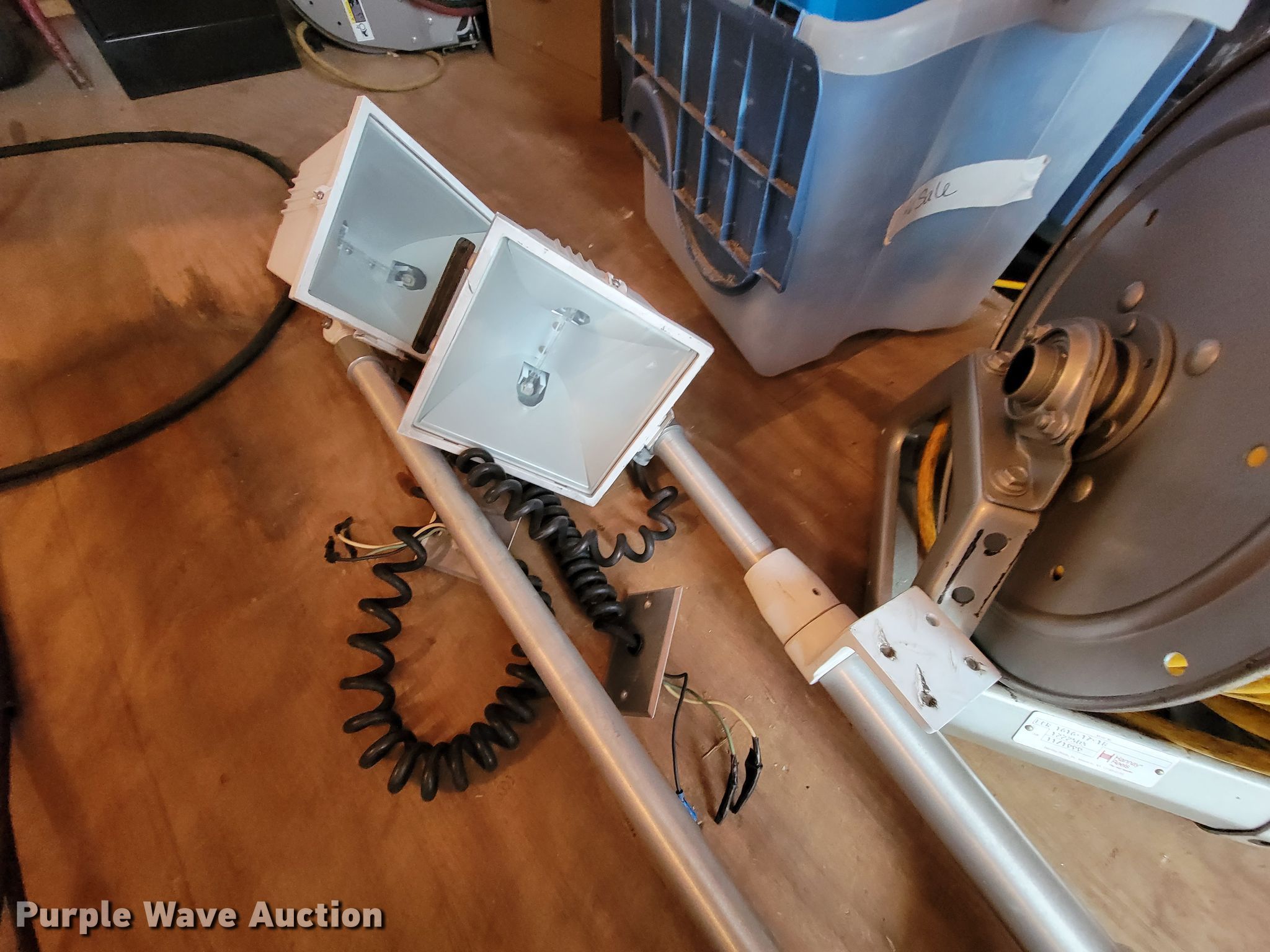 Purple Wave is selling a used Tools in Oklahoma. This item is a 1999 Hanney ECR1616-17-18 electrical cord reel with the following: Hanney P56AN239 electric motor, 12V, 26 amp, Serial AK-J99, (4) 125V outlets, (2) Tele-Lite X-4-5 fluorescent light stands
