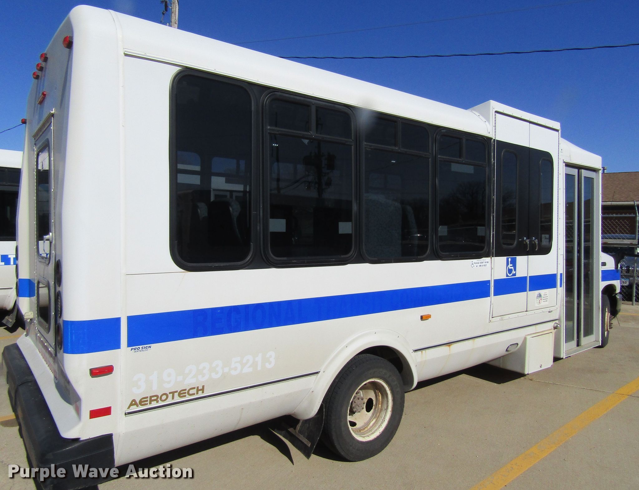 2009 Ford E450 Super Duty shuttle bus. 203,568 miles on odometer. Engine Displacement: 6.8L V10 SOHC 20V, Cylinders: 10, Fuel type: Gas. Transmission Automatic. Chassis Axles: Single, Suspension: Spring, Brakes: Hydraulic, GVWR: 14,500 lbs, Wheelbase: 176". Interior AC, Heat, Heated mirrors, Cruise control, Passengers: 18, Seats, Wheelchair lift. Tires Size: 225/75R16. Iowa title. 1FDFE45S39DA69134. INRCOG. 2424 Falls Ave. Waterloo, IA 50701