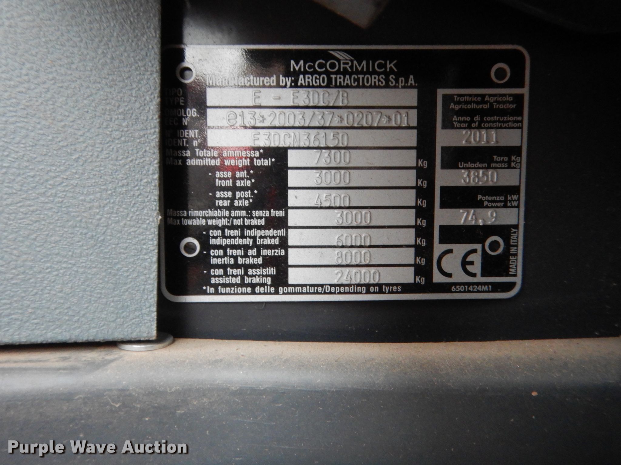 Purple Wave is selling a used Tractor in Oklahoma. This item is a 2011 McCormick T110 Max MFWD tractor with the following: 2,607 hours on meter, Serial: E3DCN36150