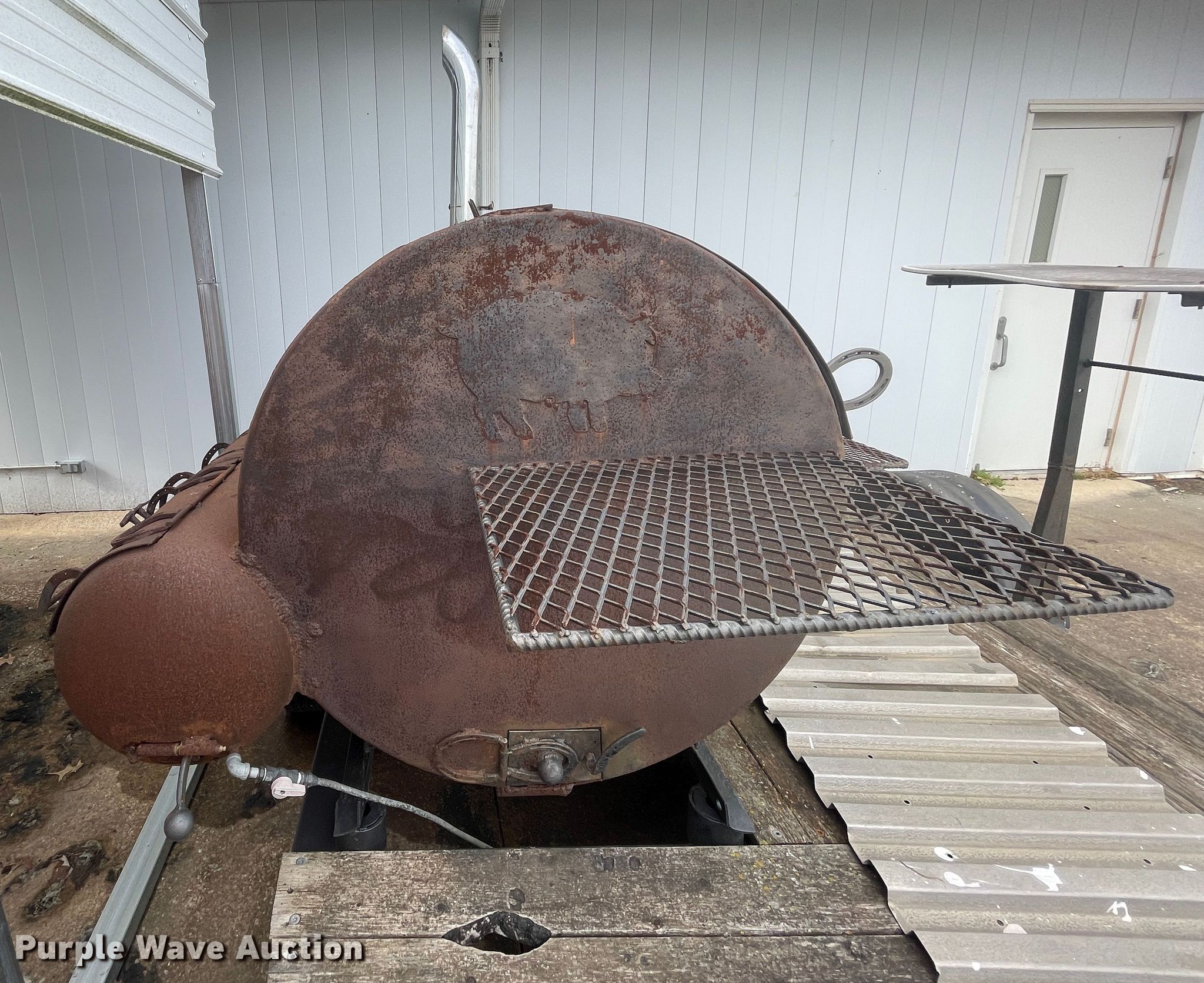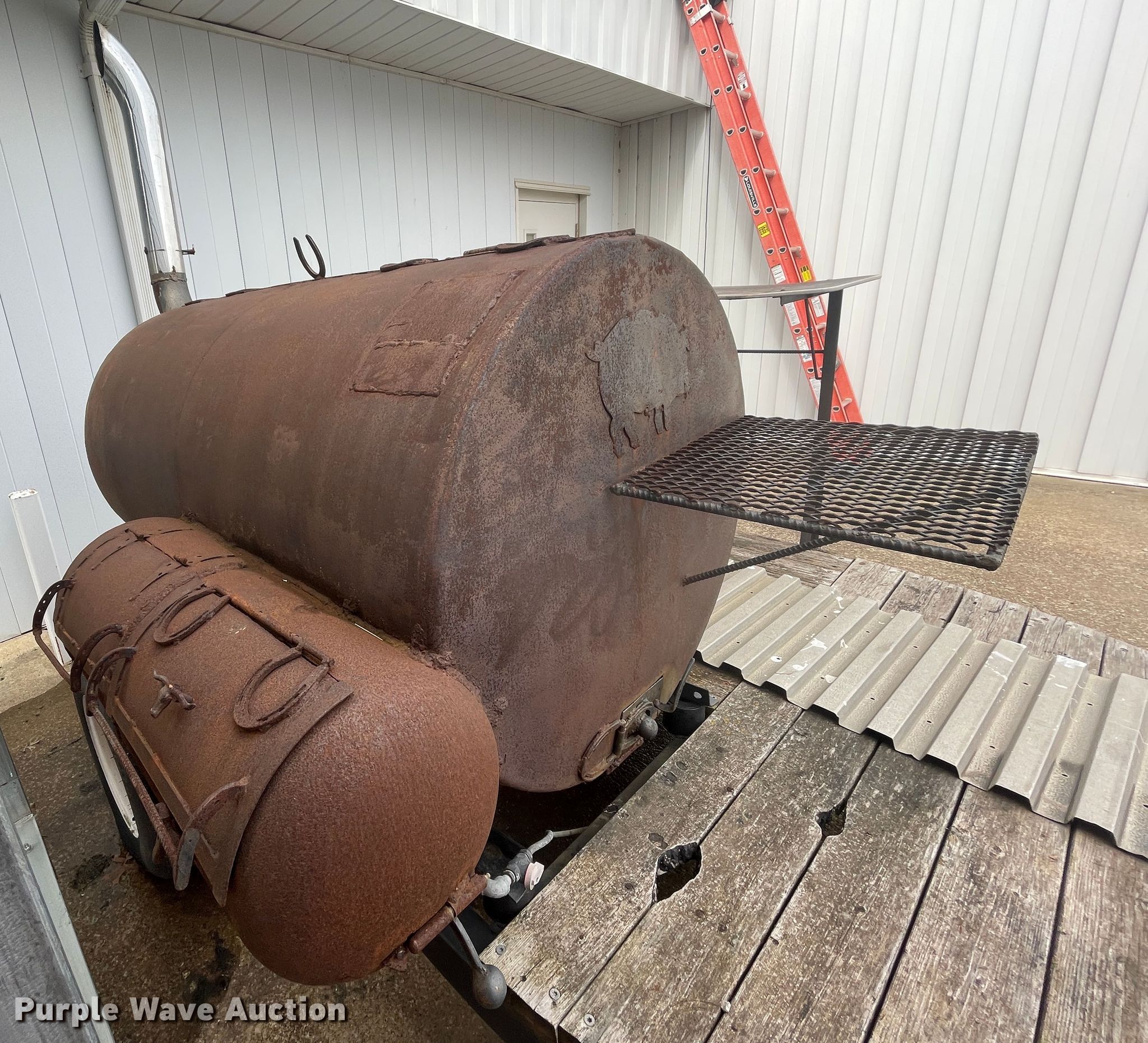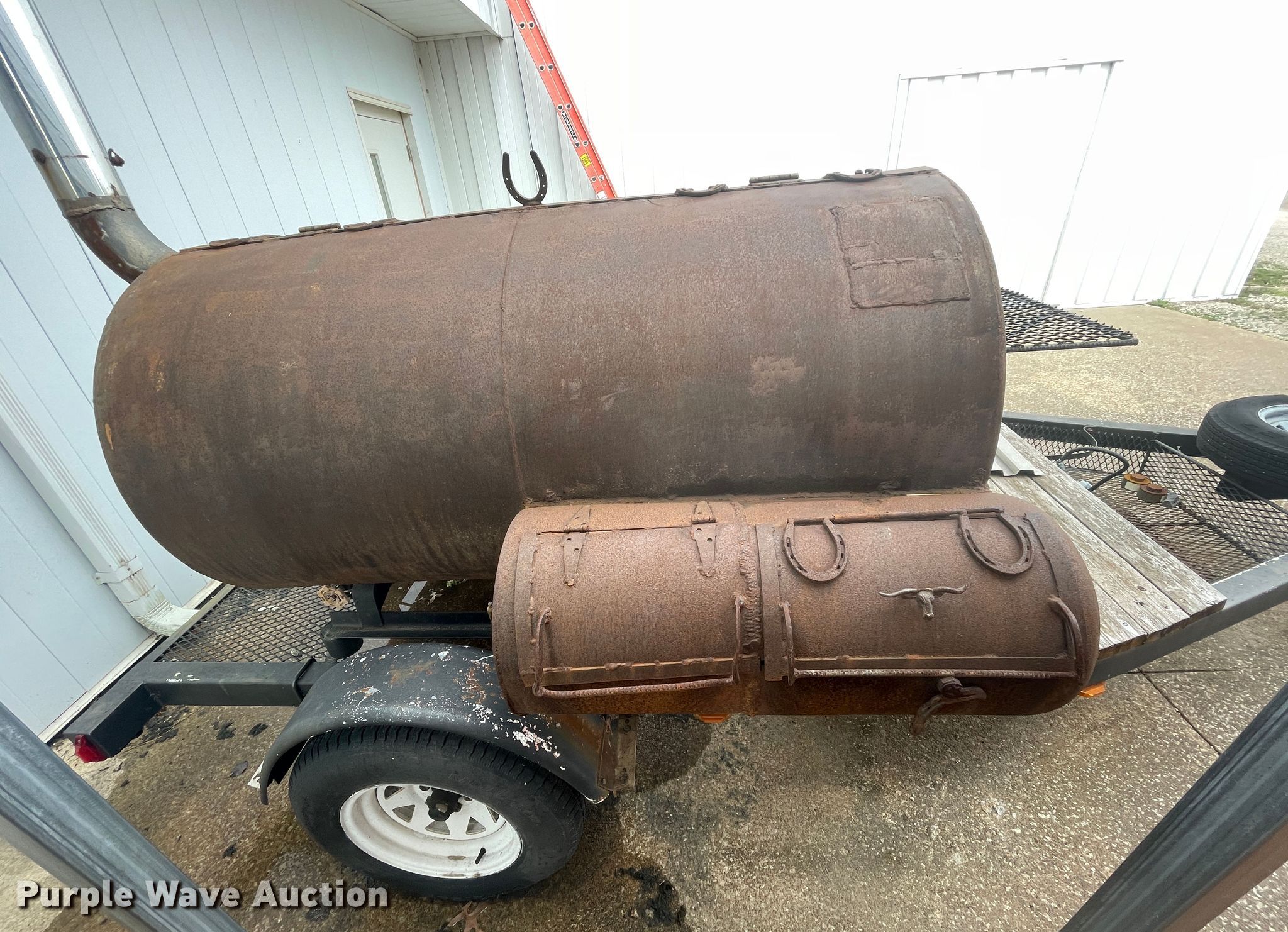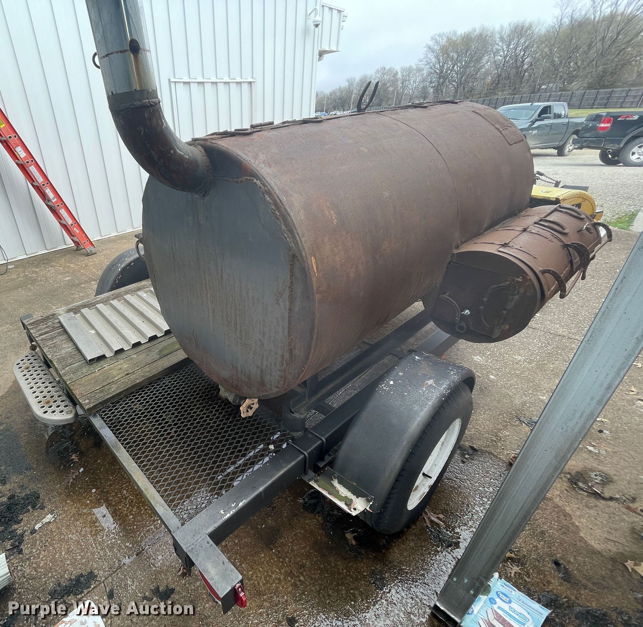 Purple Wave is selling a used Lawn and Garden in Kansas. This item is a Shop built smoker with the following: 5'6" x 3' rack, ST205/75R15 tires, Additional tire