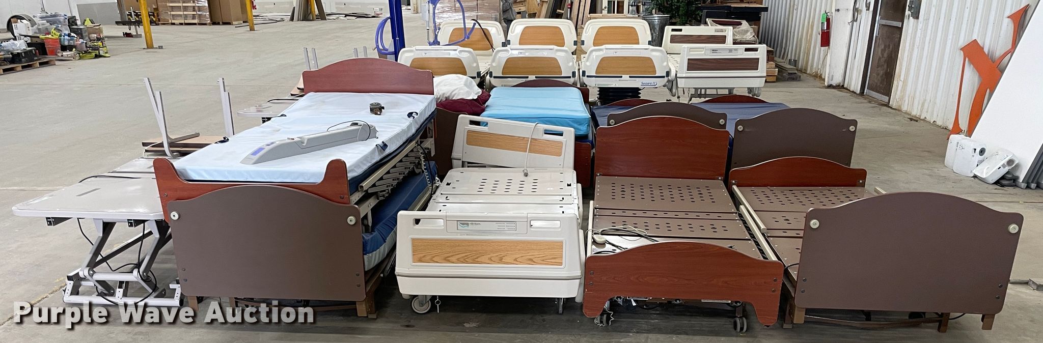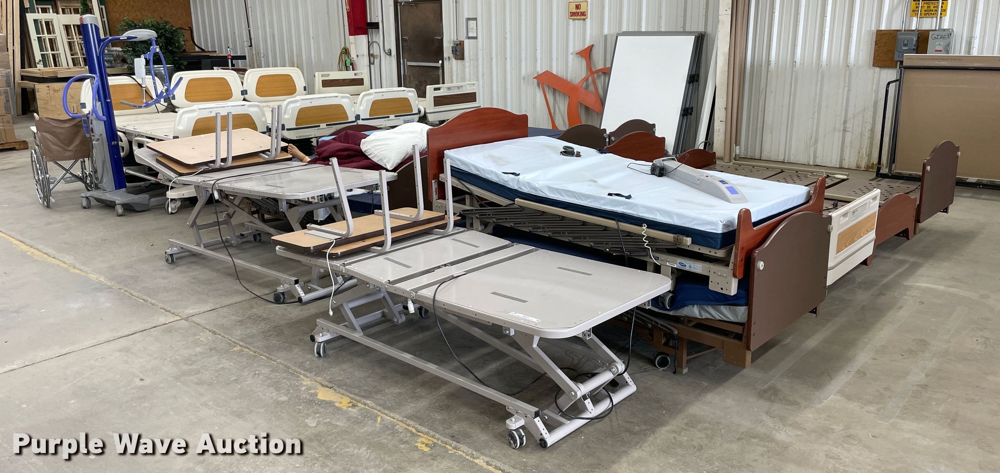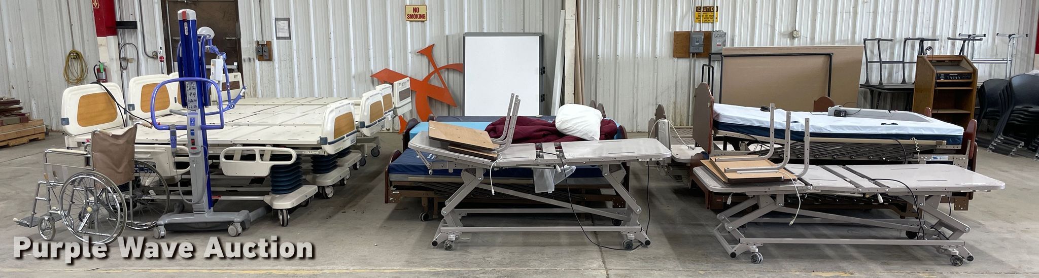 Purple Wave is selling a used Medical Equip. in Kansas. This item is a Medical equipment with the following: (14) hospital beds, Wheelchair, Lift, CPR dummy