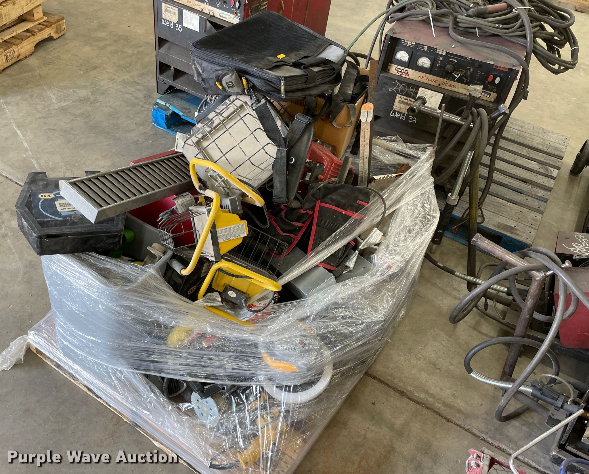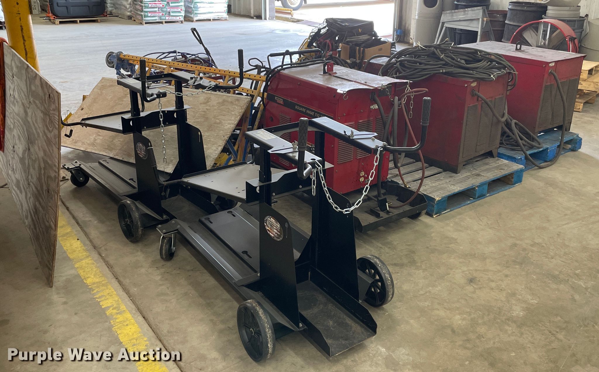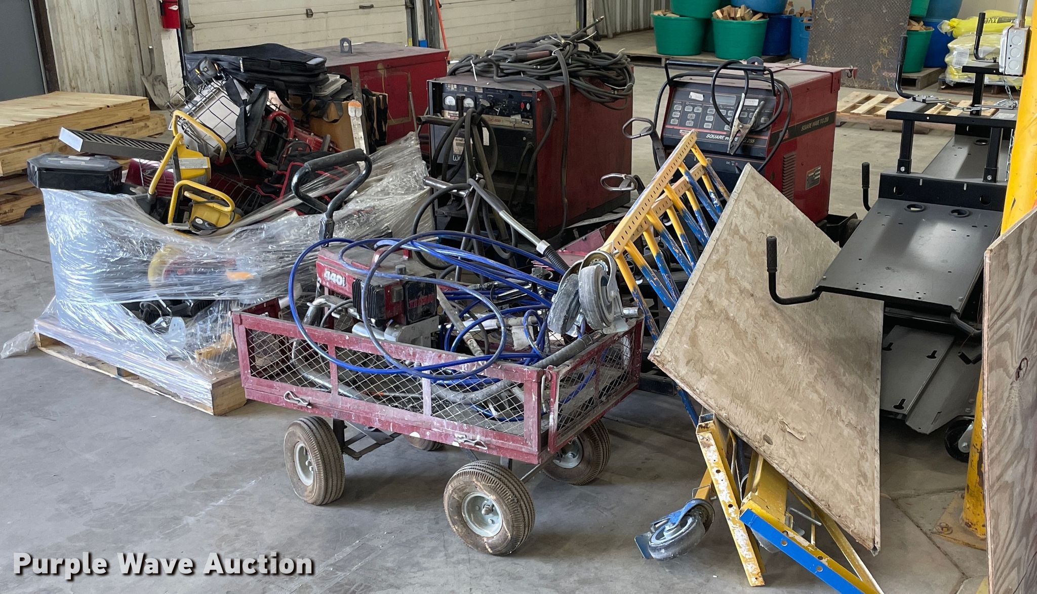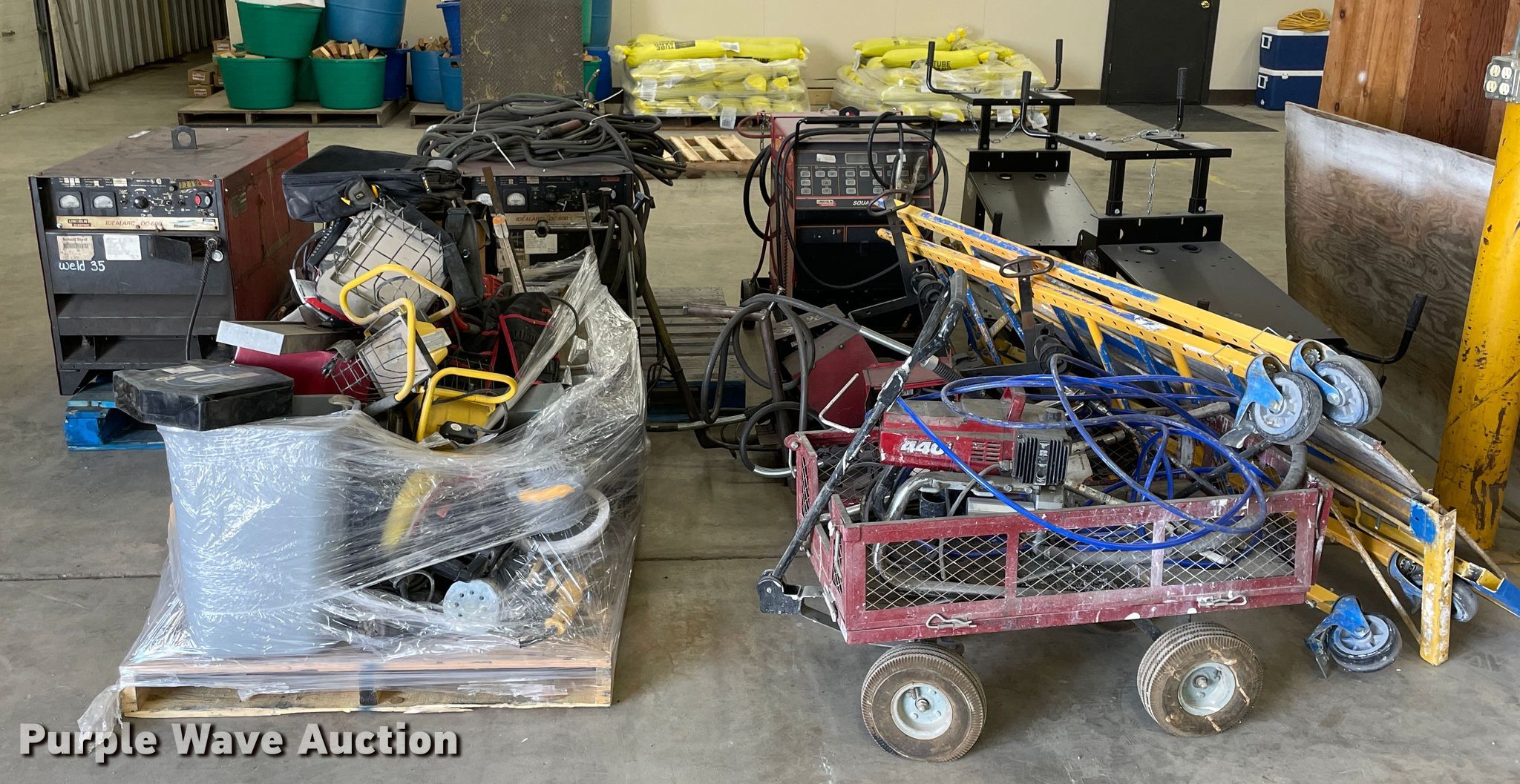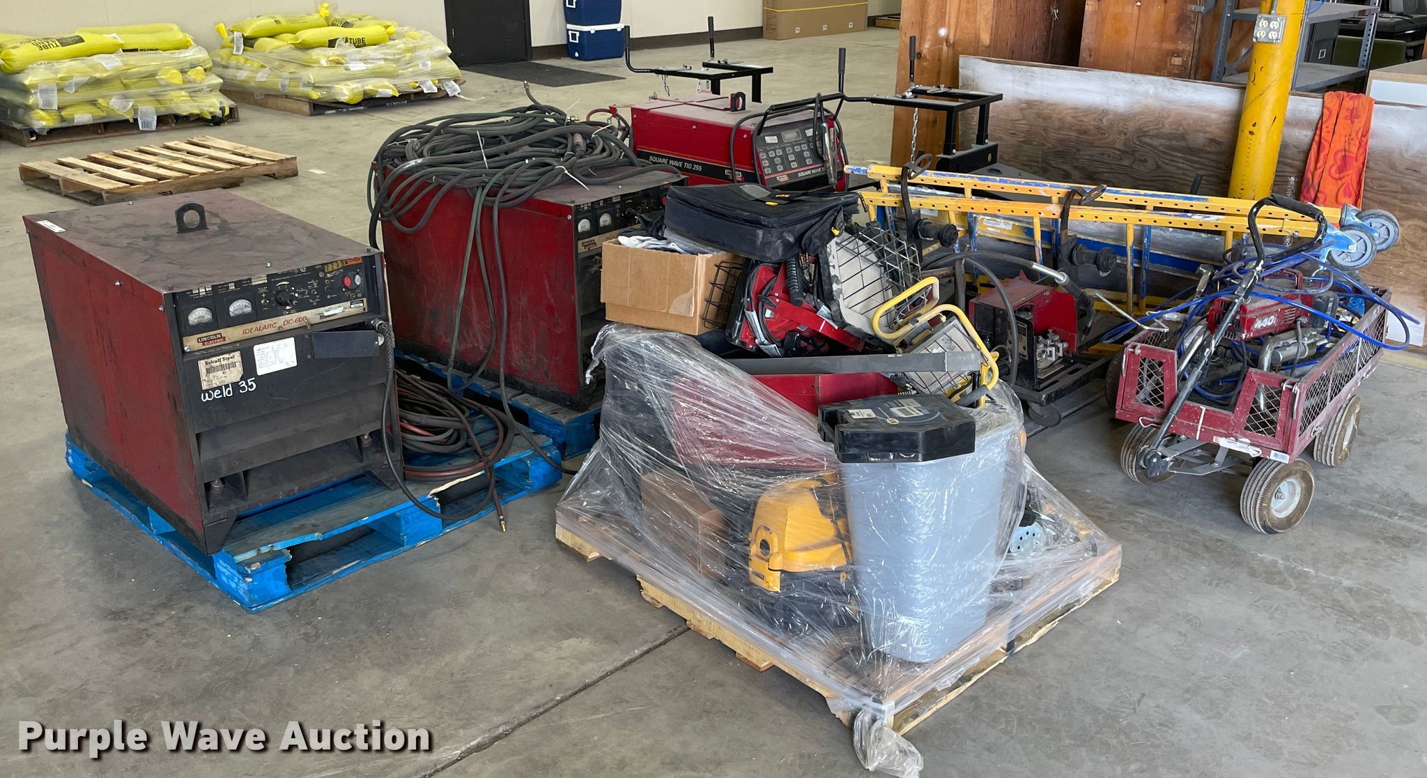 Purple Wave is selling a used Tools in Kansas. This item is a Tools with the following: (2) Lincoln Idealarc DC600 welders, 550 amp, Lincoln Square Wave TIG 225 welder, 368 amp, Non-operational unit, (2) welder racks, Scaffolding, Assorted tools
