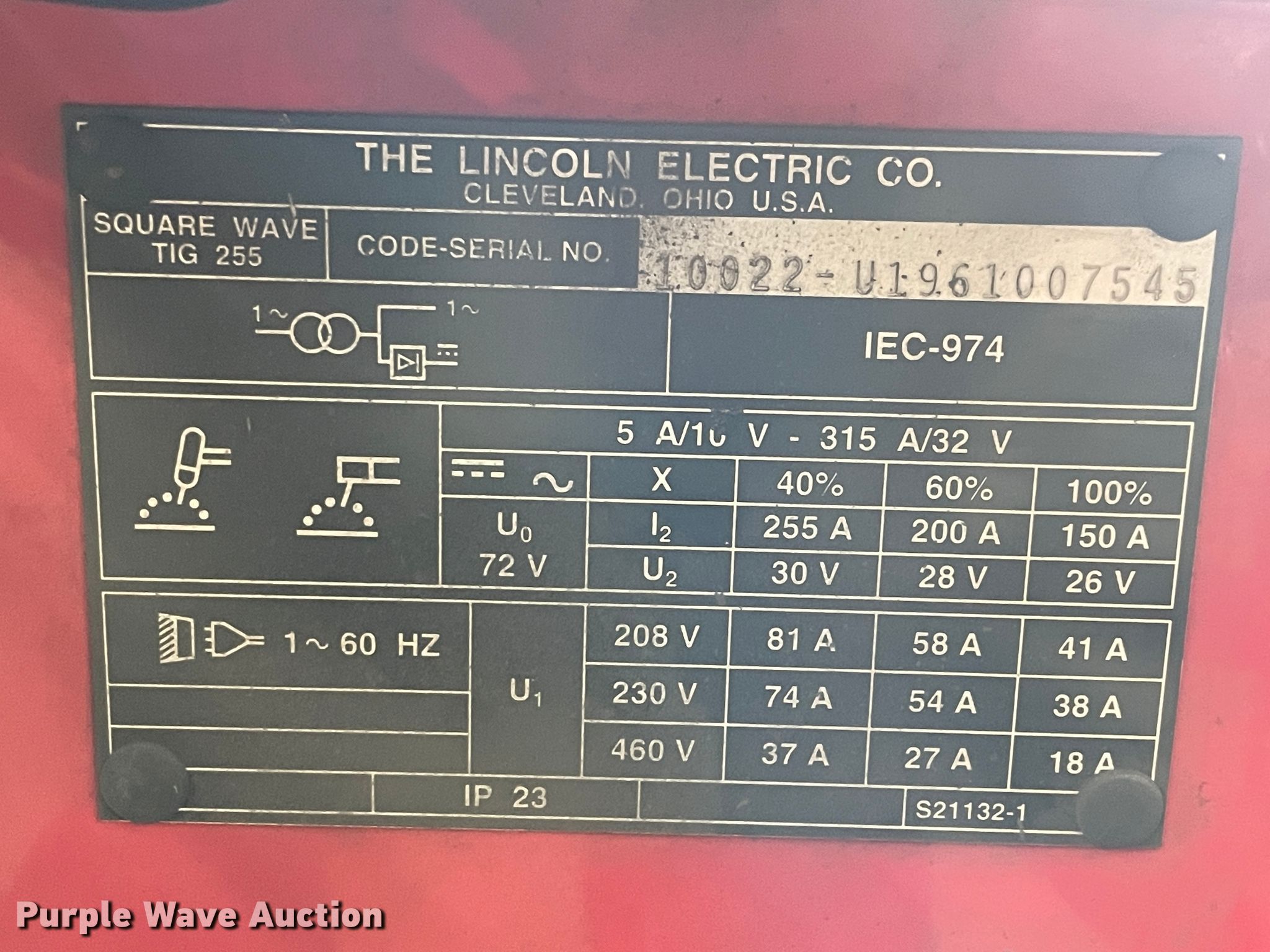 - Lincoln Square Wave TIG 225 welder