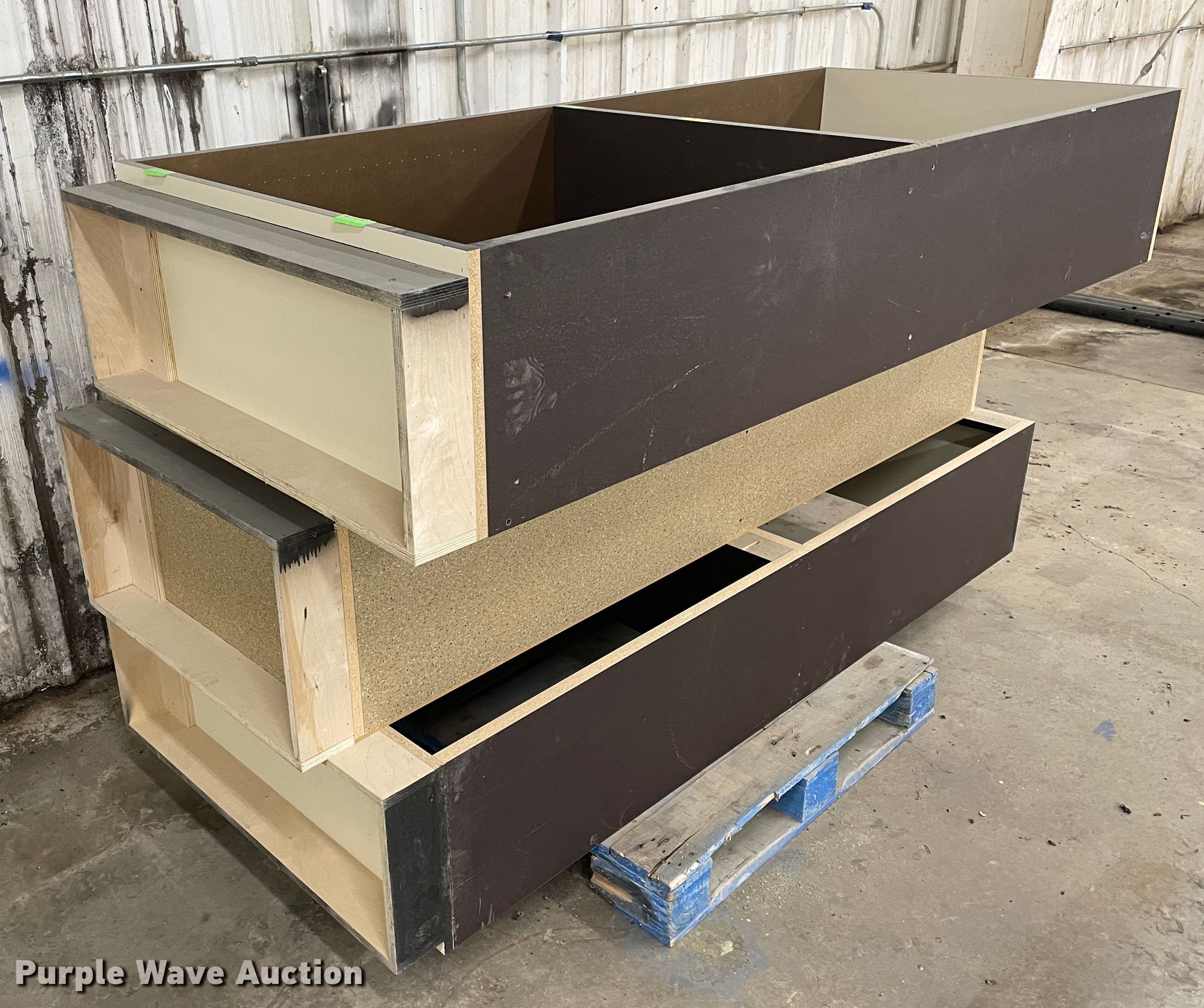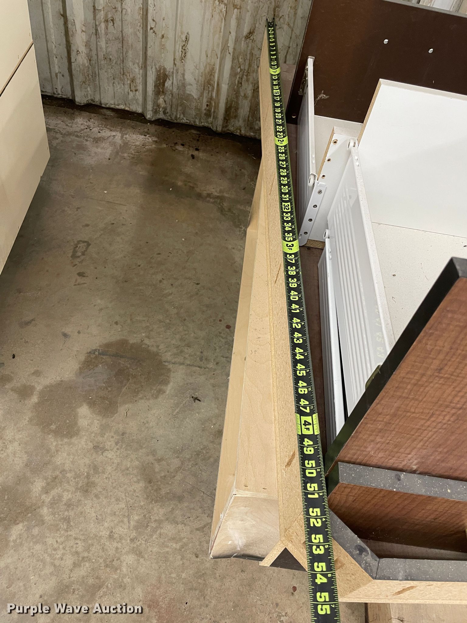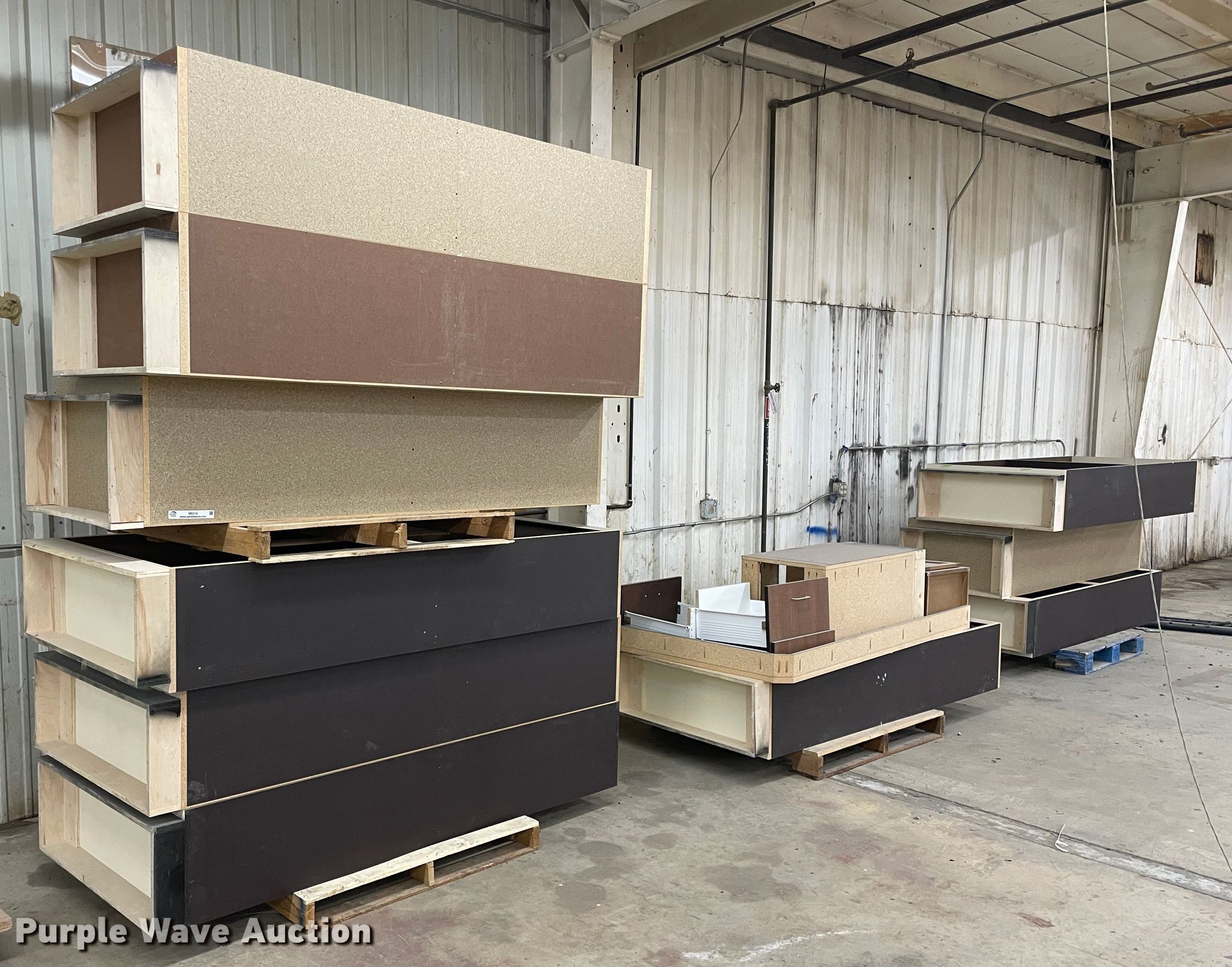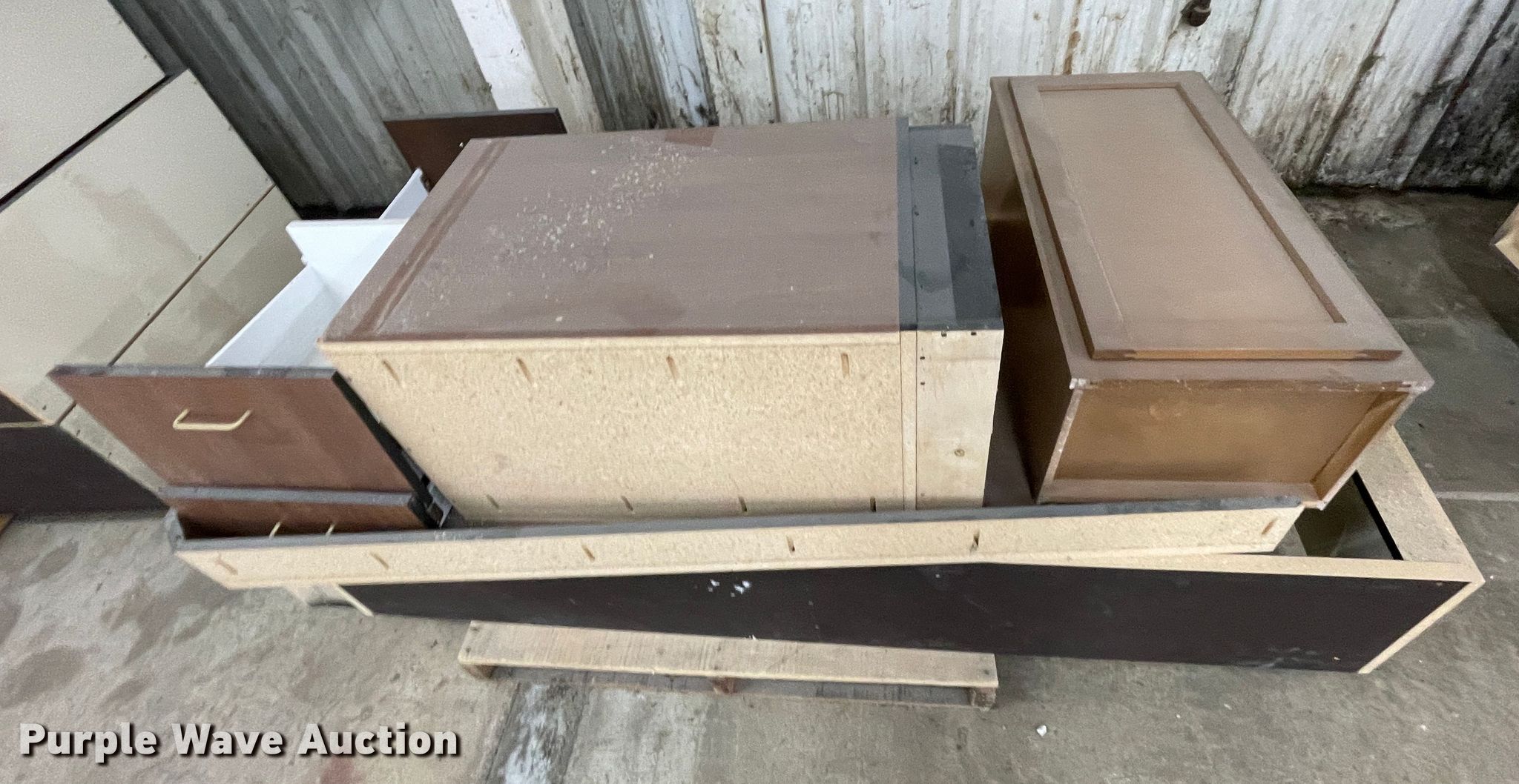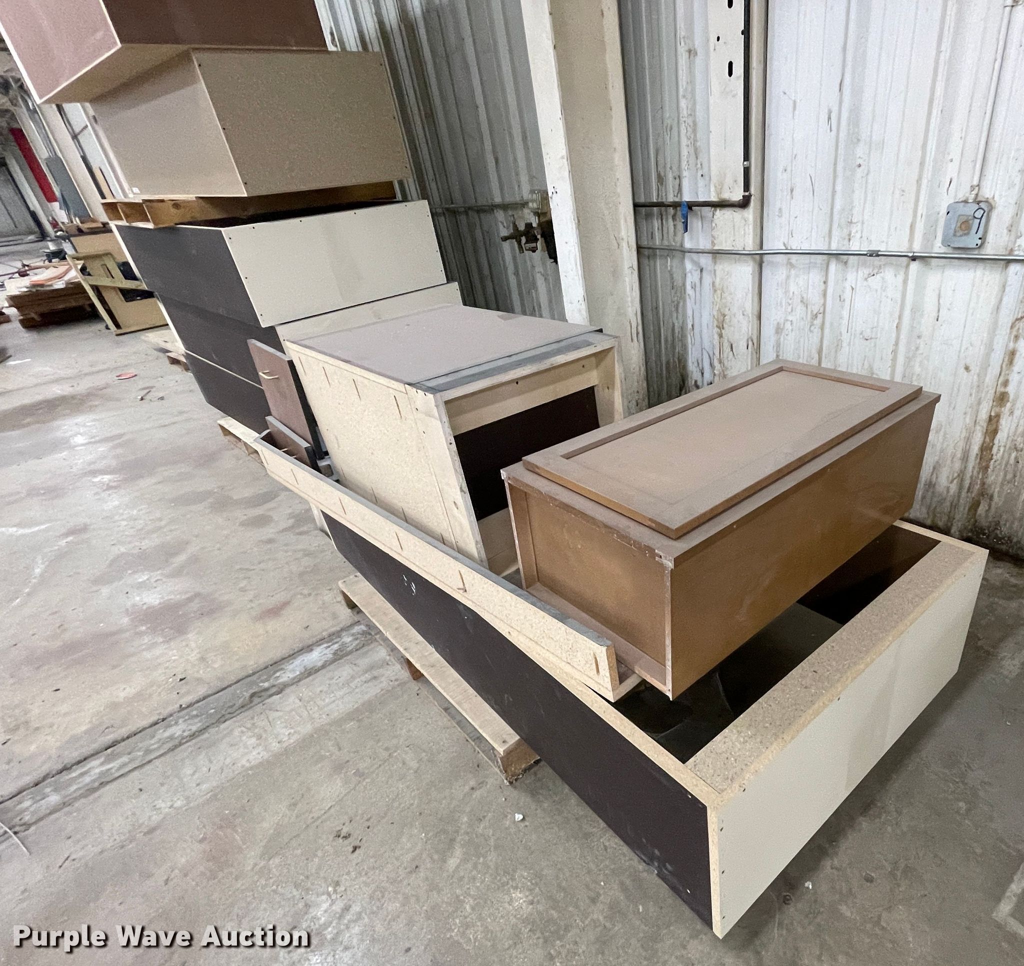 Purple Wave is selling a used Furniture in Kansas. This item is a Furniture with the following: Desk, 6'L x 3'W, (10) cabinets, 3'W x 14"D x 7'H, Shelves