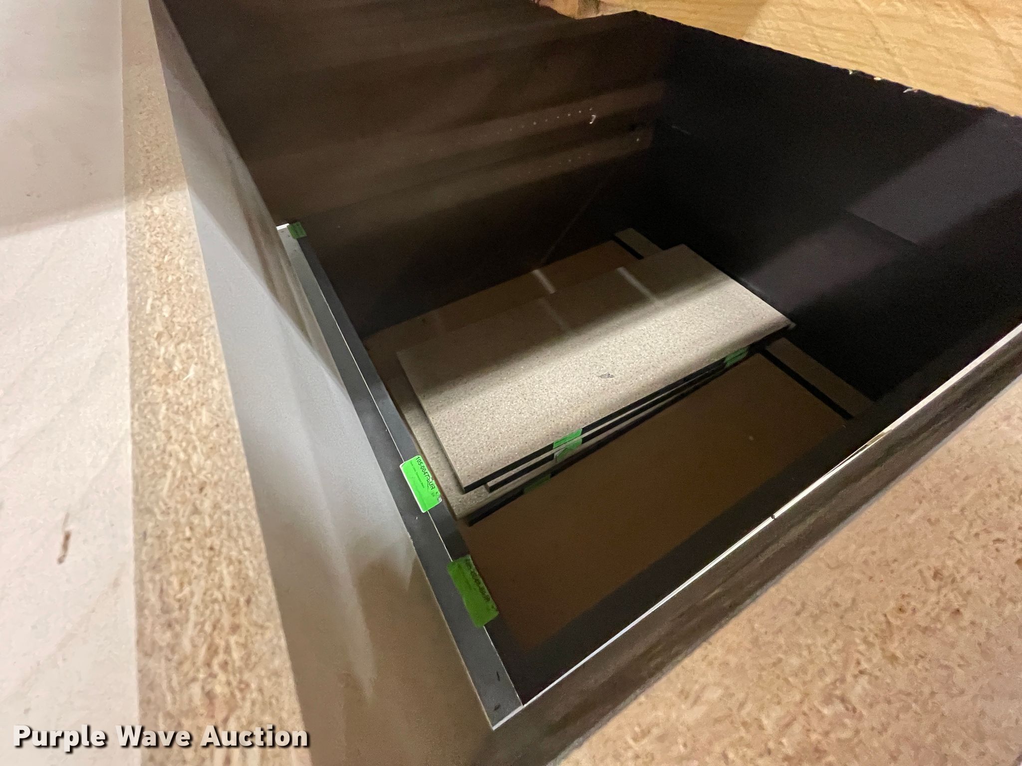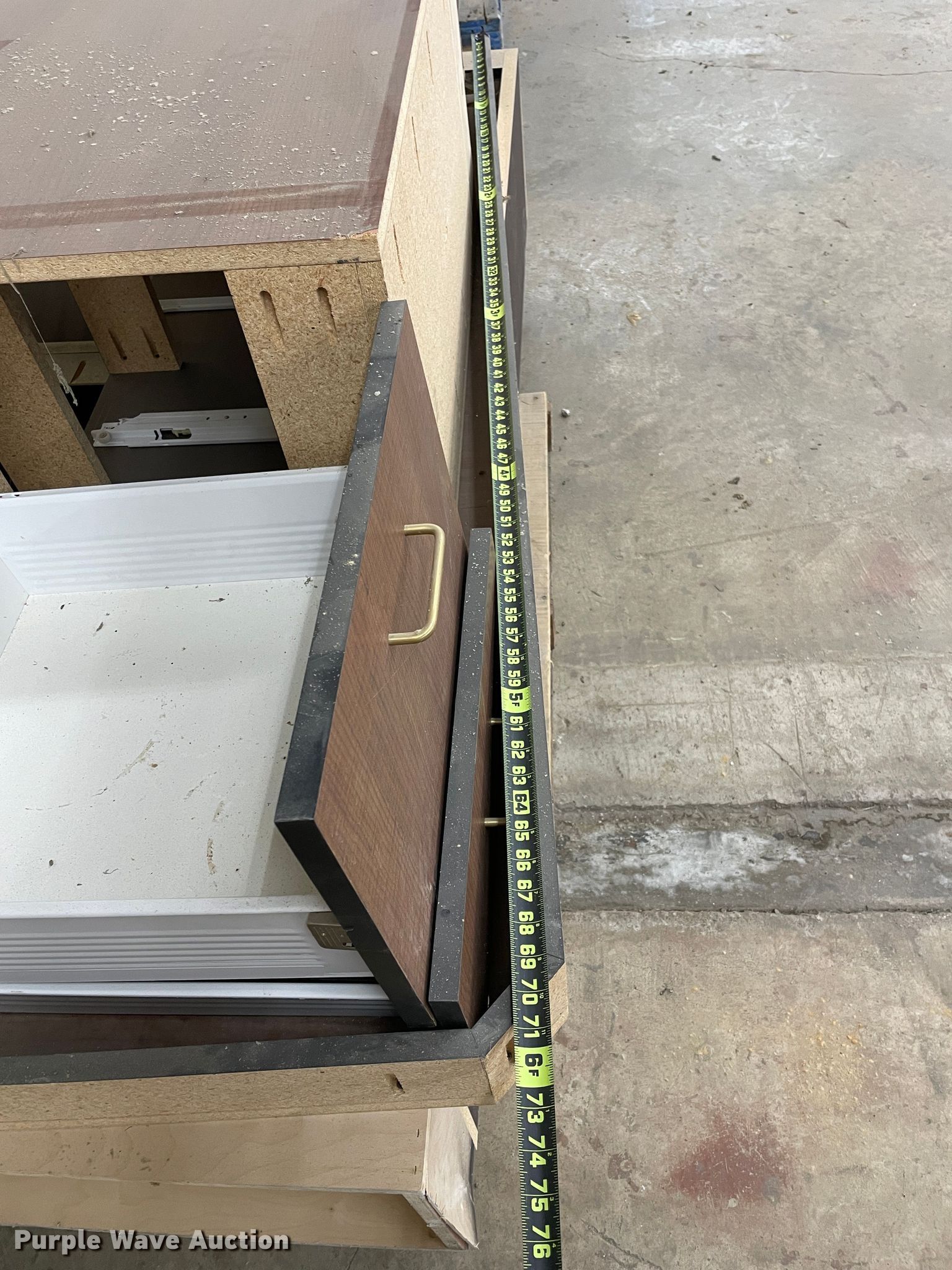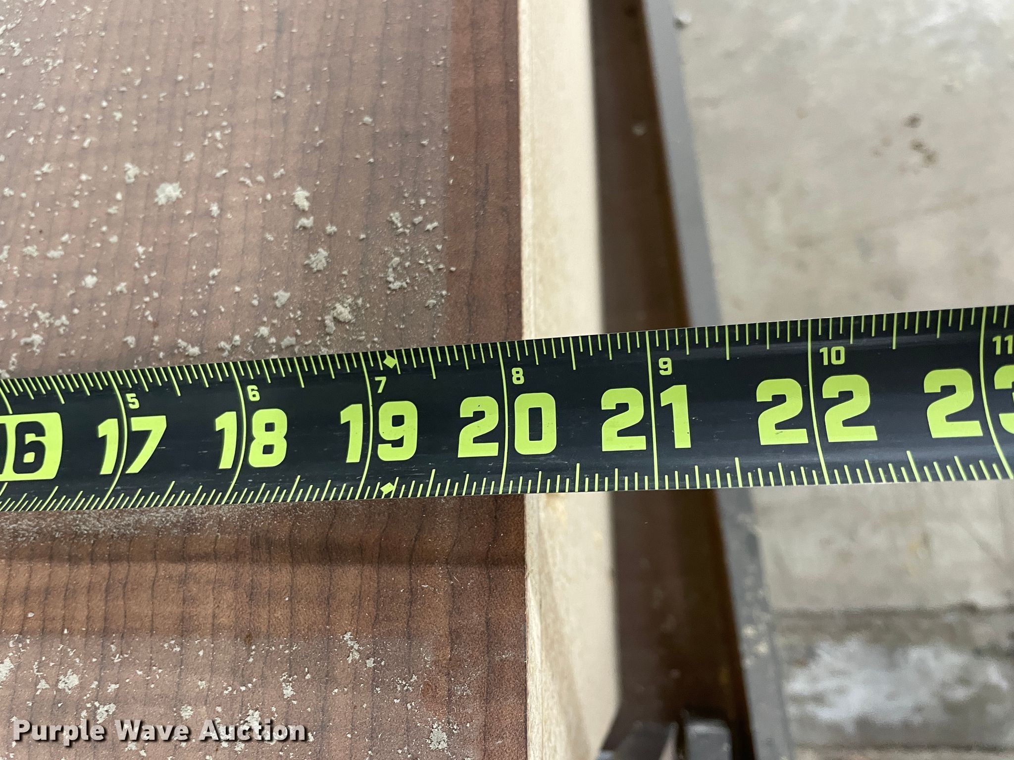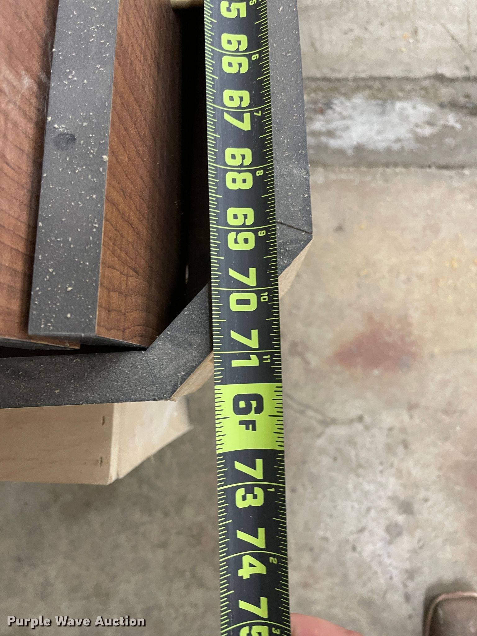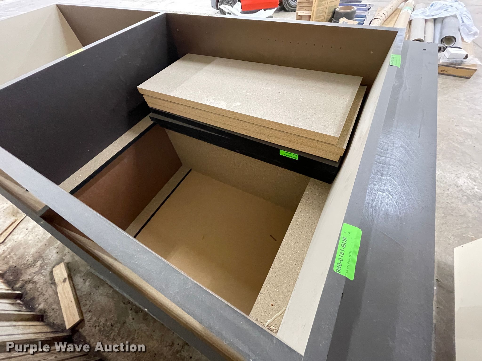 Purple Wave is selling a used Furniture in Kansas. This item is a Furniture with the following: Desk, 6'L x 3'W, (10) cabinets, 3'W x 14"D x 7'H, Shelves