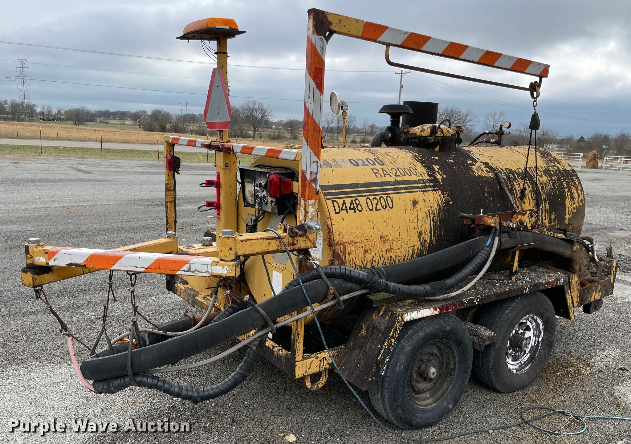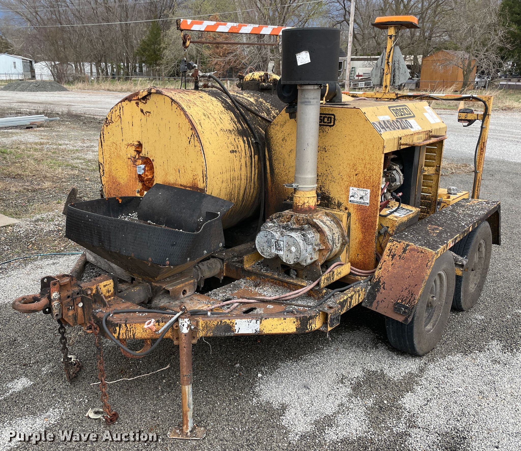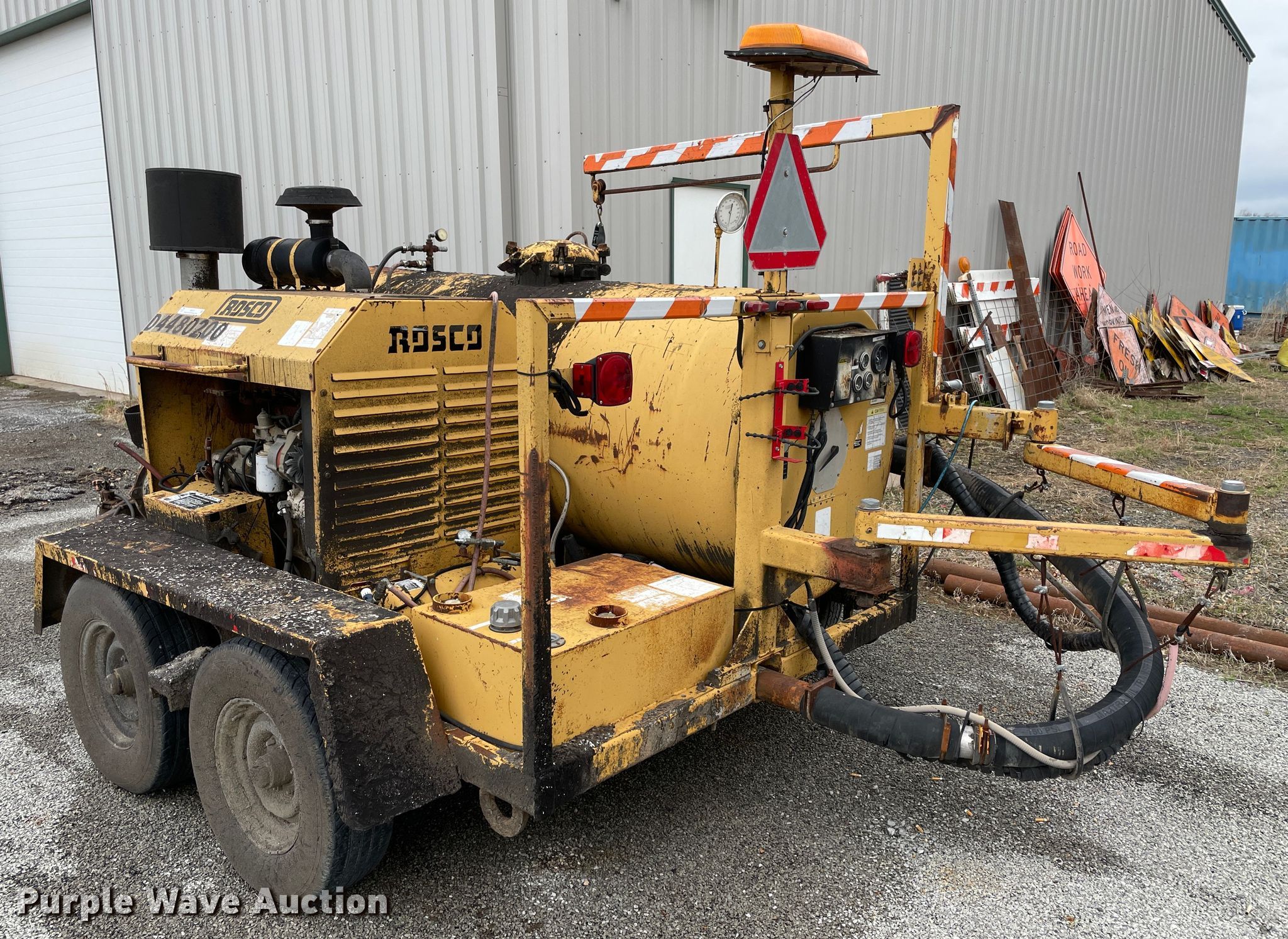 Purple Wave is selling a used Pot Hole Patcher in Oklahoma. This item is a Rosco RA2000 pot hole patcher with the following: 3,547 hours on meter, Four cylinder diesel engine, Top fill, Single leg landing gear, Electric brakes, Tandem axle, ST225/75R15 tires, Unknown operating condition, Unit # D4480200