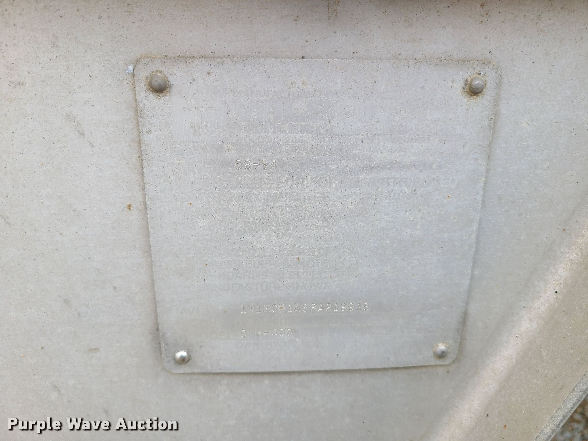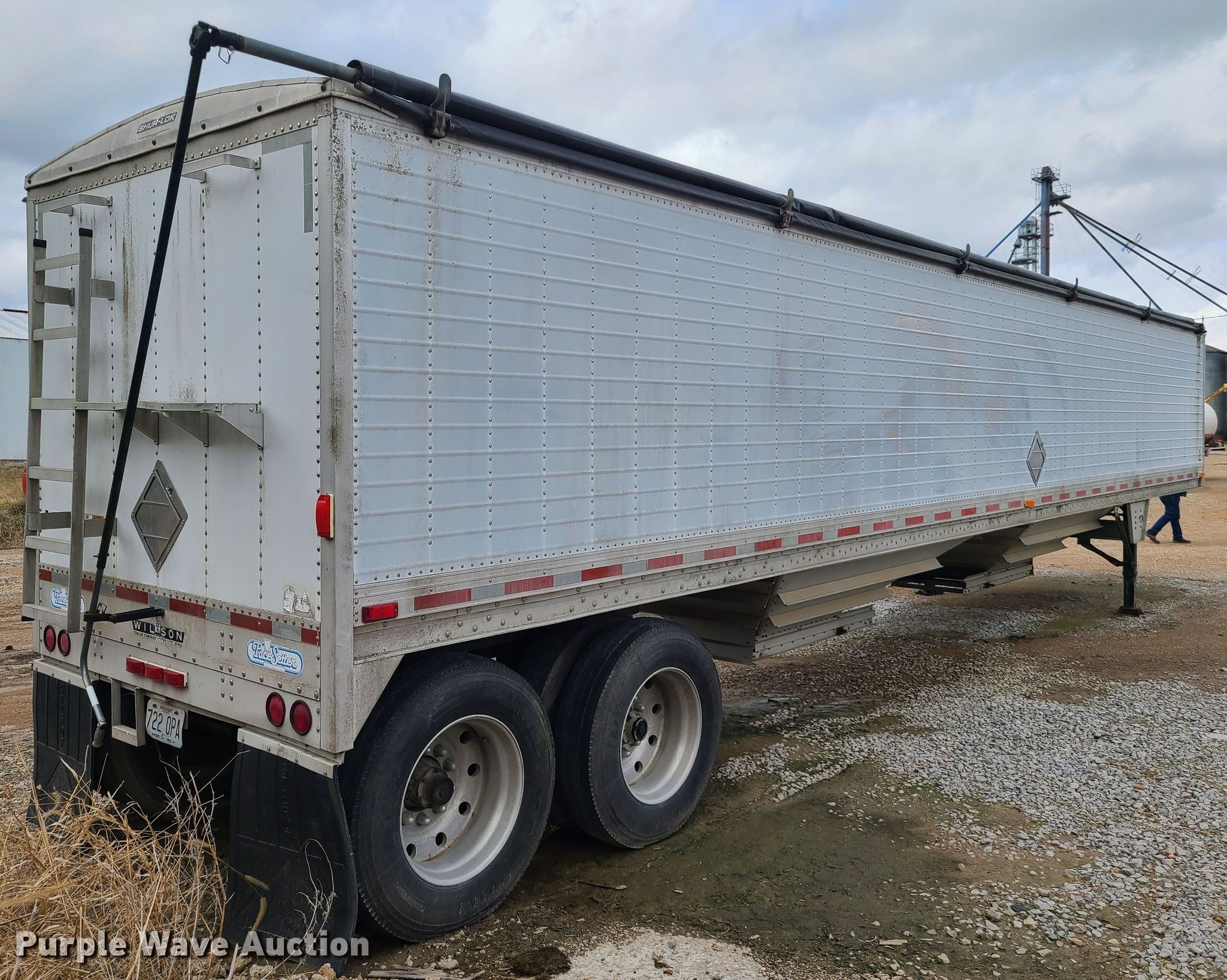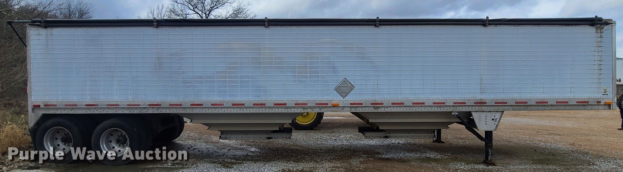 Purple Wave is selling a used Grain or Commodity Trailer in Missouri. This item is a Wilson DWH-400 grain trailer with the following: 42'L x 96"W overall, 68" side height, Hoppers: Double, Trap gates: Manual, Roll tarp, Dual leg landing gear, Air suspension, Air brakes, Tandem axles, 11R24.5 tires, GVWR 65,000 lbs