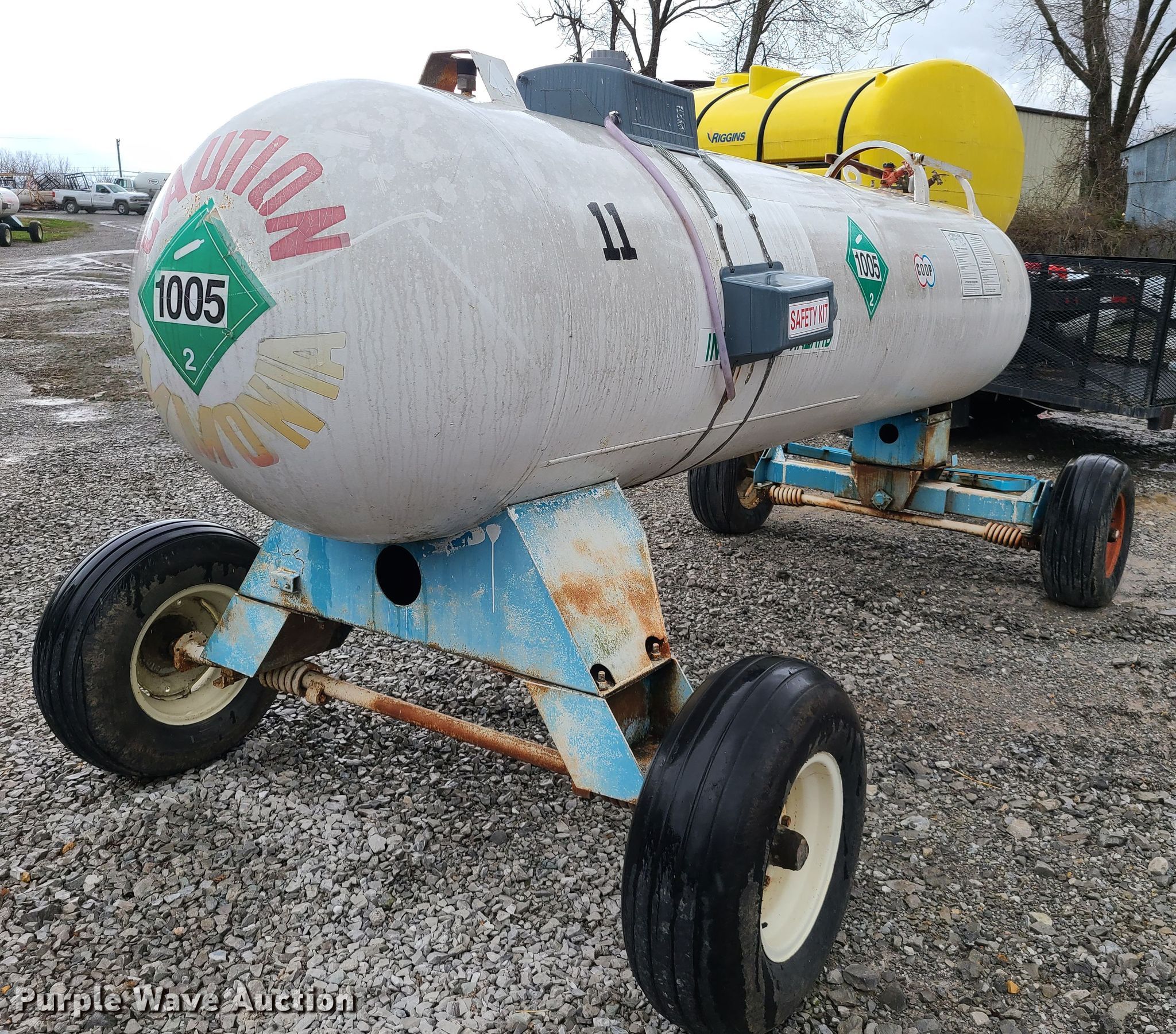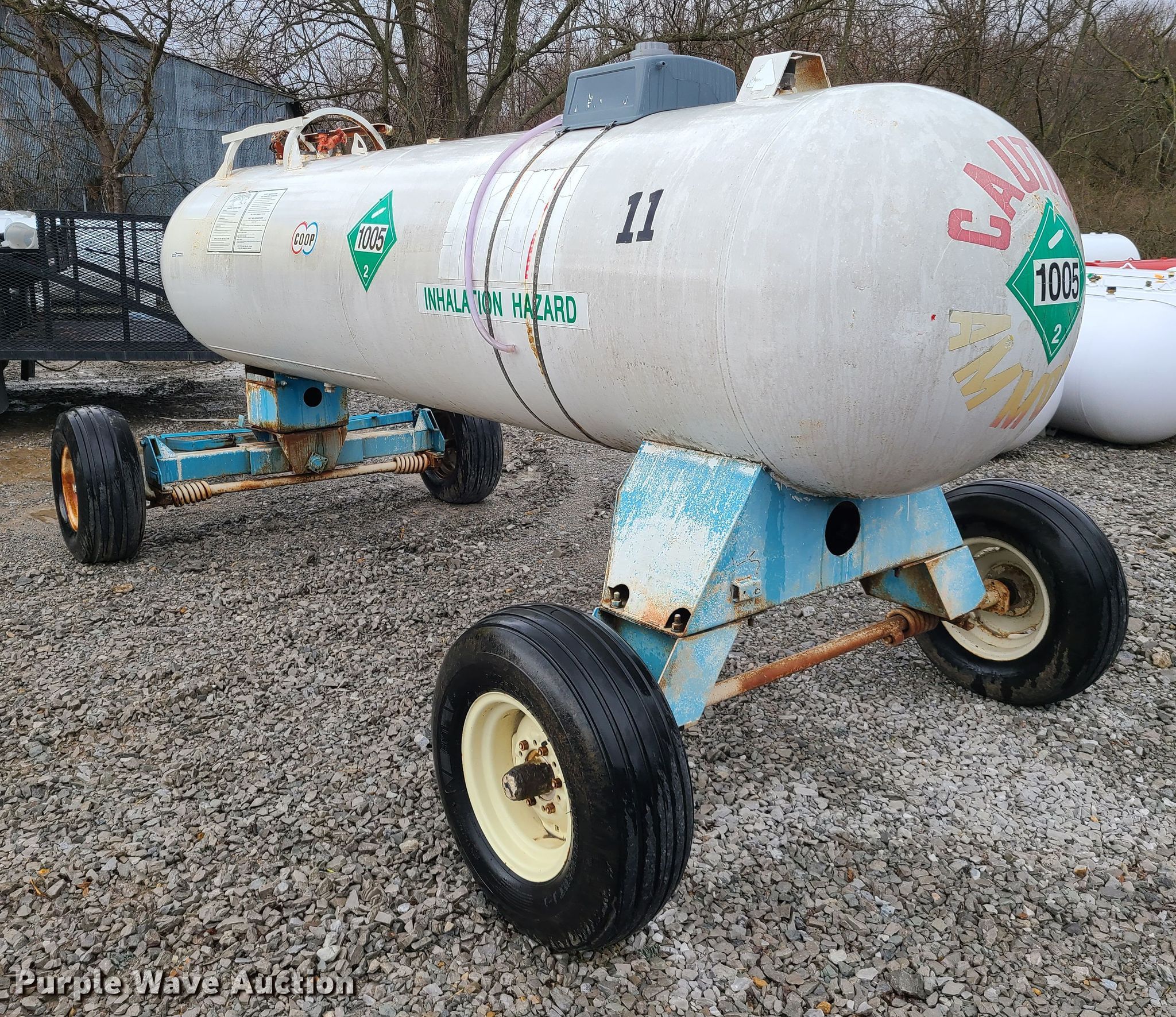 Purple Wave is selling a used Applicator Attach. in Missouri. This item is a NH3 tank with the following: 1,000 gallon capacity, 11-15 tires
