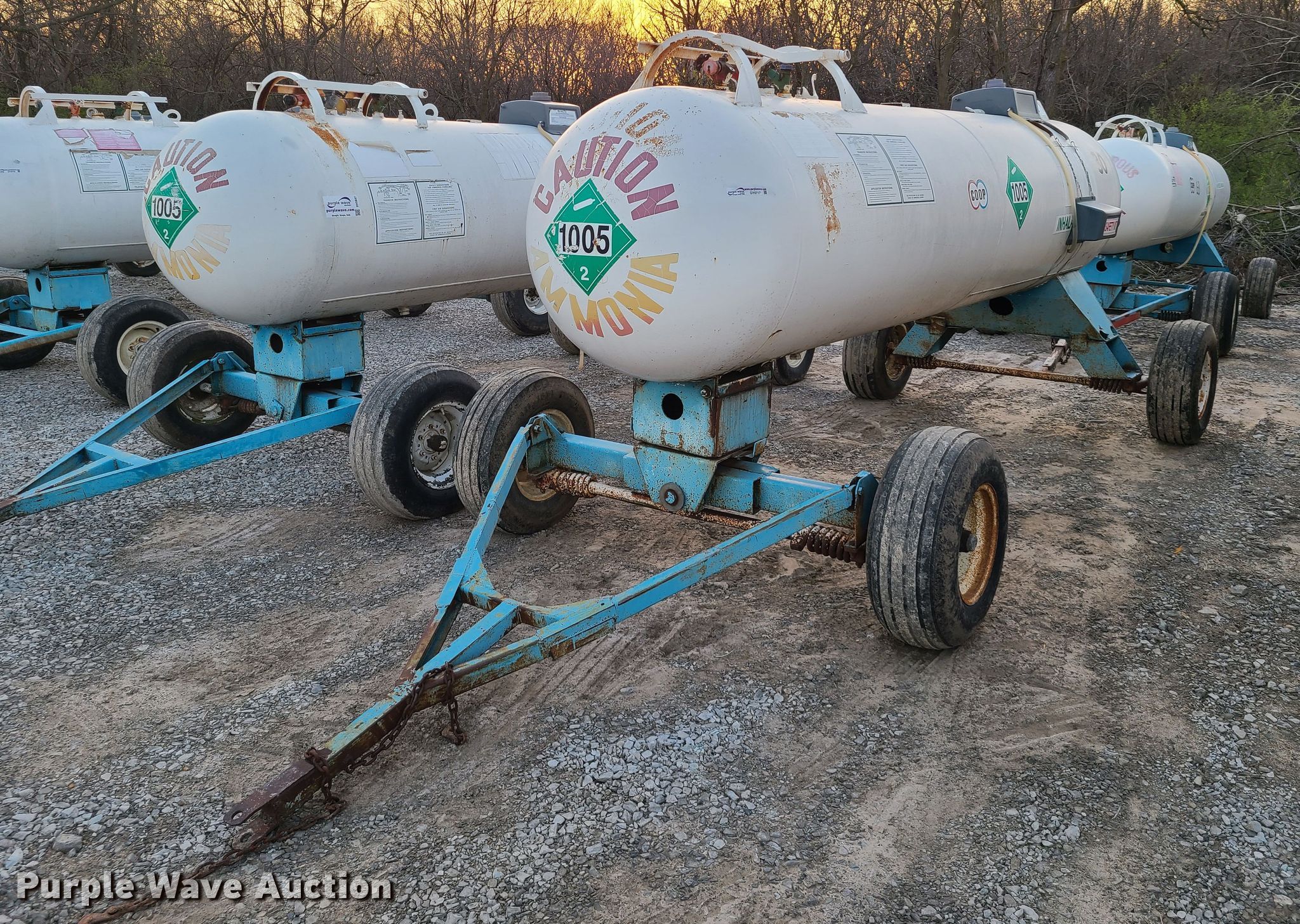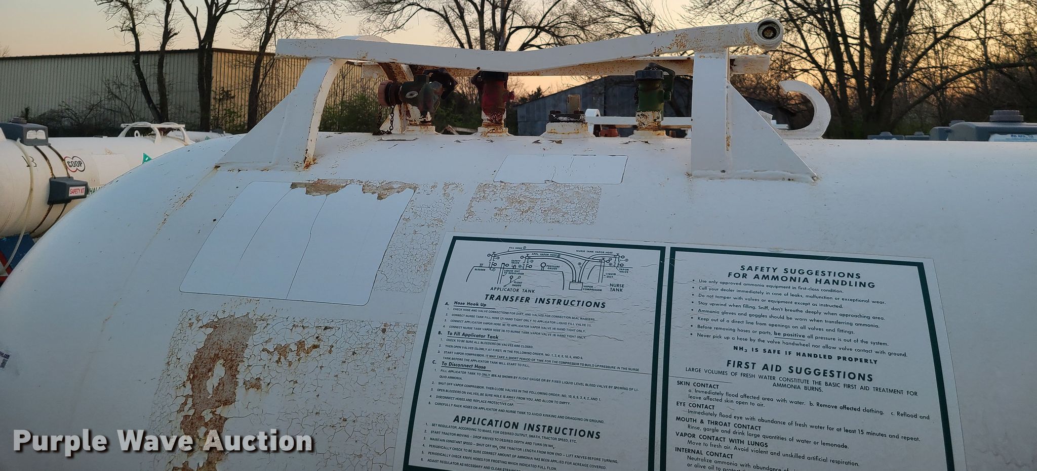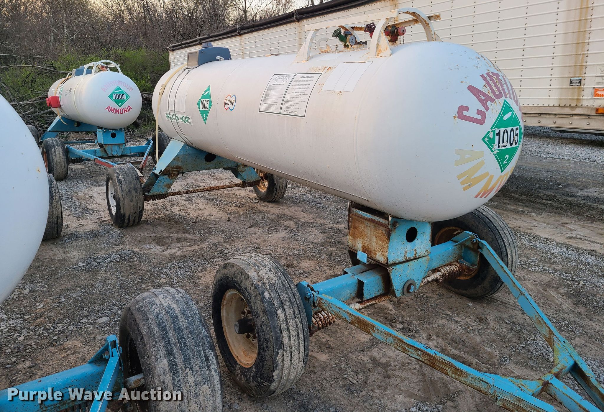 Purple Wave is selling a used Applicator Attach. in Missouri. This item is a NH3 tank with the following: 1,000 gallon capacity, 11-15 tires, Serial 1009710
