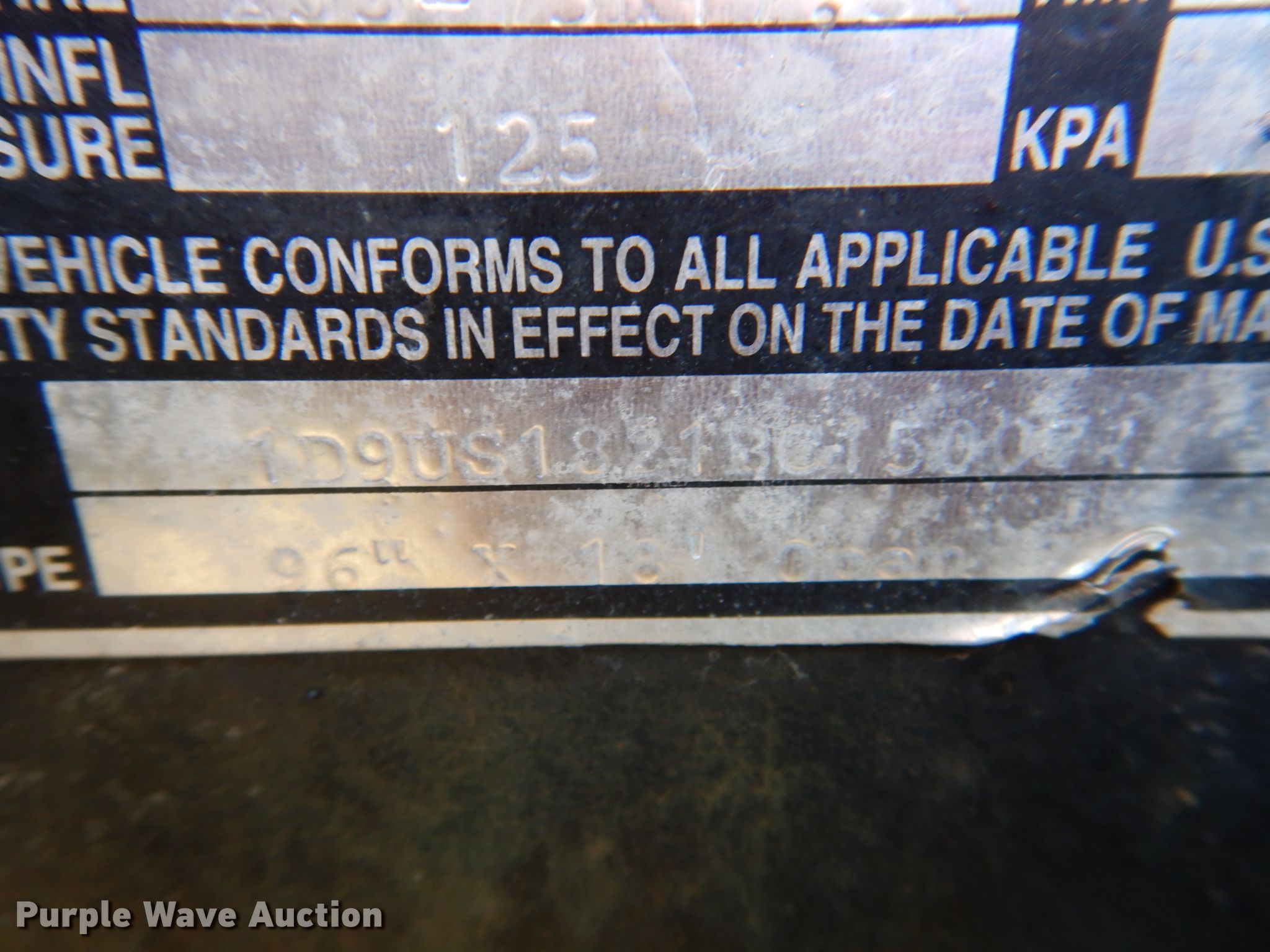2011 D&K trailer. 21'5"L x 96"W overall, Dual leg landing gear, Spring suspension, Electric brakes, Tandem axle, 235/80R16 tires, Right leaf springs damaged. South Dakota title. 1D9US1821BC150071. Valley Ag Supply. 509 Washington St. Gayville, SD 57031