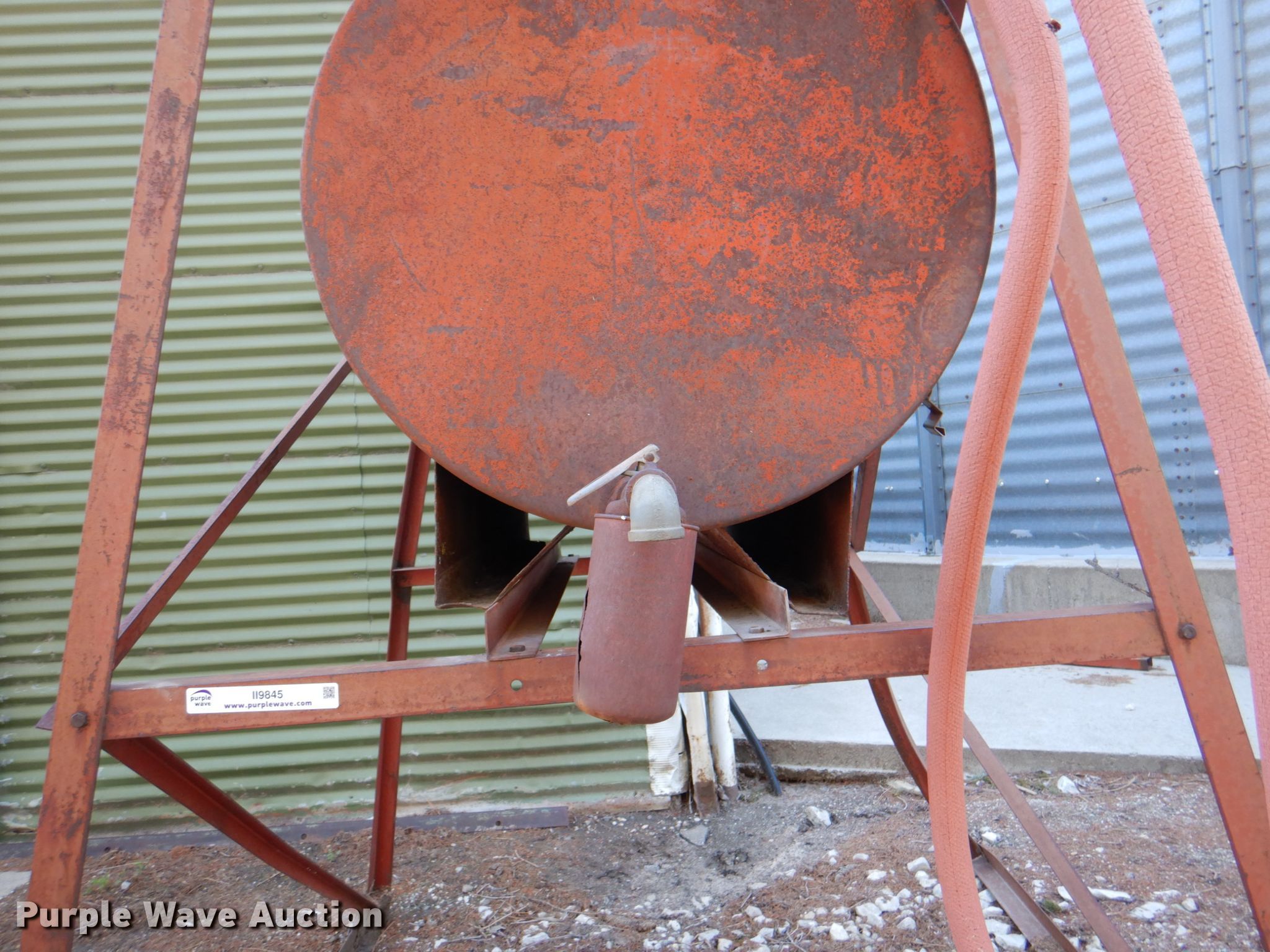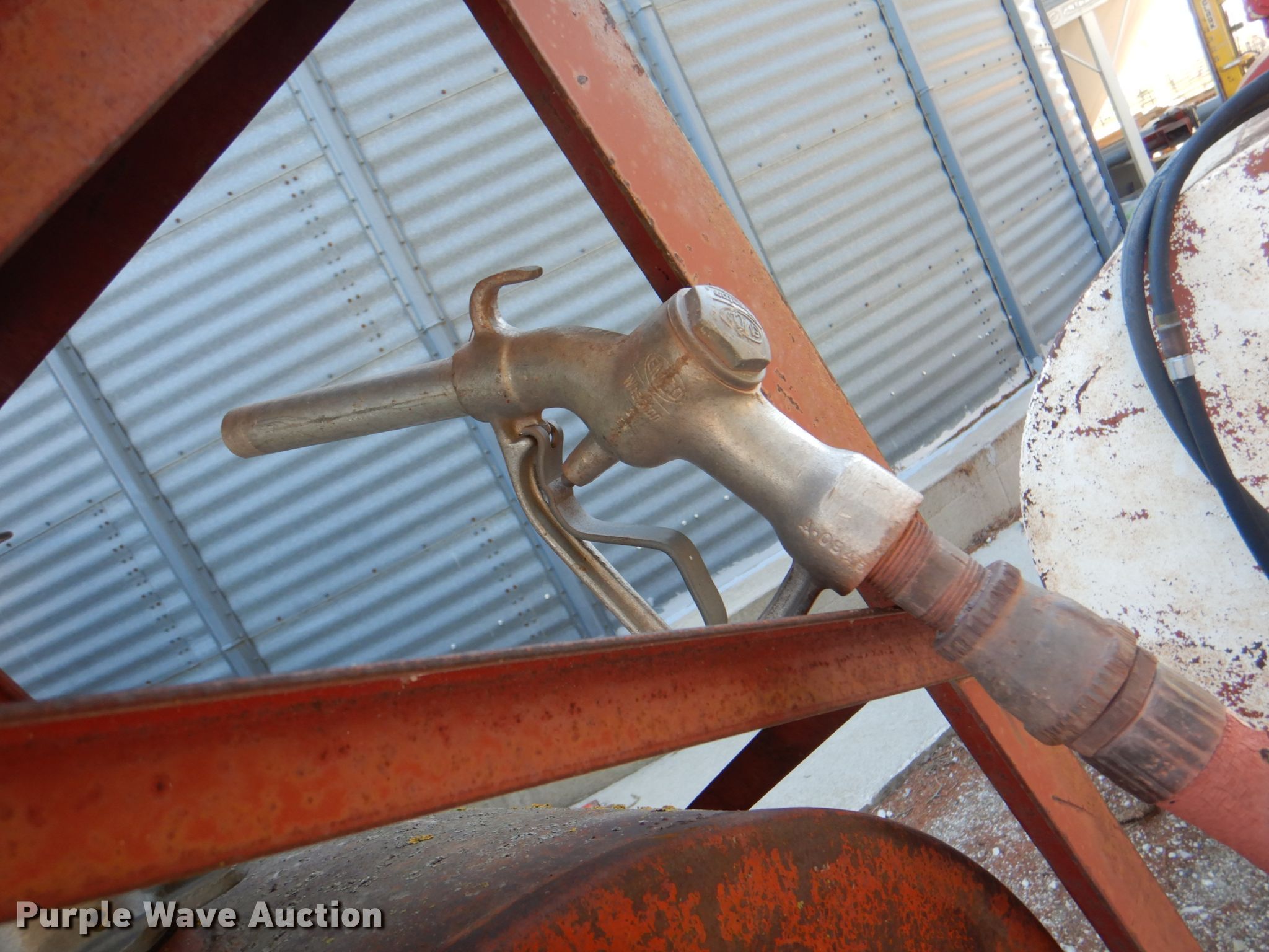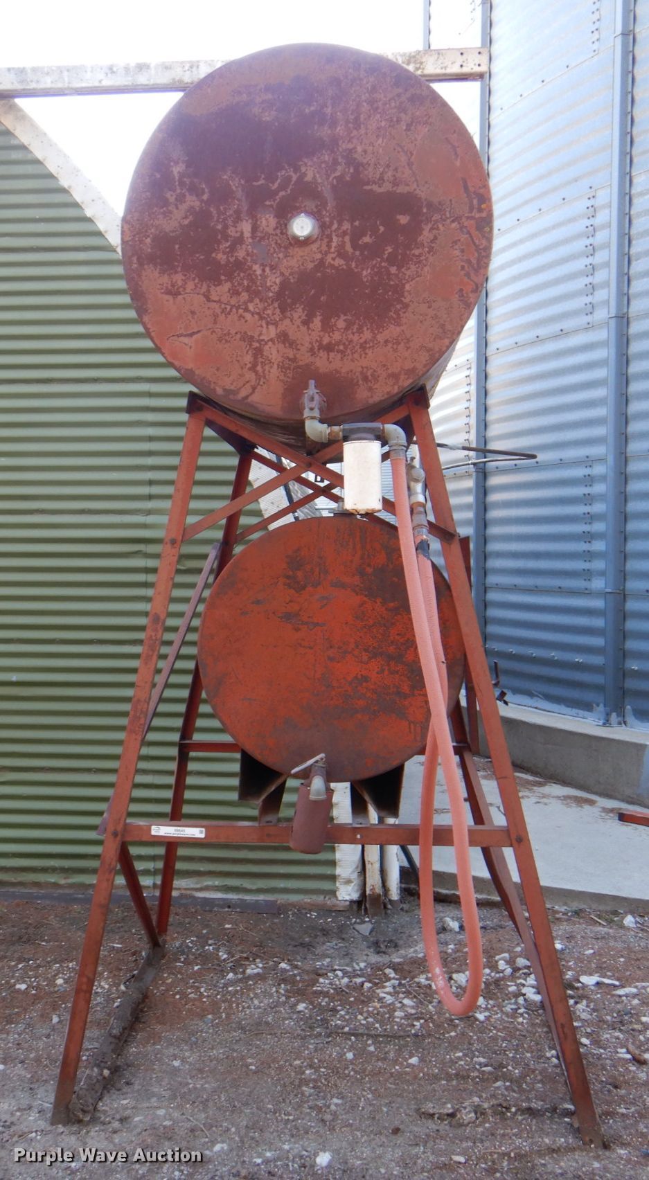 Purple Wave is selling a used Fuel and Lube in Iowa. This item is a (2) fuel tanks with the following: 300 gallon tank, Approx. 150 gallon tank, 61"W x 84.5"H stand
