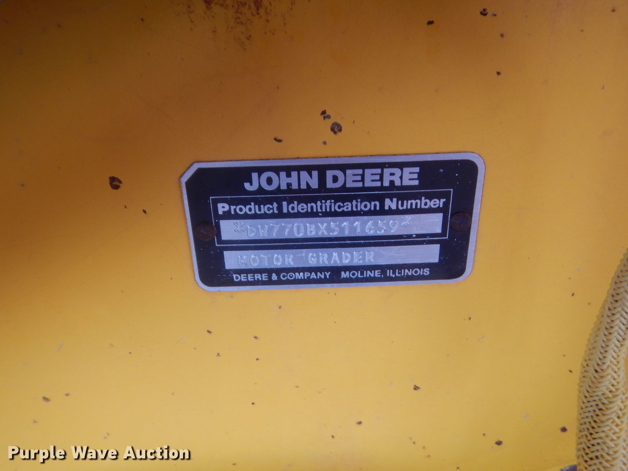 Purple Wave is selling a used Motor Grader in Oklahoma. This item is a 1986 John Deere 770B motor grader with the following: Serial: DW770BX511659