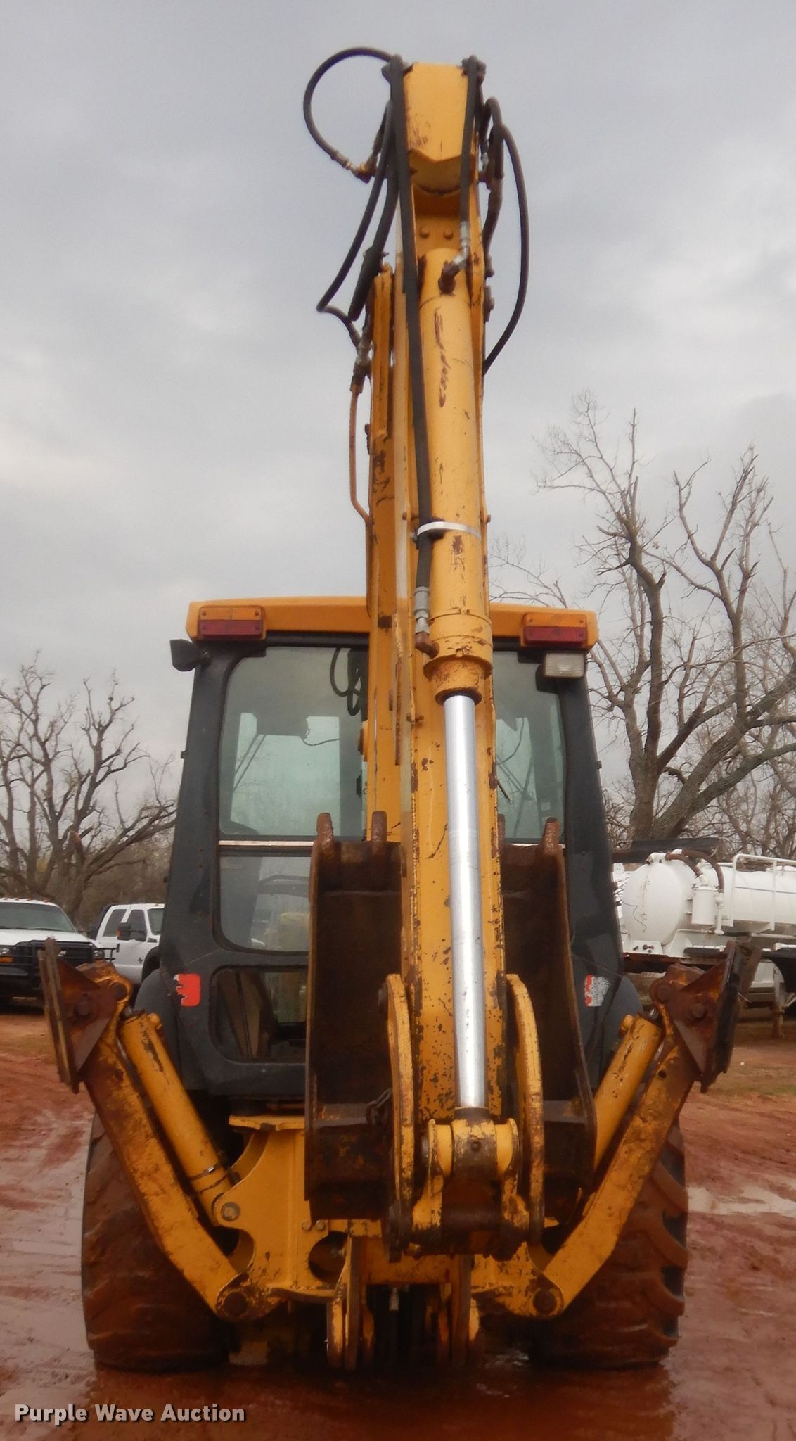 1998 John Deere 410E backhoe. 4,988 hours on meter, Serial: T0410EX843269. Engine Cylinders: 4, Fuel type: Diesel. Transmission Shuttle shift, 4F - 4R. Chassis Four wheel drive. Operators station EROPS AC, Heat, Backhoe controls: Wobble stick / two stick. Operational Loader Bucket Width: 93", Backhoe Extendable stick, Bucket Width: 24".. Tires Front: 12.5/80-18, Rear: 19.5L-24. Canadian Valley Trucking Retirement Sale. Crescent, OK 73028