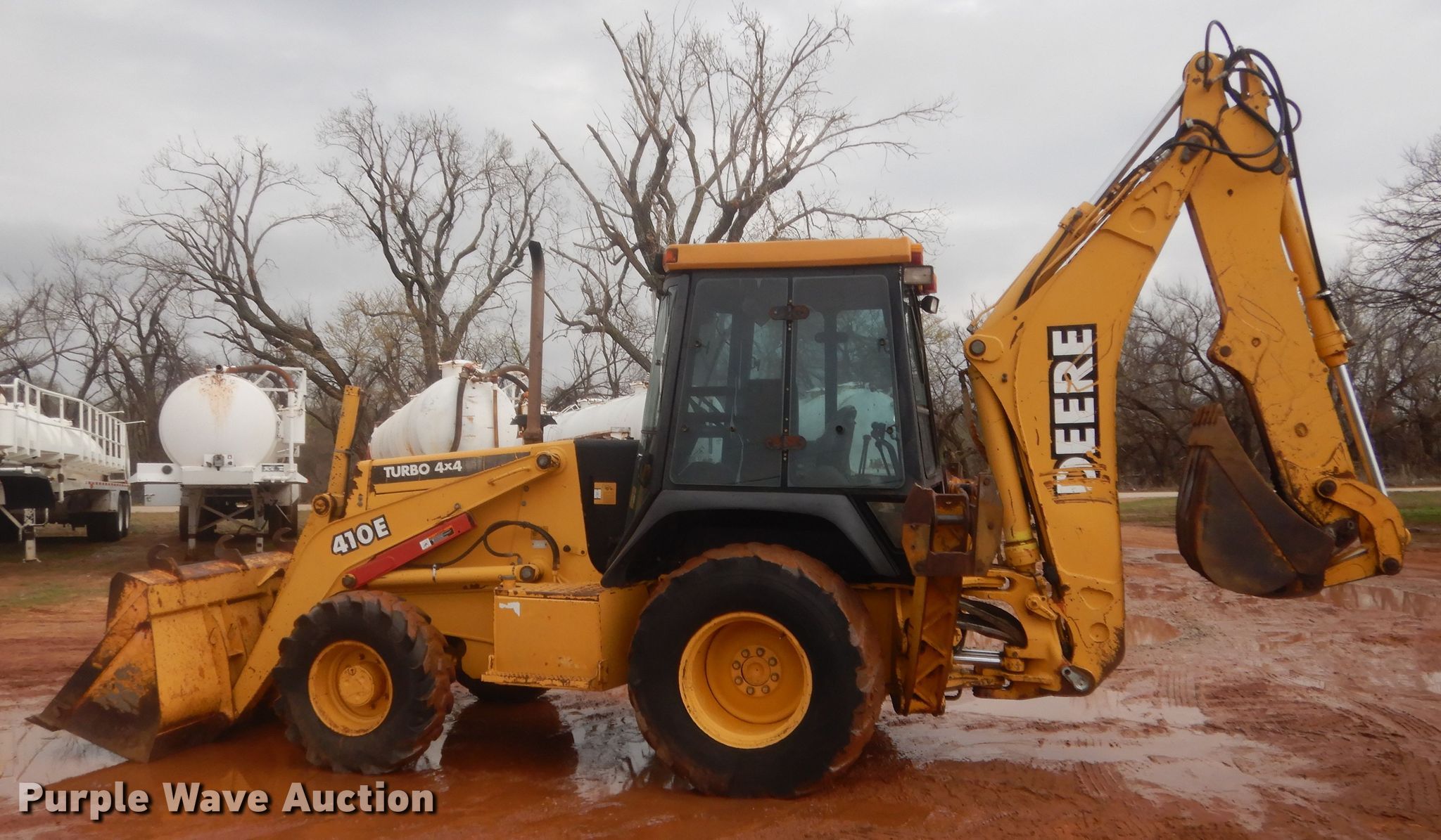 Purple Wave is selling a used Tractor Loader Backhoe in Oklahoma. This item is a 1998 John Deere 410E backhoe with the following: 4,988 hours on meter, Serial: T0410EX843269