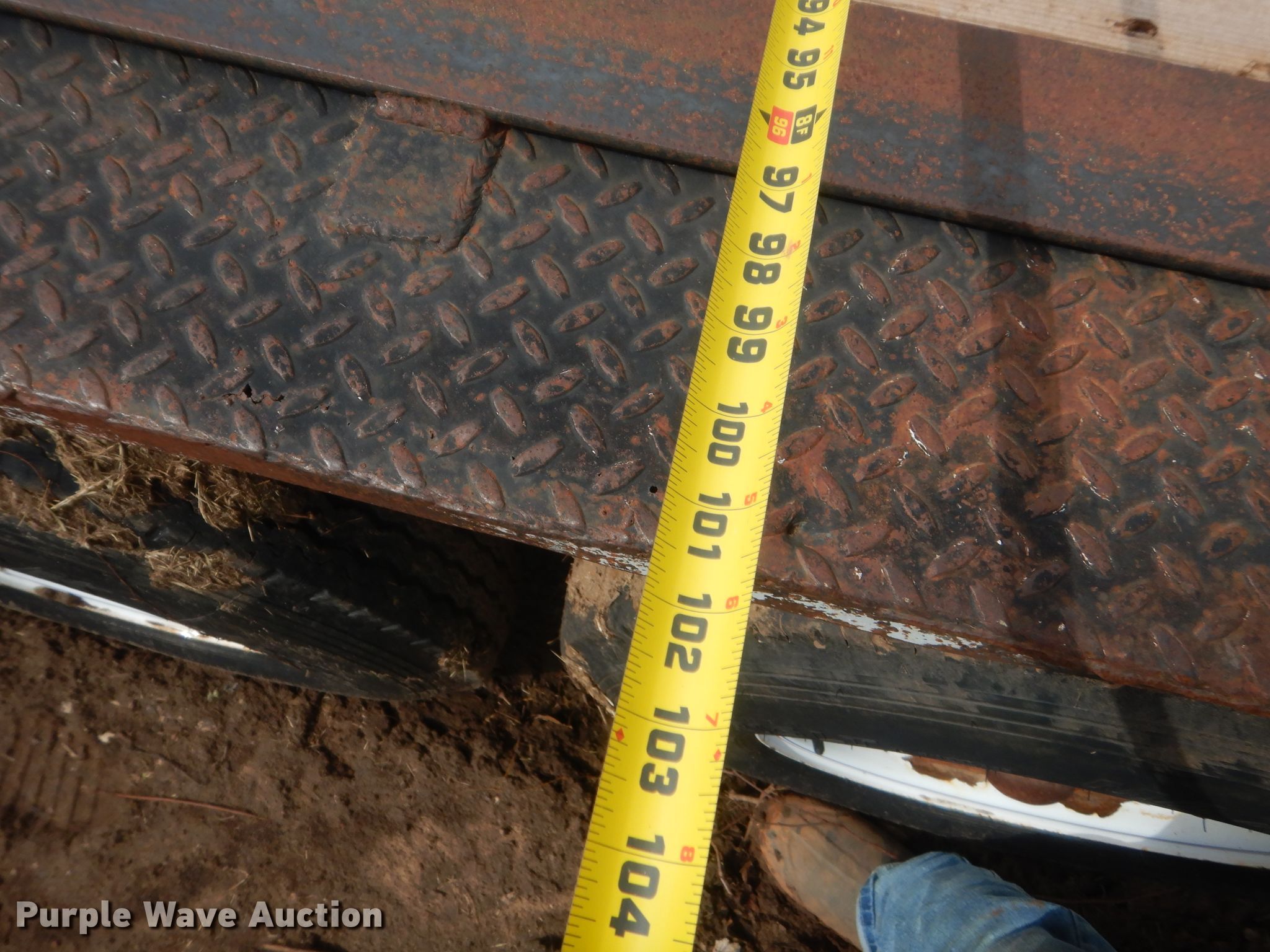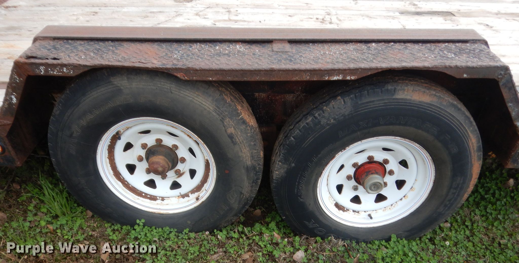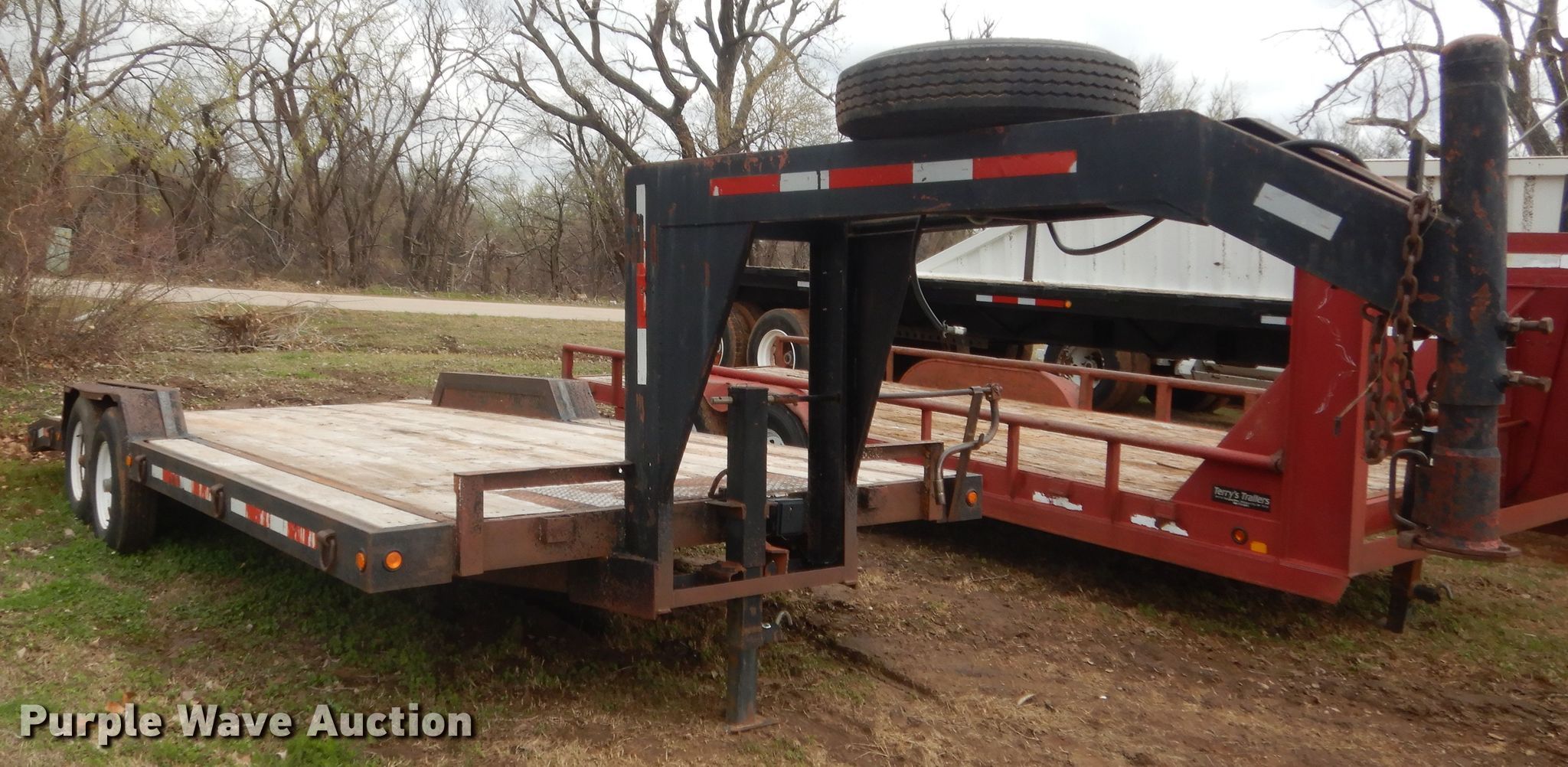 Purple Wave is selling a used Equip. Trailer in Oklahoma. This item is a Shop built equipment trailer with the following: 28'L x 102"W overall, 20'L x 80"W deck, Hitch: Gooseneck, Single leg landing gear, Spring suspension, Electric brakes, Tandem axle, 7.50R16LT tires